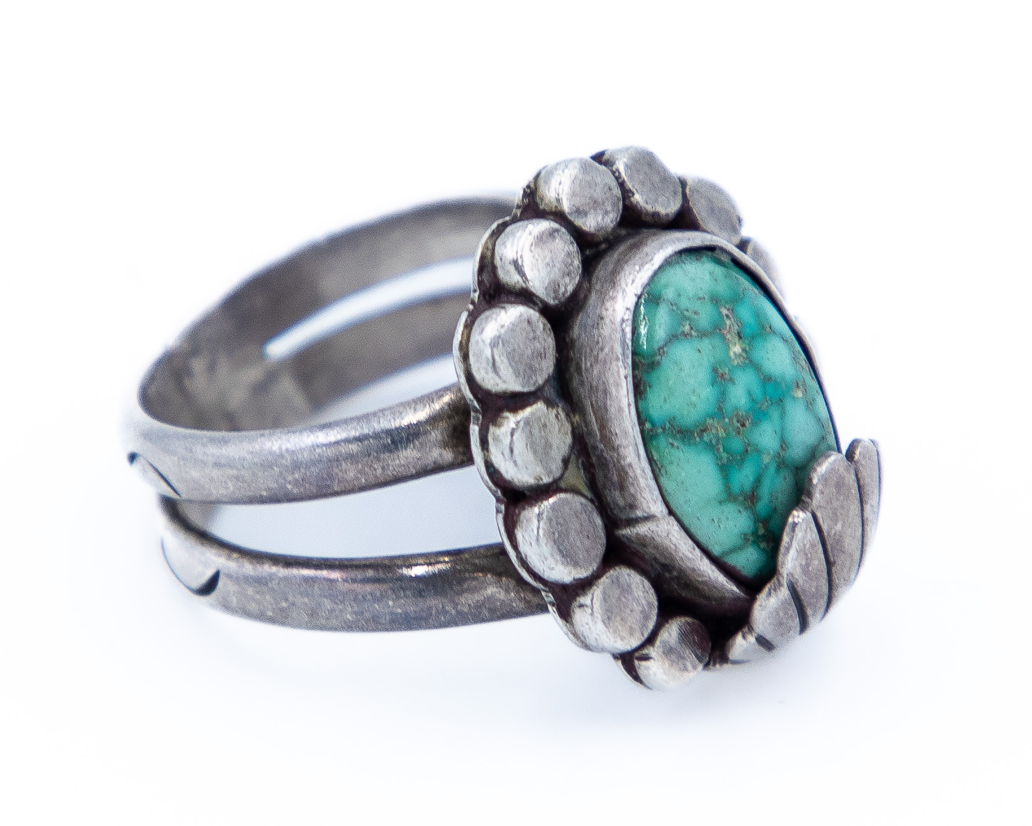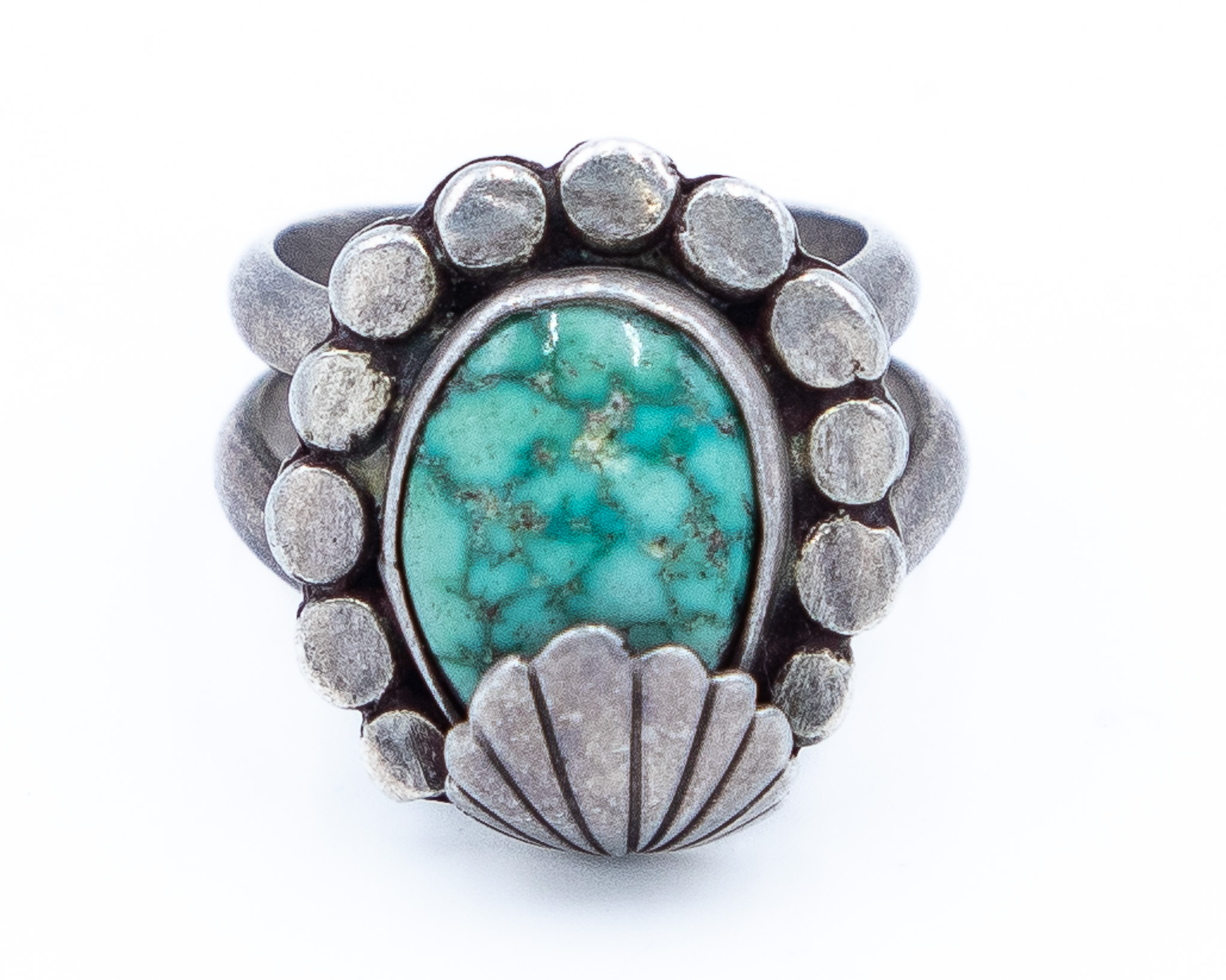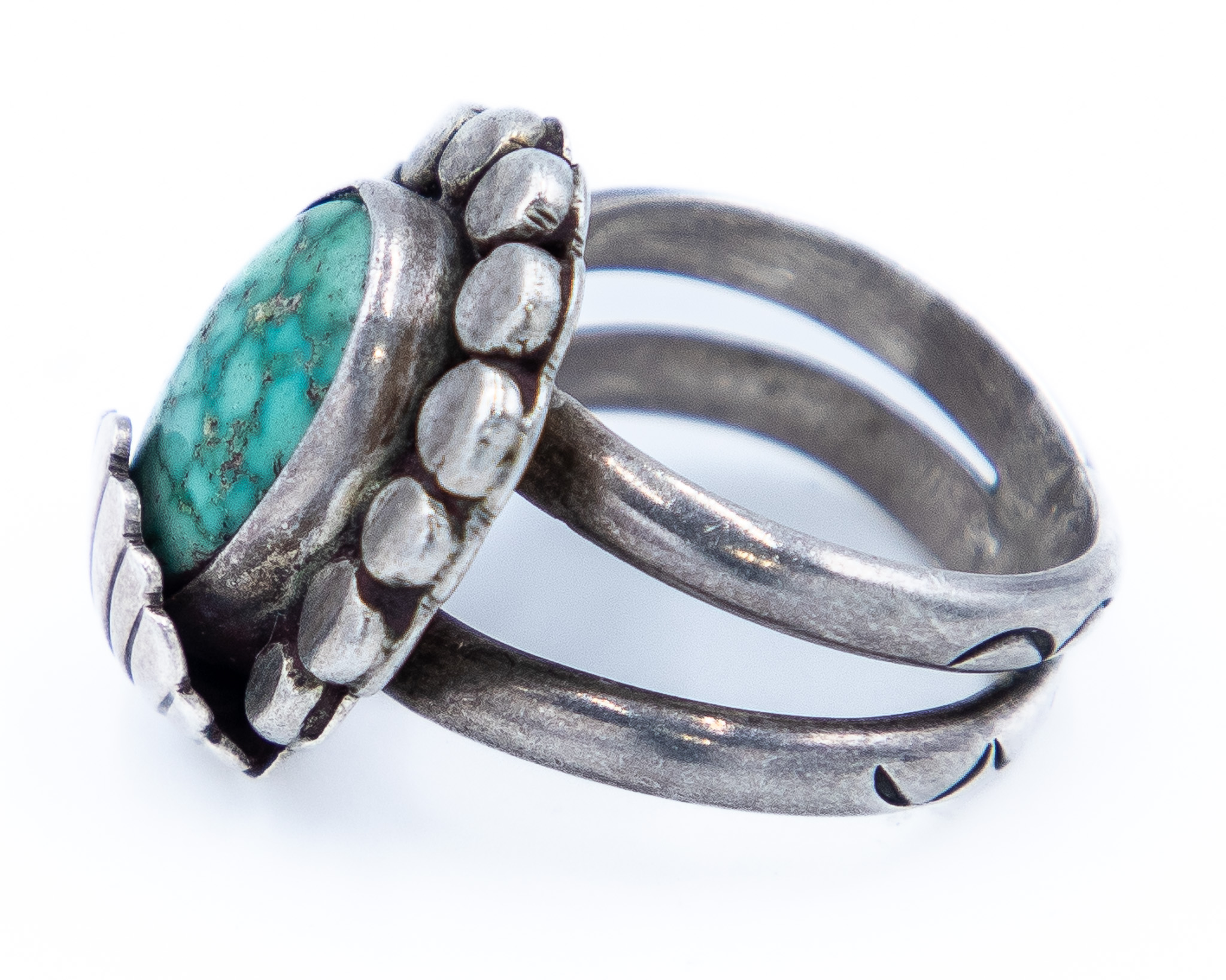 Signed AT Vintage Navajo Turquoise Sterling Ring Sz. 8, 12g