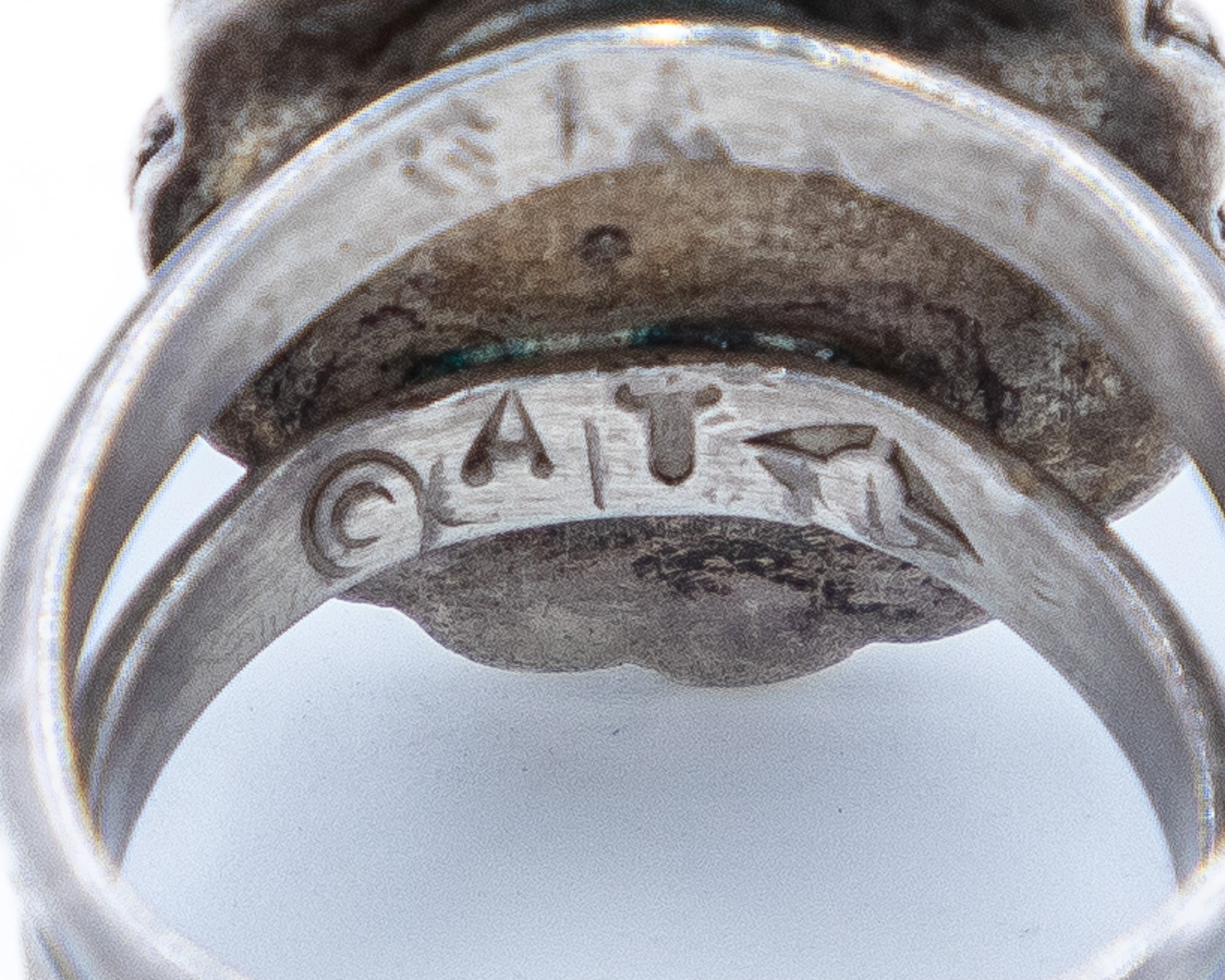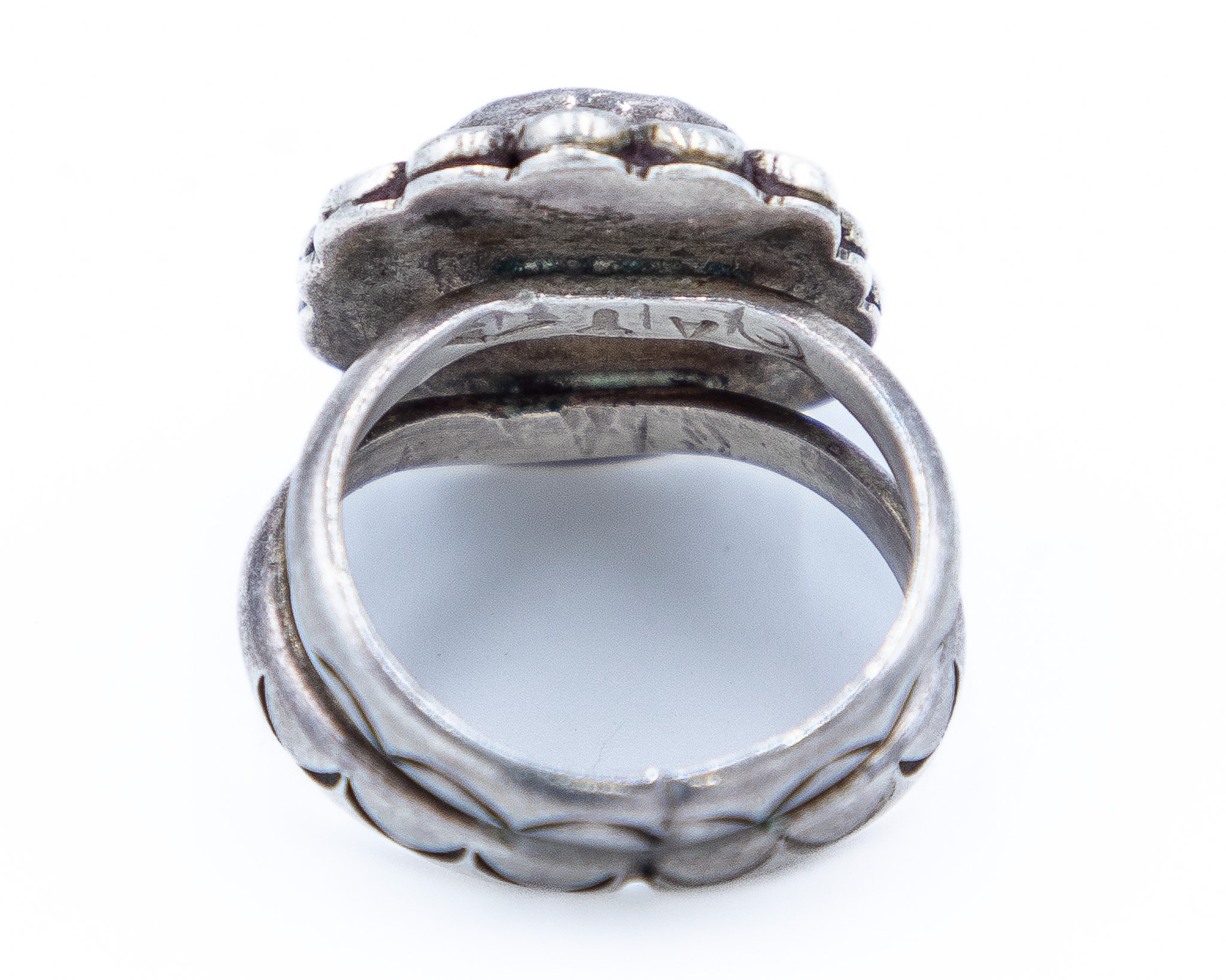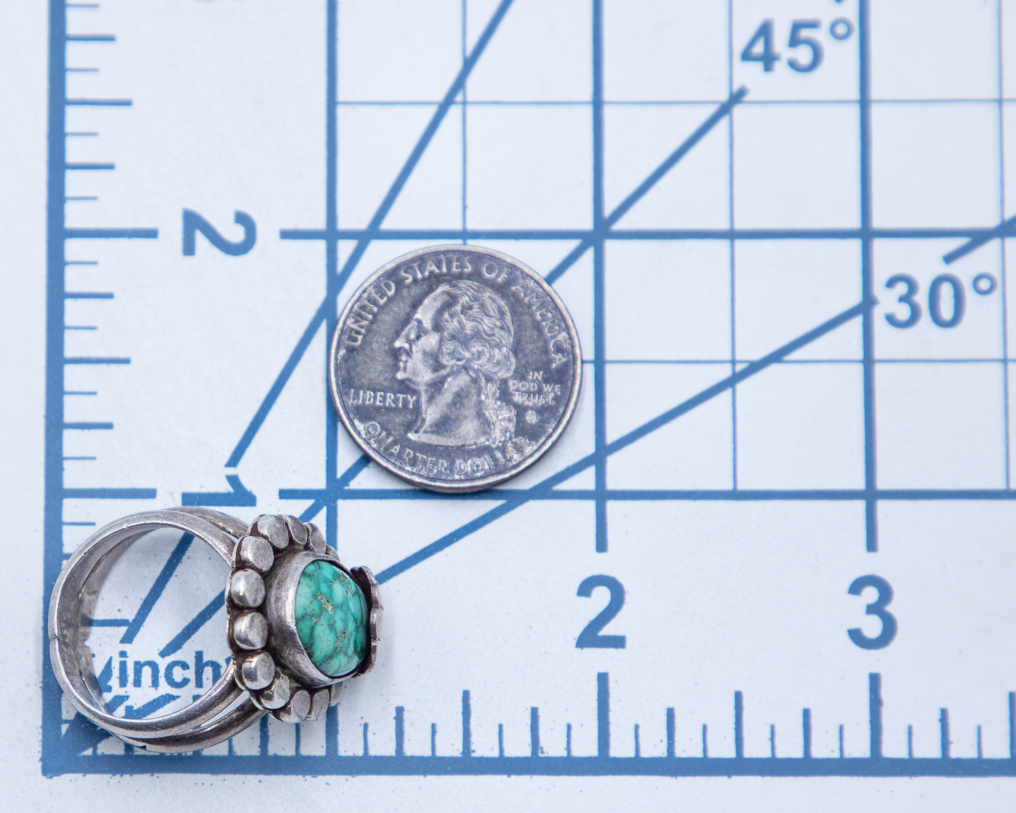 Signed AT Vintage Navajo Turquoise Sterling Ring Sz. 8, 12g