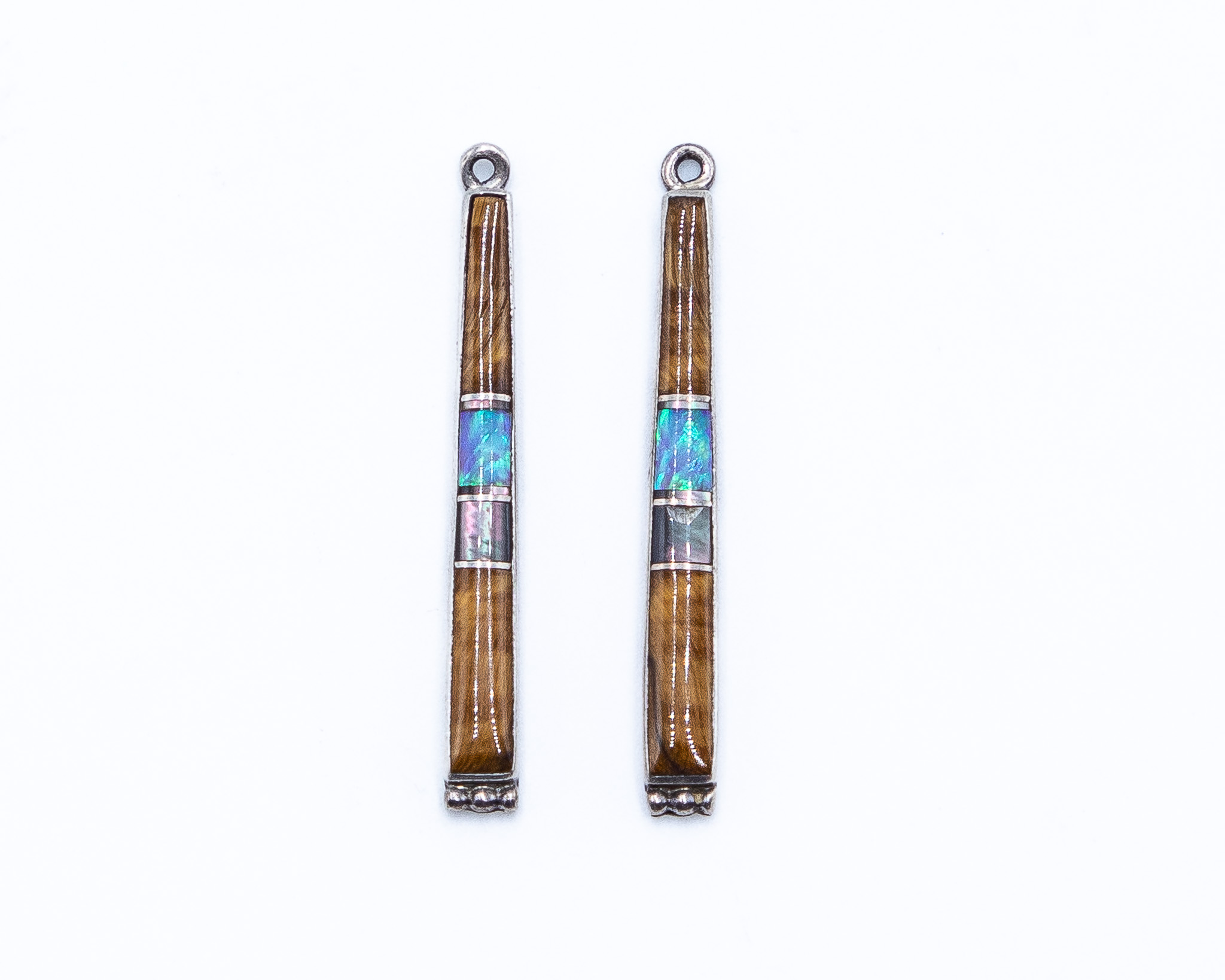 Sheryl Martinez Navajo Sterling Tigers Eye Abalone Synthetic Opal Earrings 4.5g-No Hooks