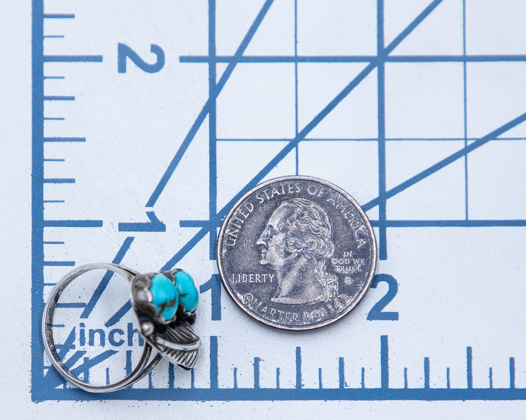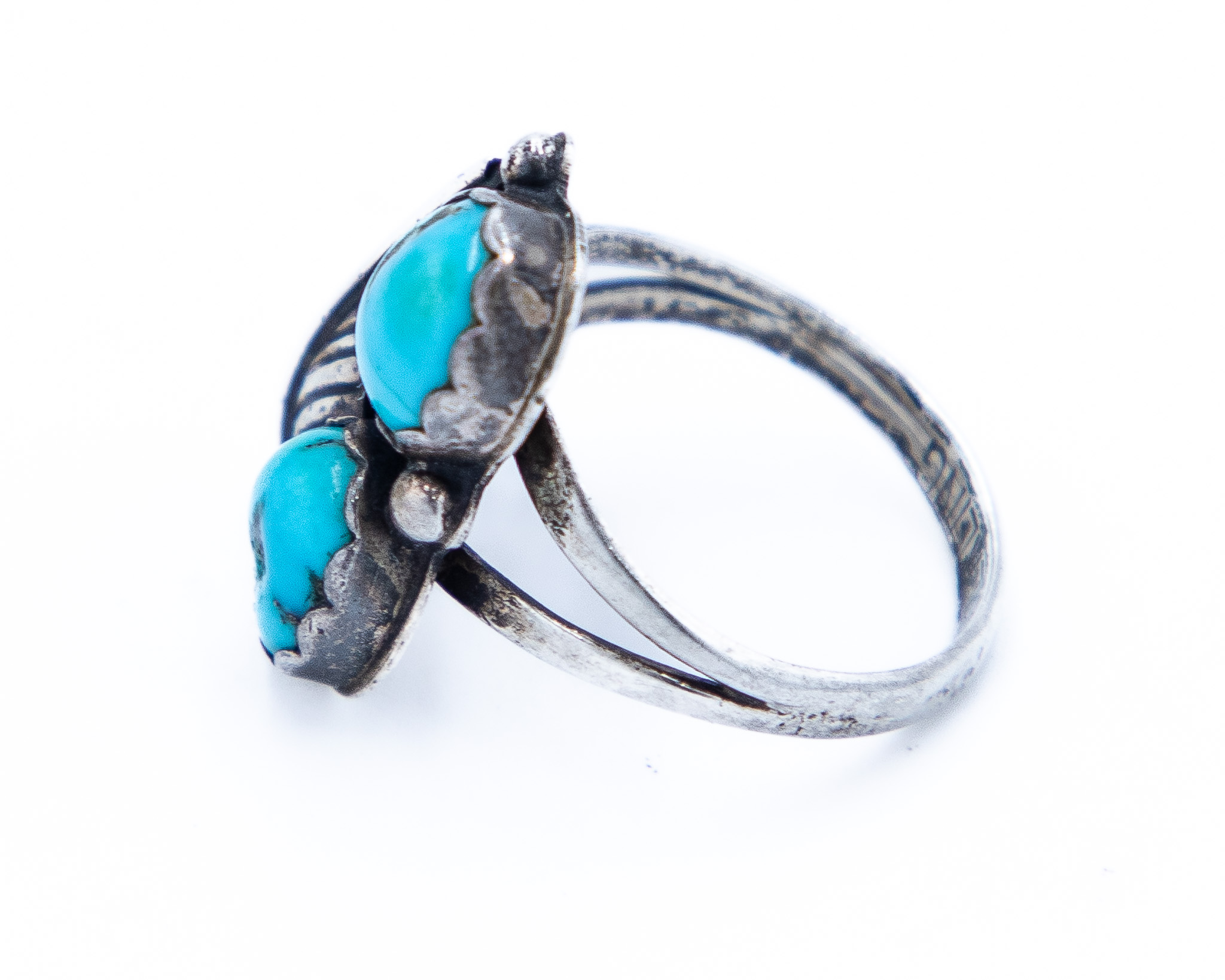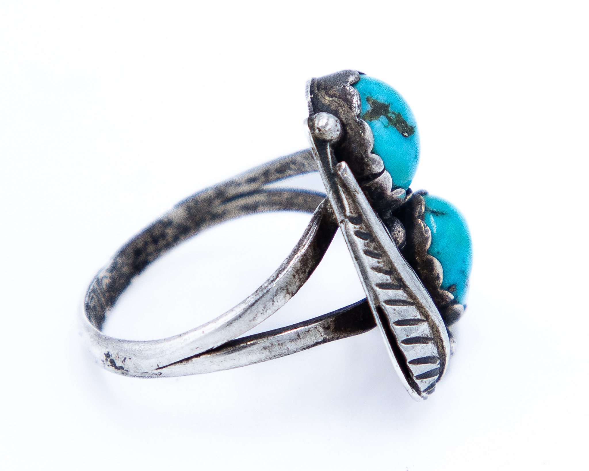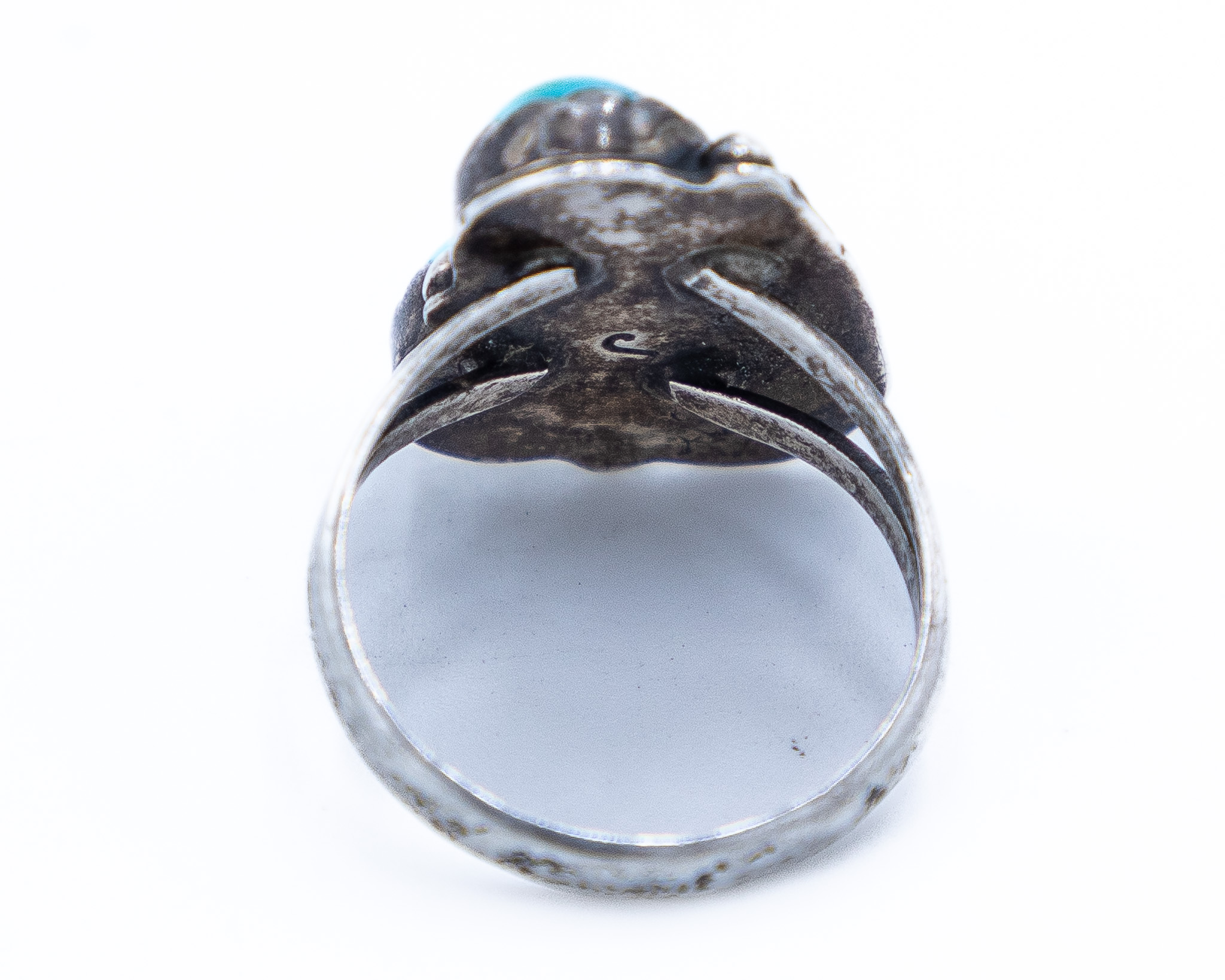 Signed J Vintage Navajo Turquoise Sterling Ring Sz. 7, 4g