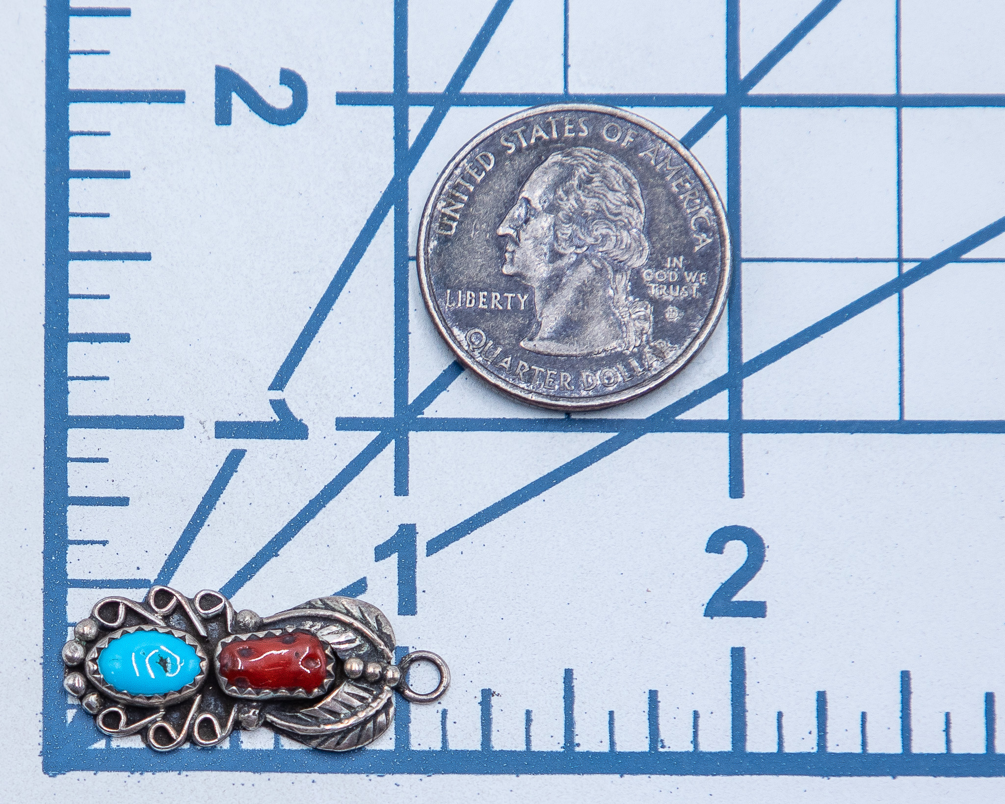 Signed F Vintage Navajo Sterling Coral Turquoise Hook Earrings 6g-No Hooks
