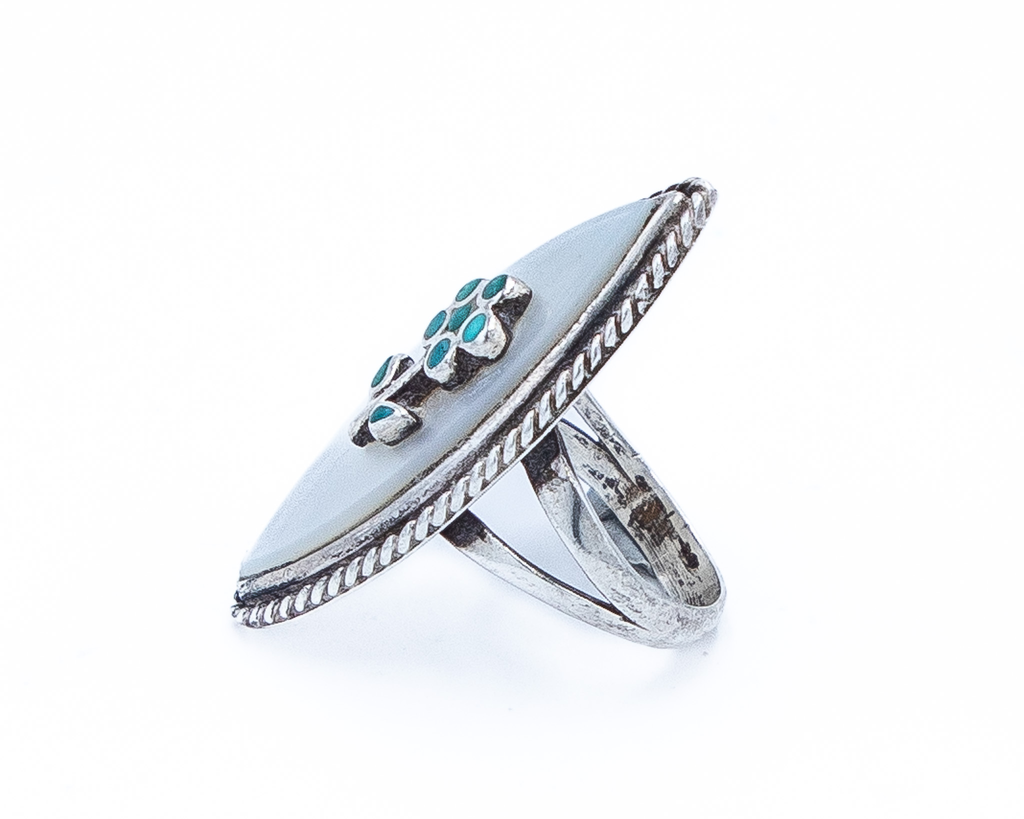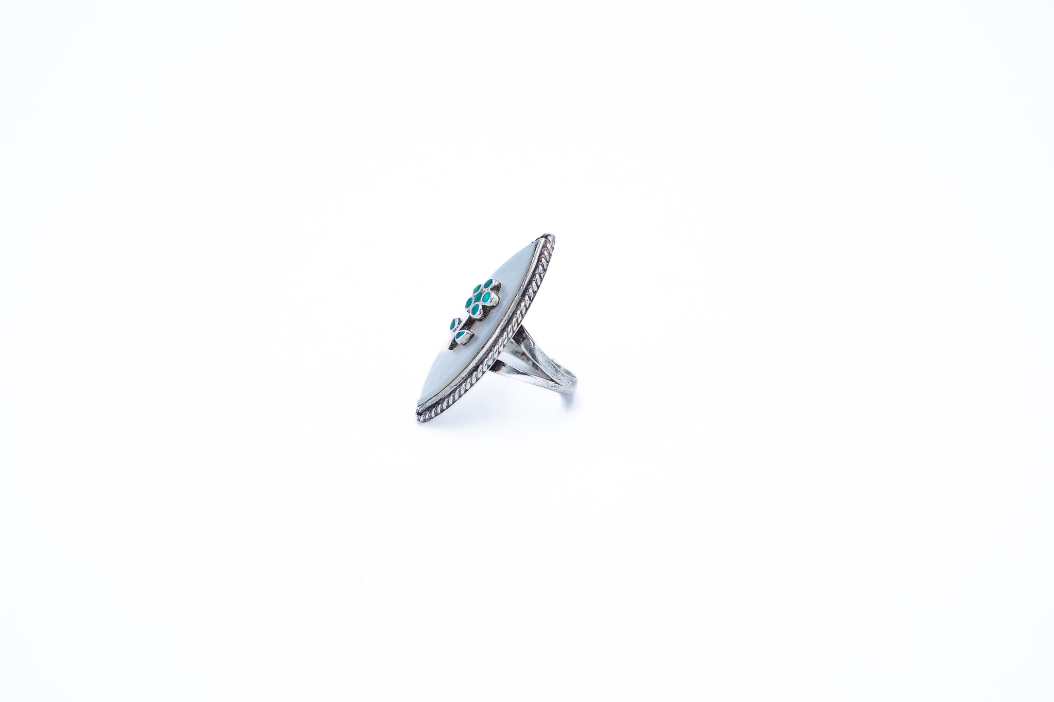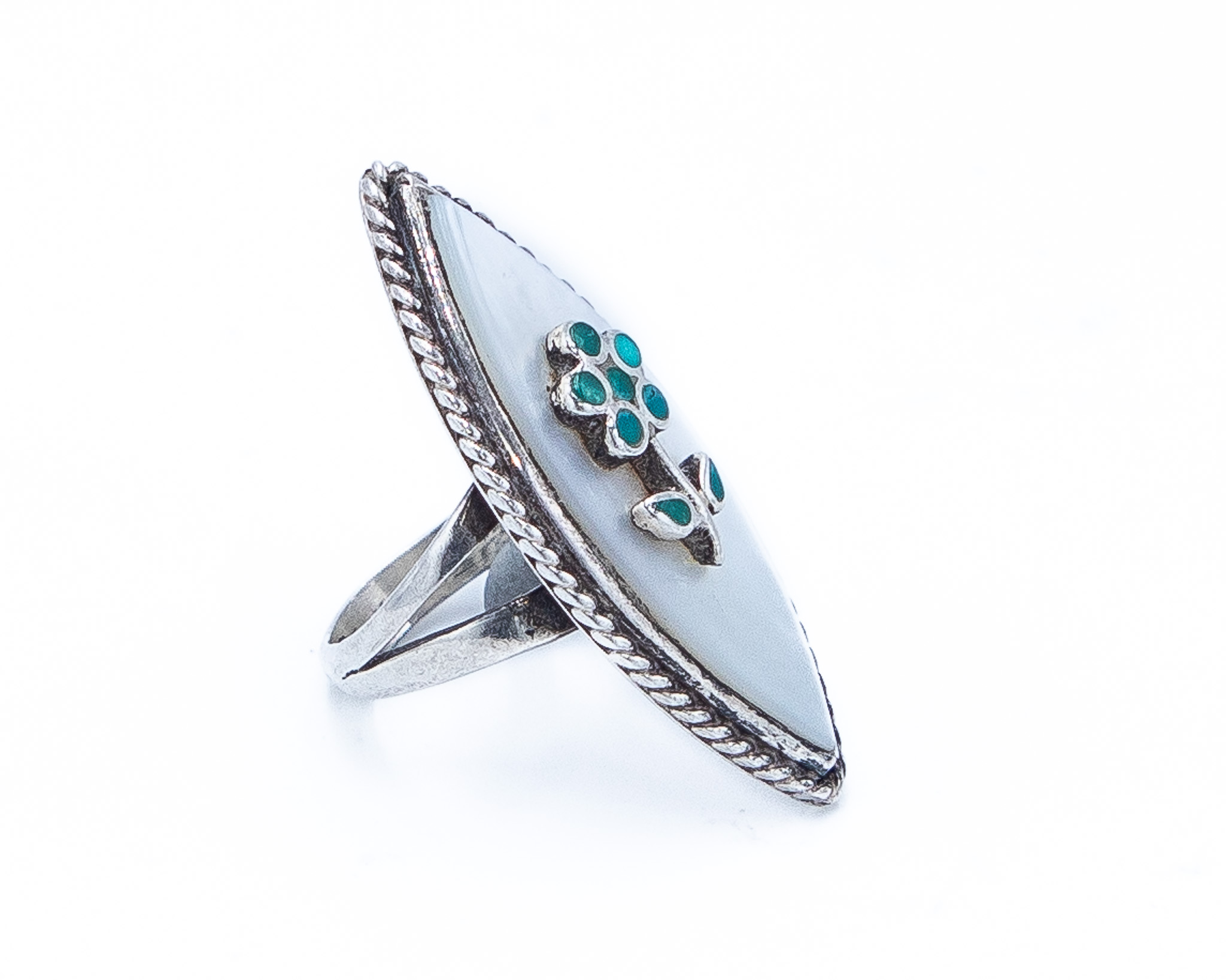 Charlotte Bradley Zuni Sterling Mother Of Pearl Turquoise Flower Ring Sz. 5.75, 8g