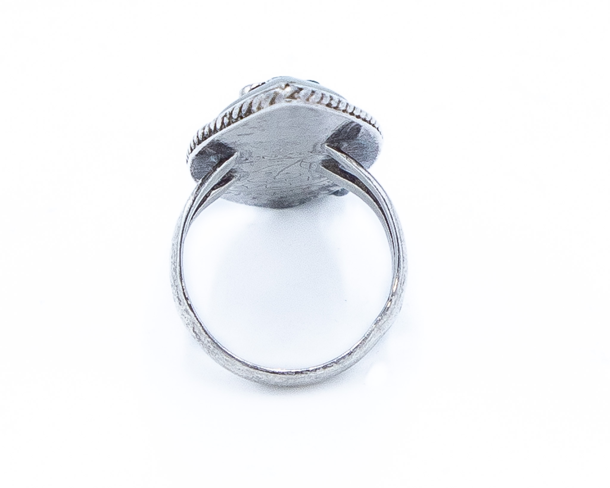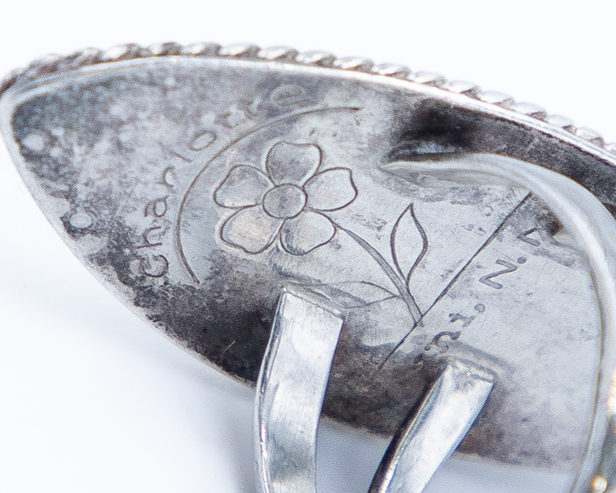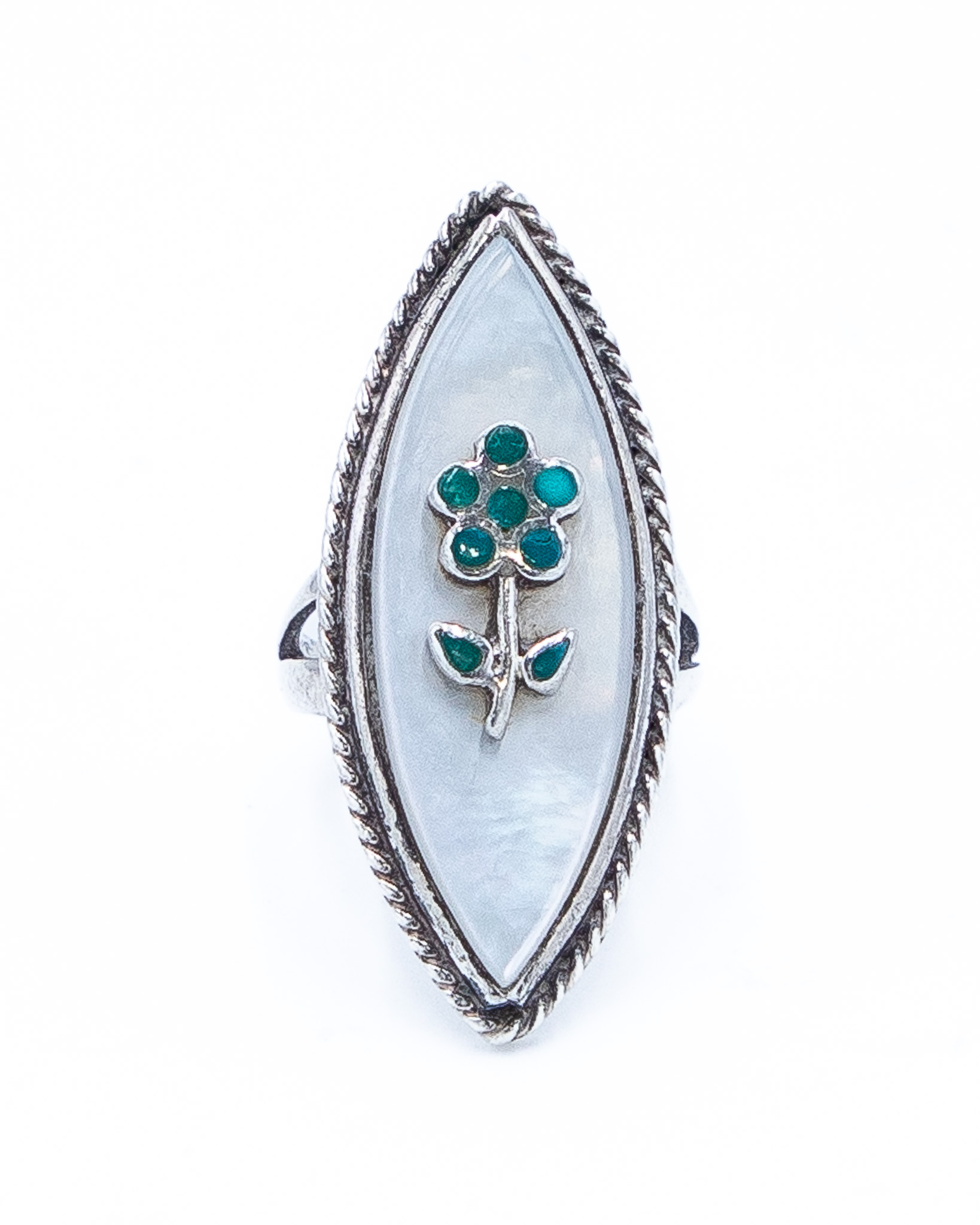 Charlotte Bradley Zuni Sterling Mother Of Pearl Turquoise Flower Ring Sz. 5.75, 8g