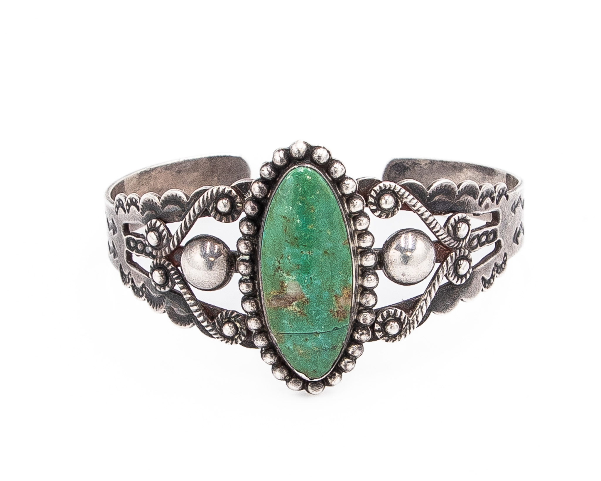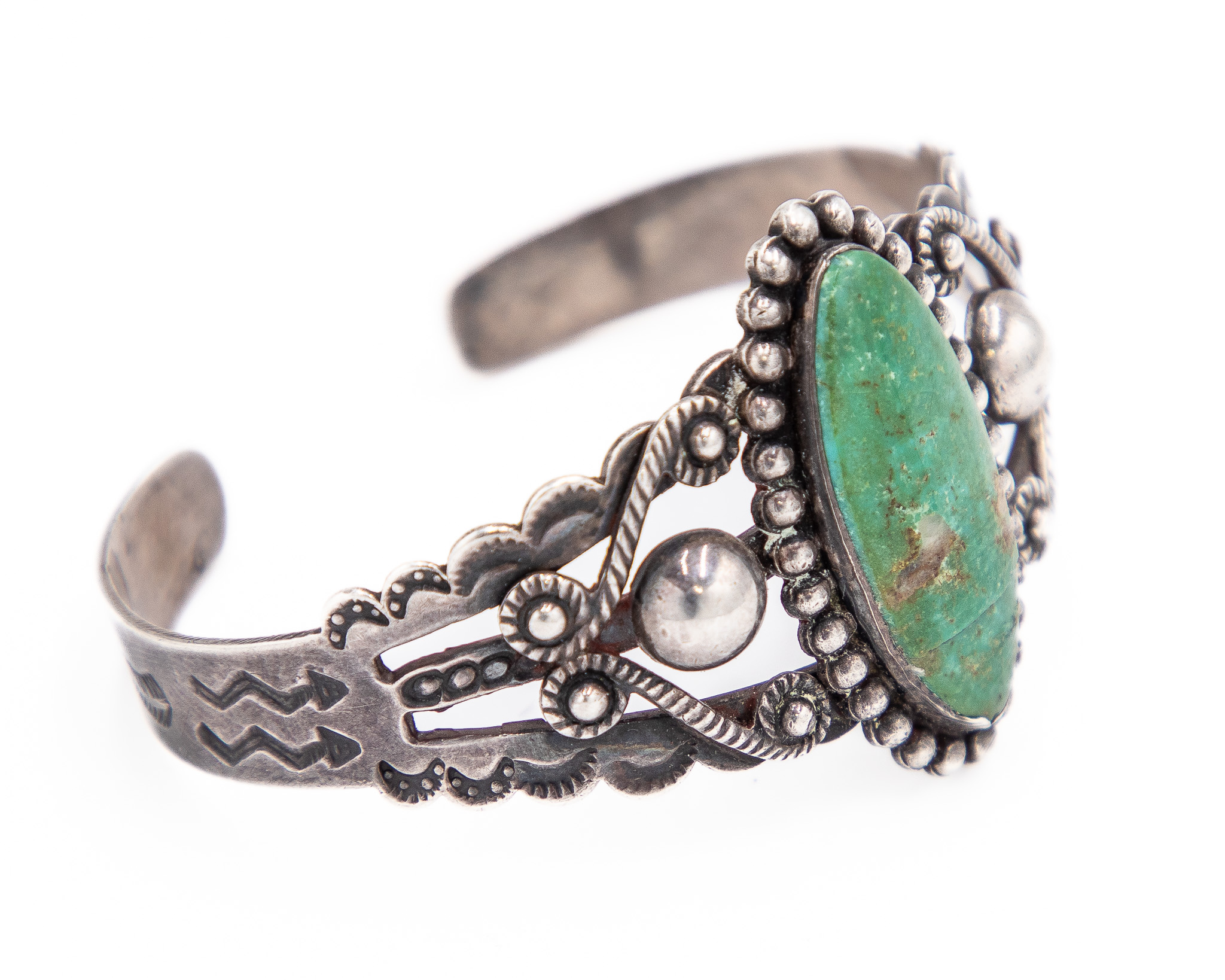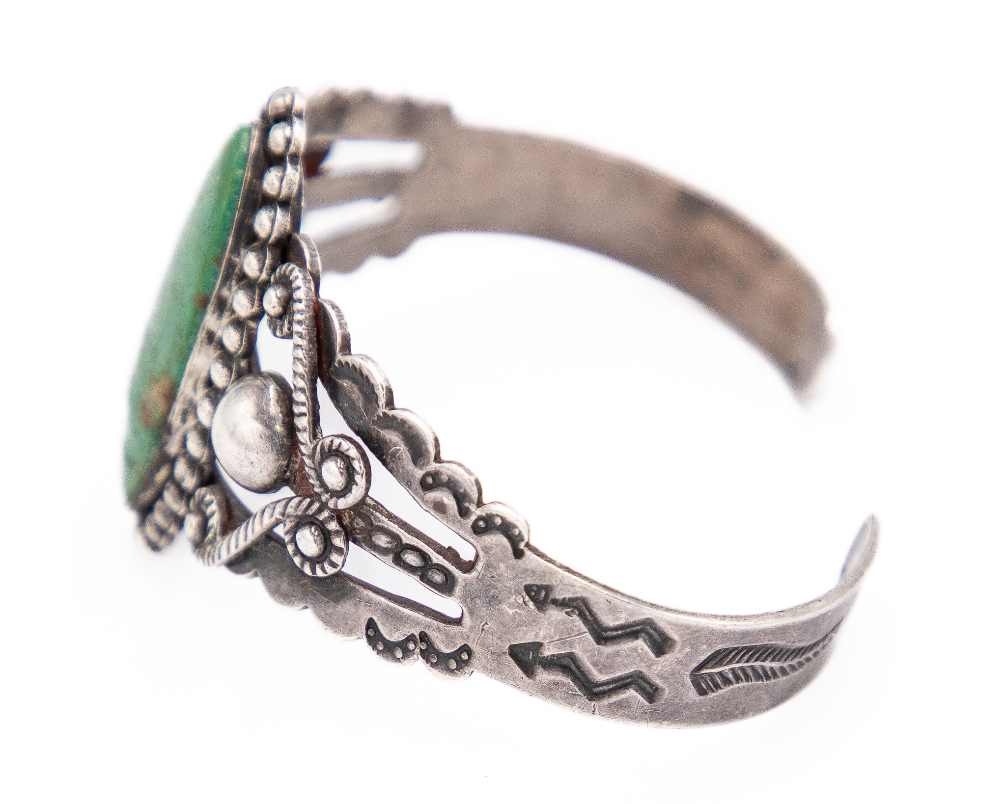 Fred Harvey Era Sterling Green Turquoise Cuff Bracelet 27g