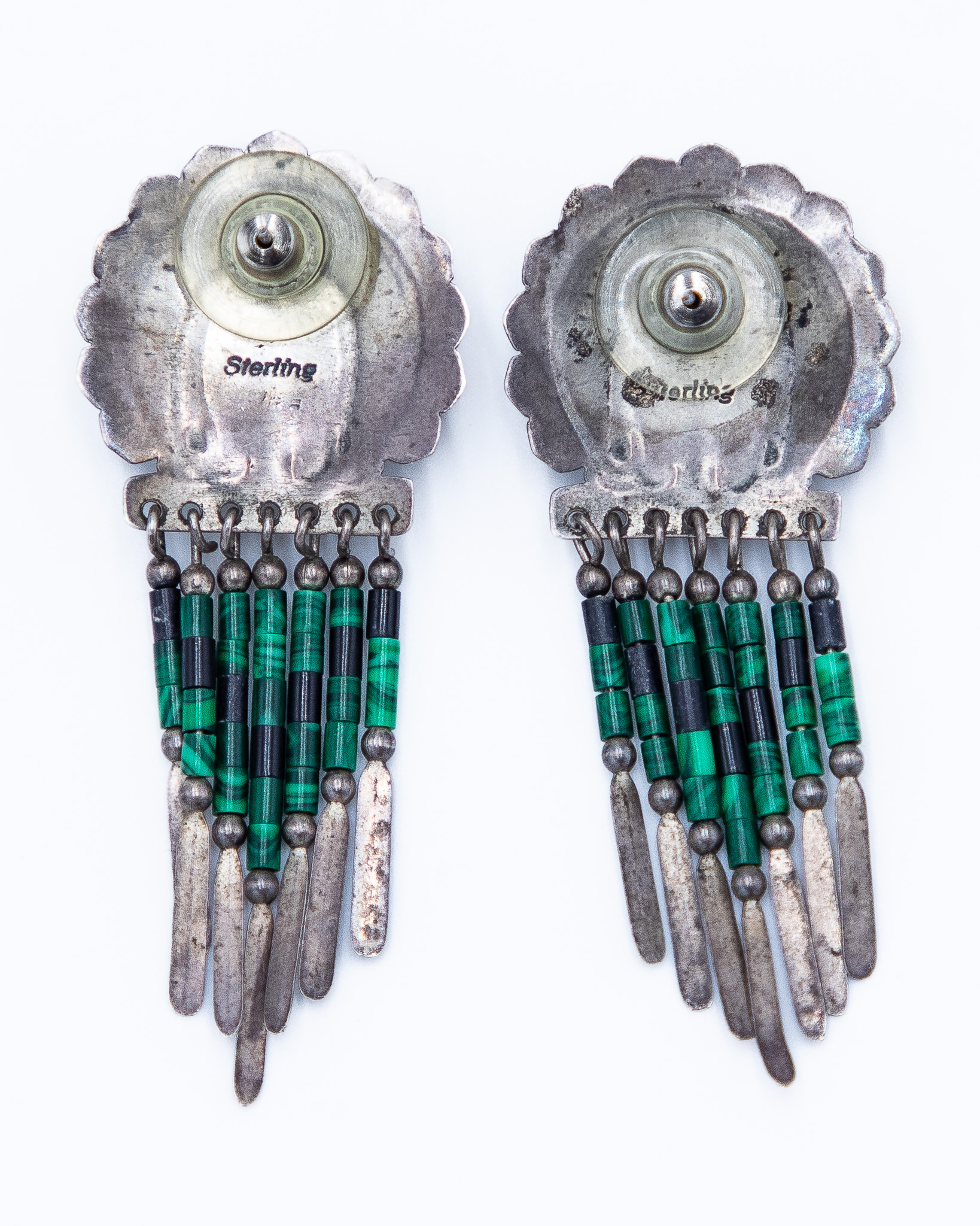 Vintage Zuni Malachite Onyx Sterling Inlay Dangle Earrings 9g