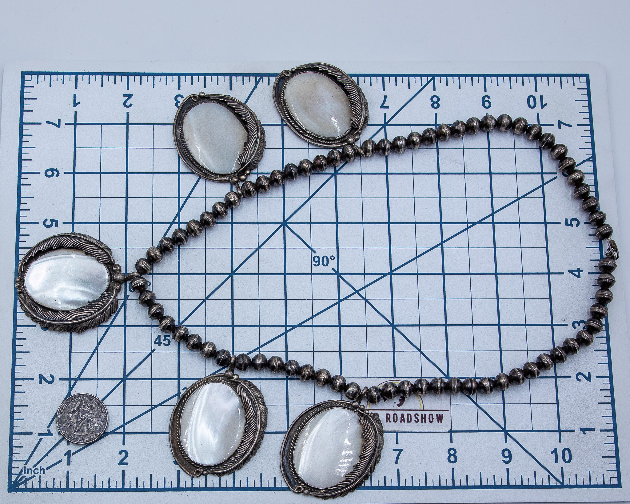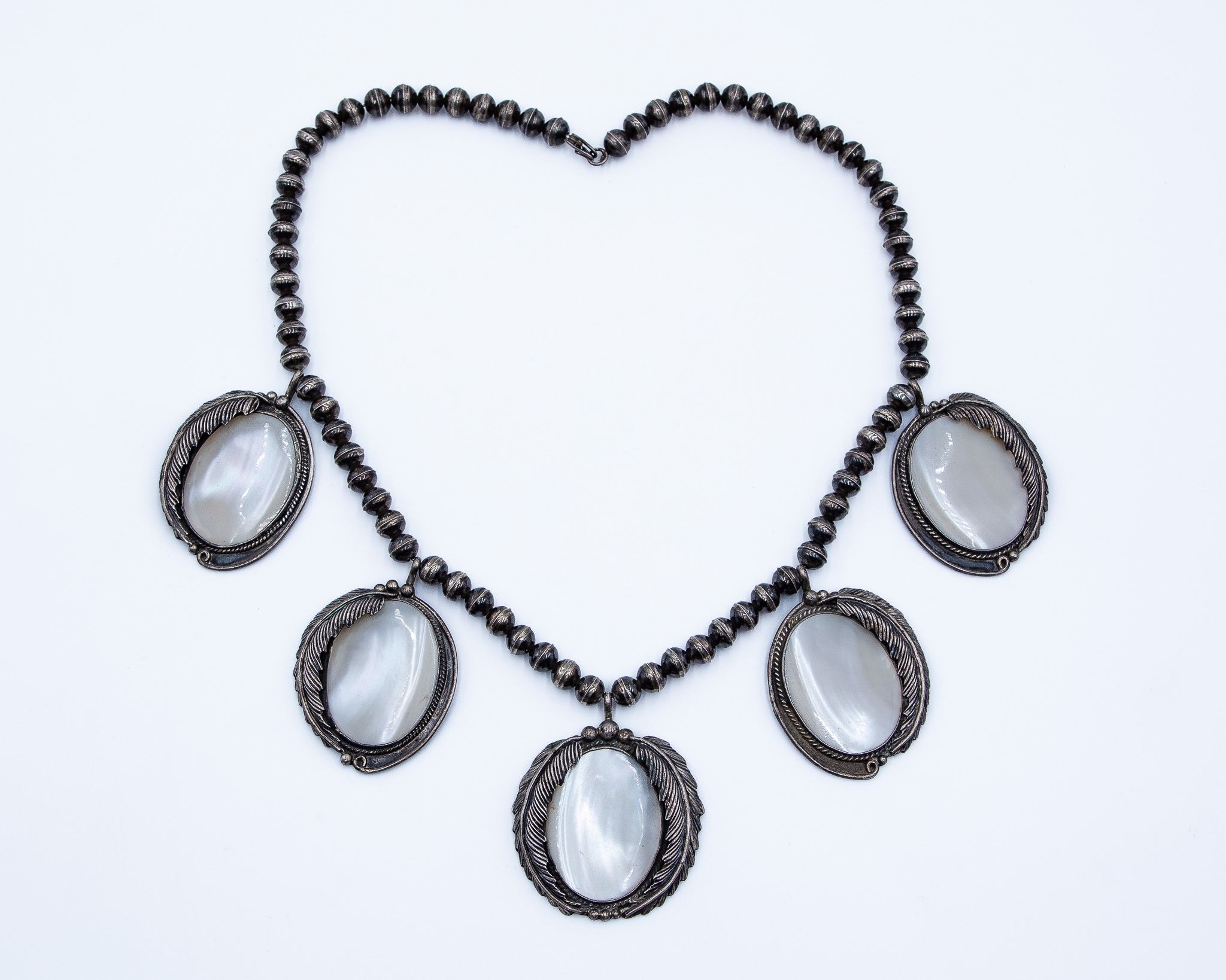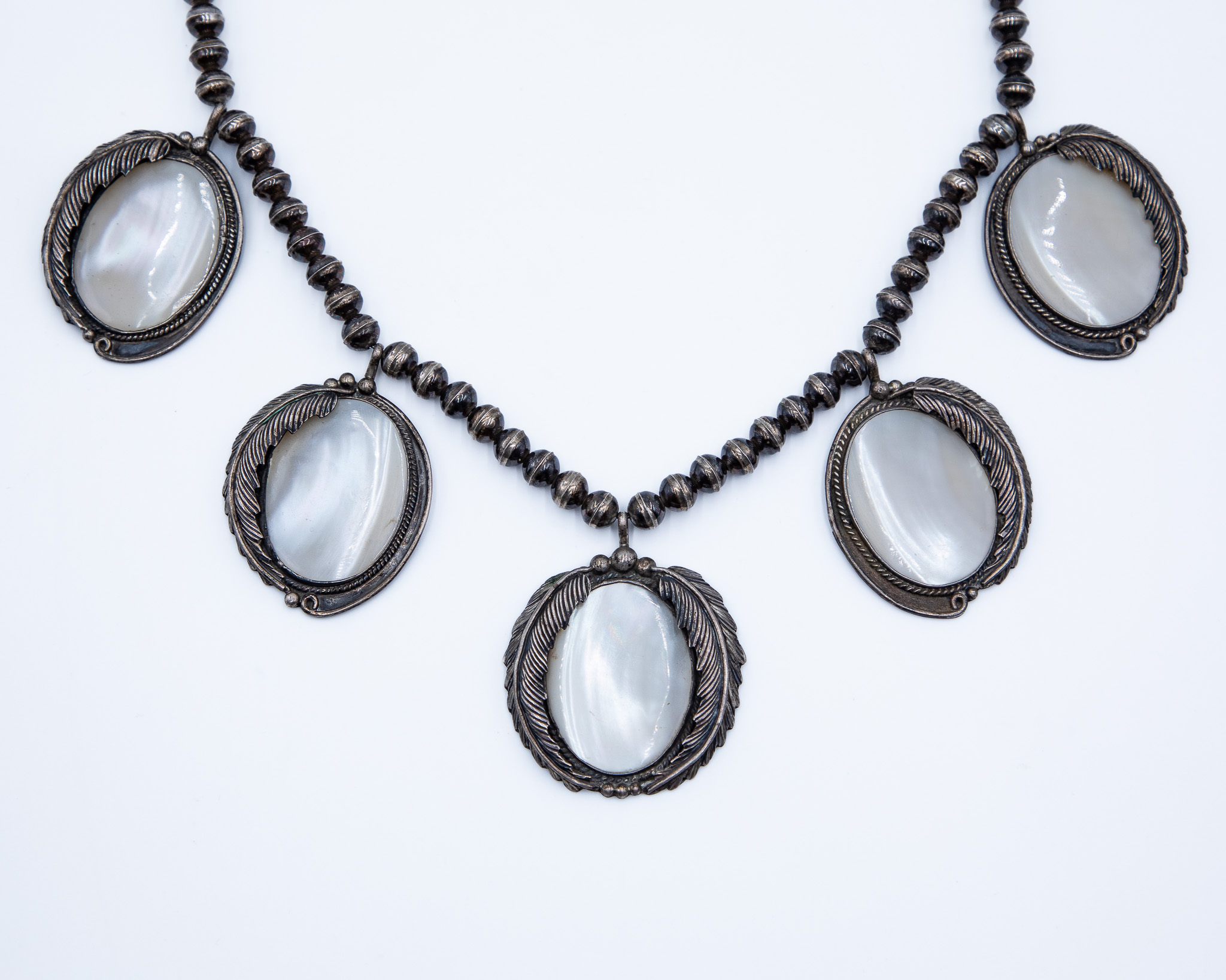 Signed JPA Navajo Vintage Bench Bead Mother Of Pearl Necklace 22 Inches, 130g