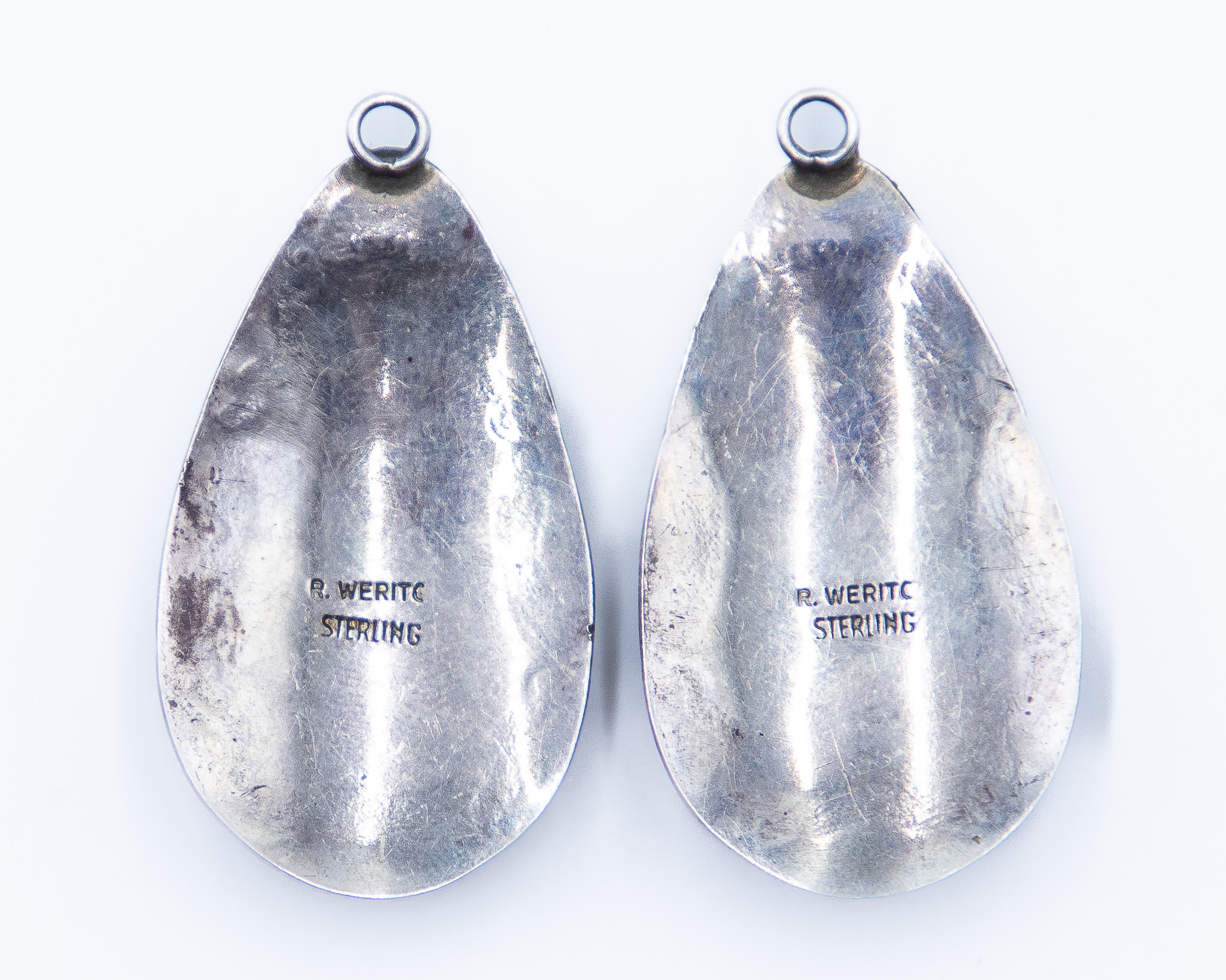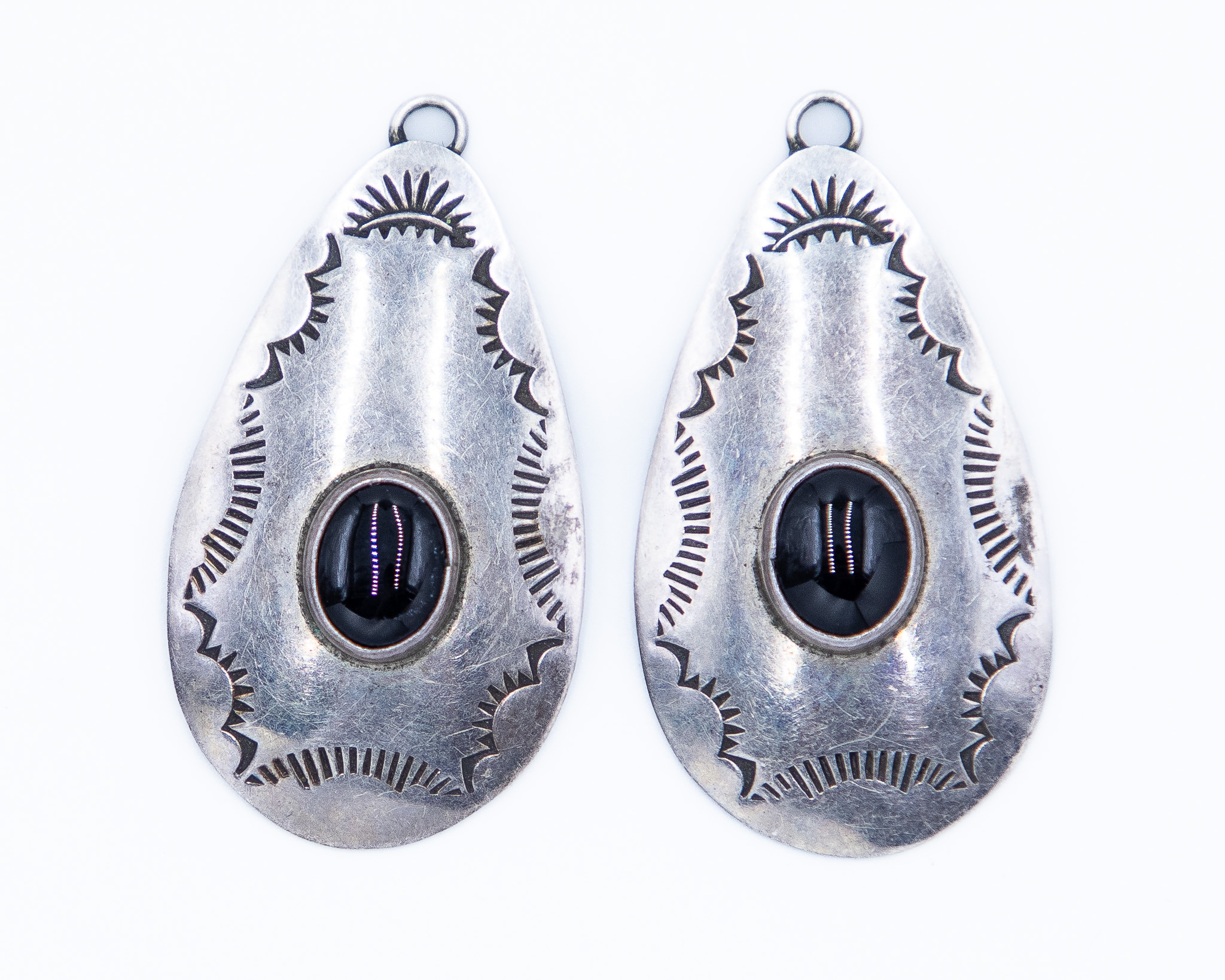 R. Weritc Navajo Vintage Sterling Onyx Earrings 9g-No hooks