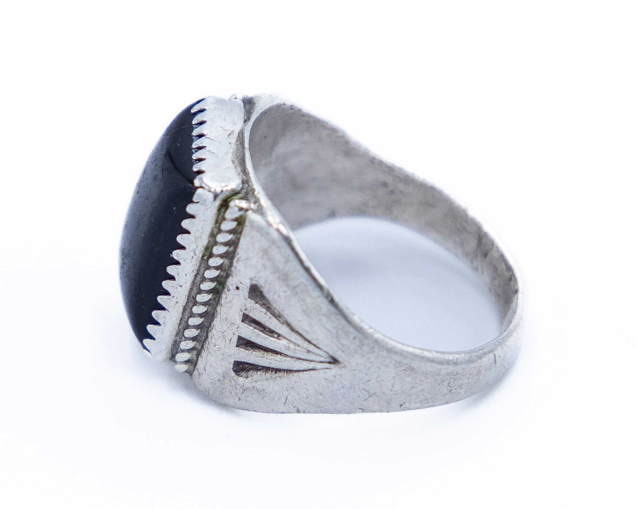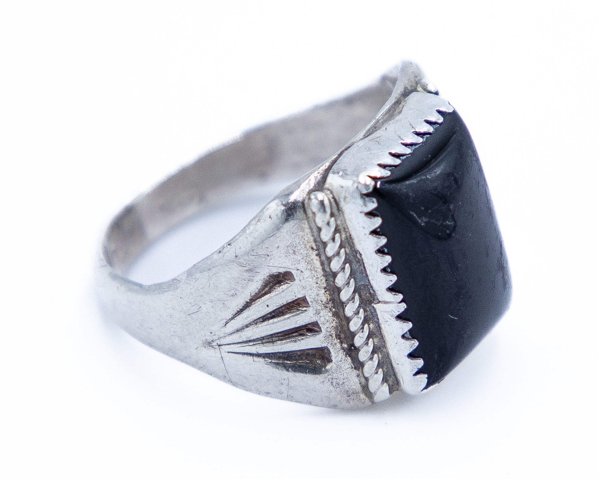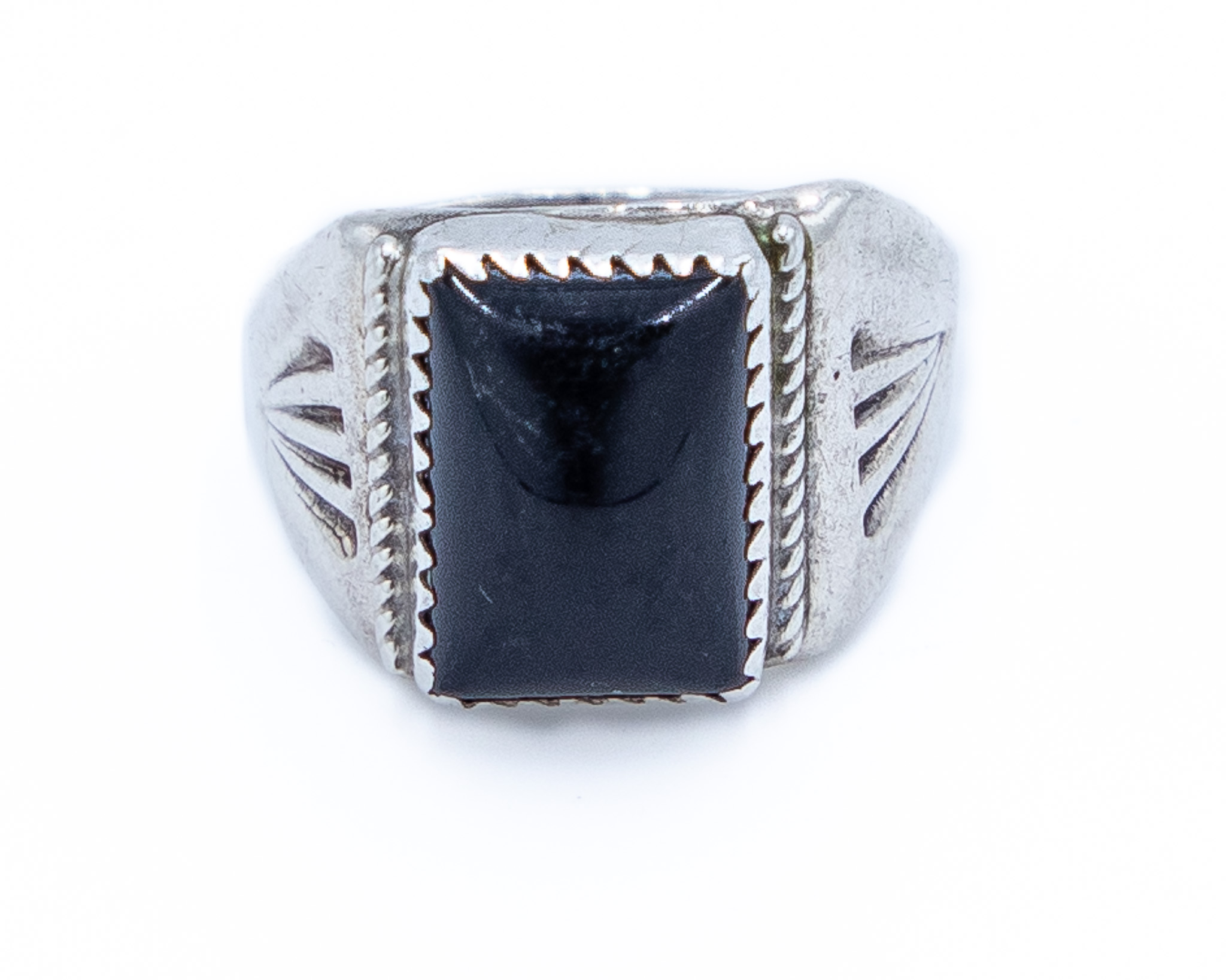Signed A Vintage Navajo Sterling Onyx Ring Sz. 9, 8g