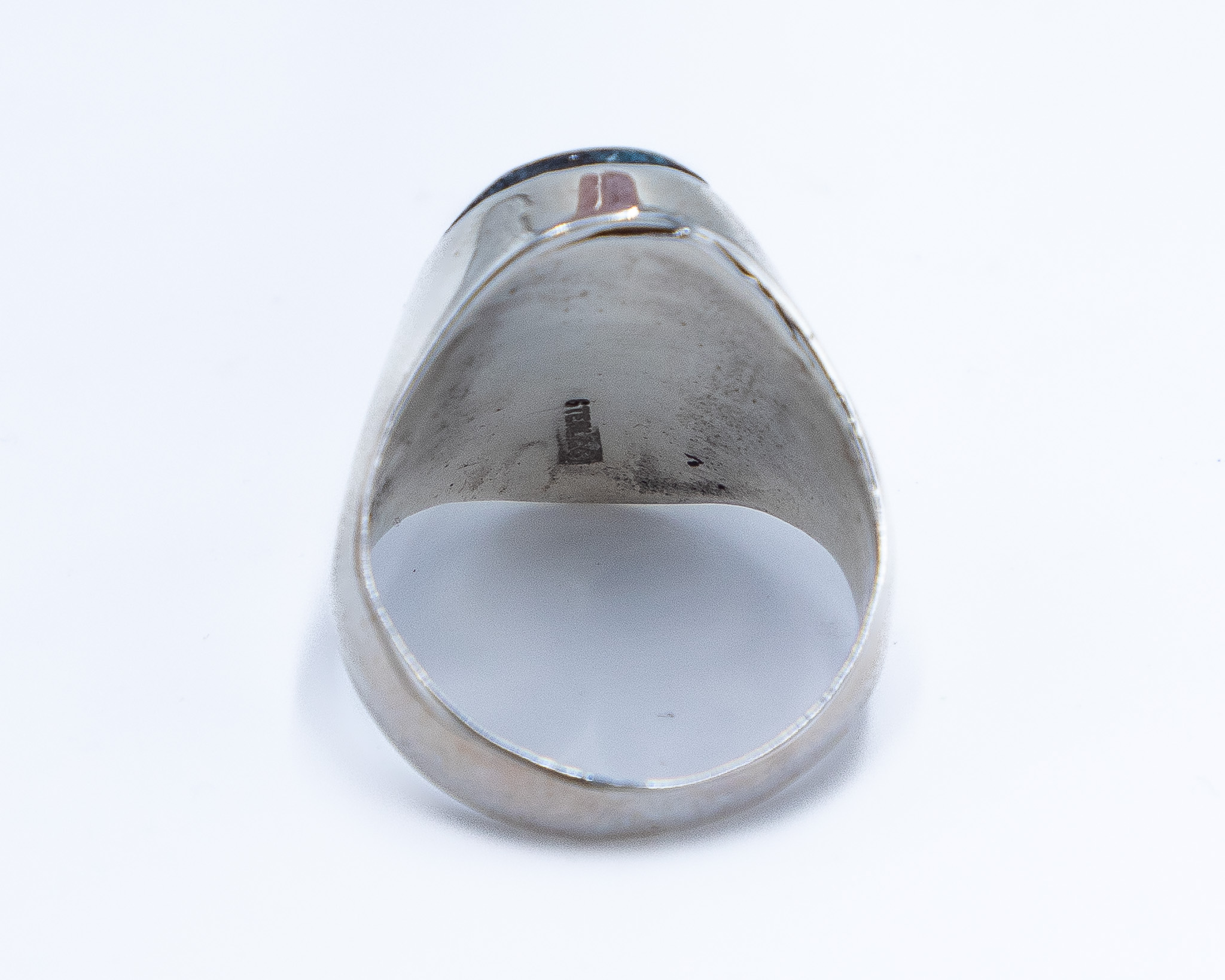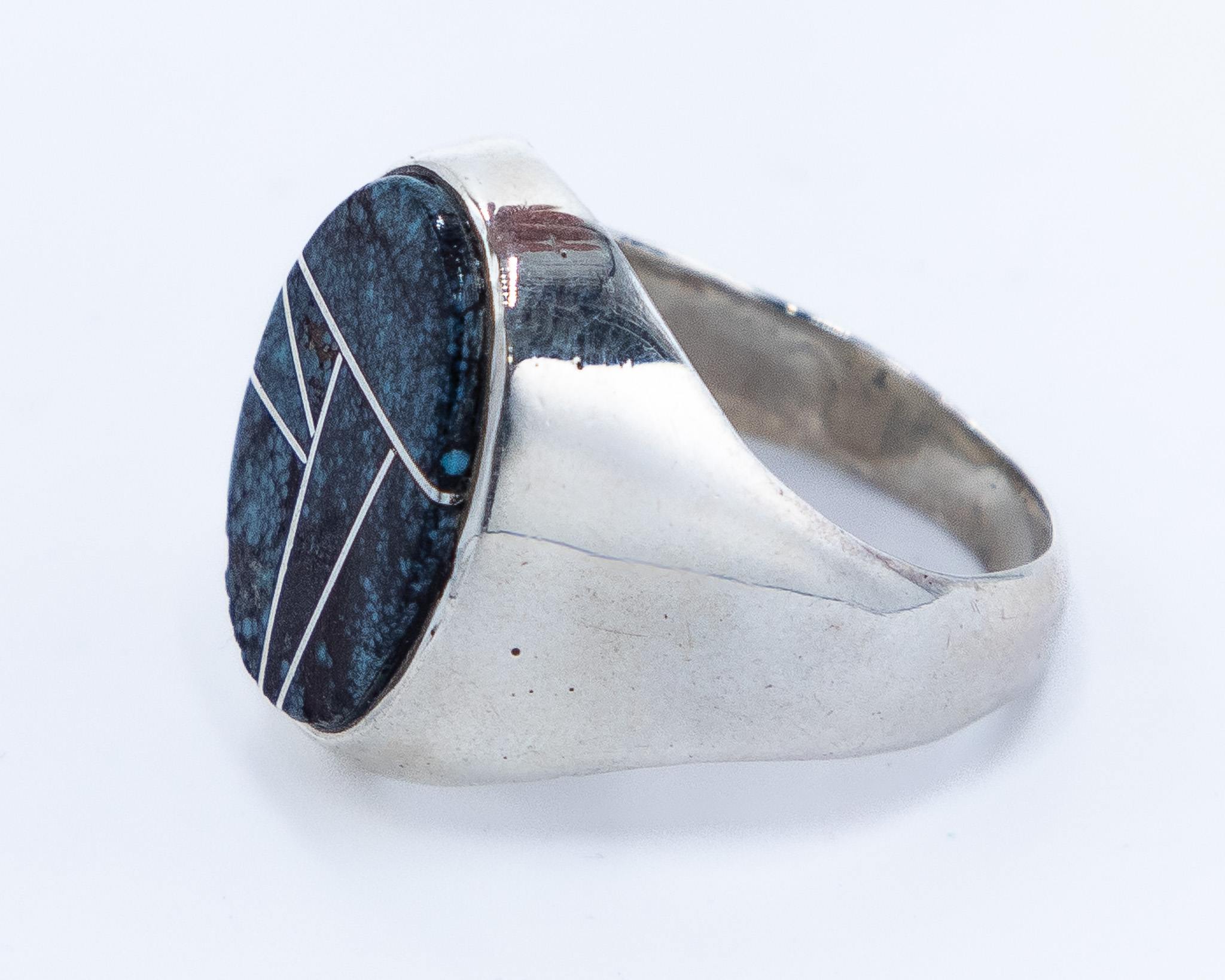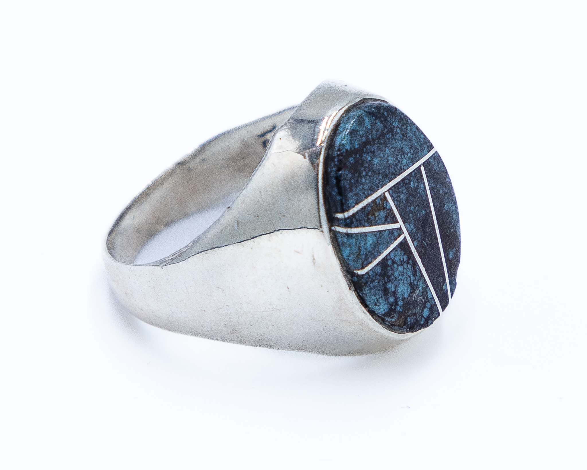 Vintage Sterling Lander Blue Turquoise Inlay Ring Sz. 12.25, 15g