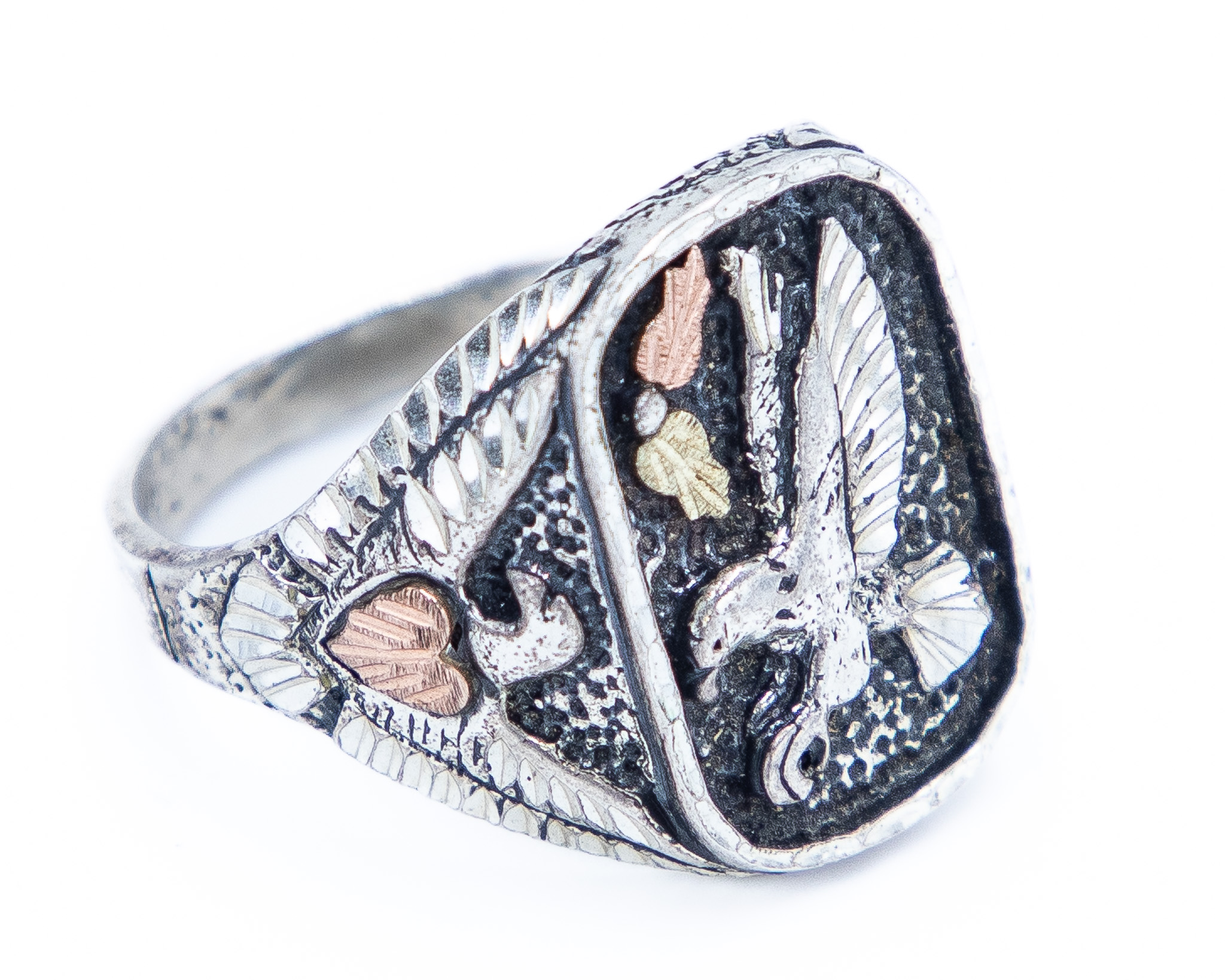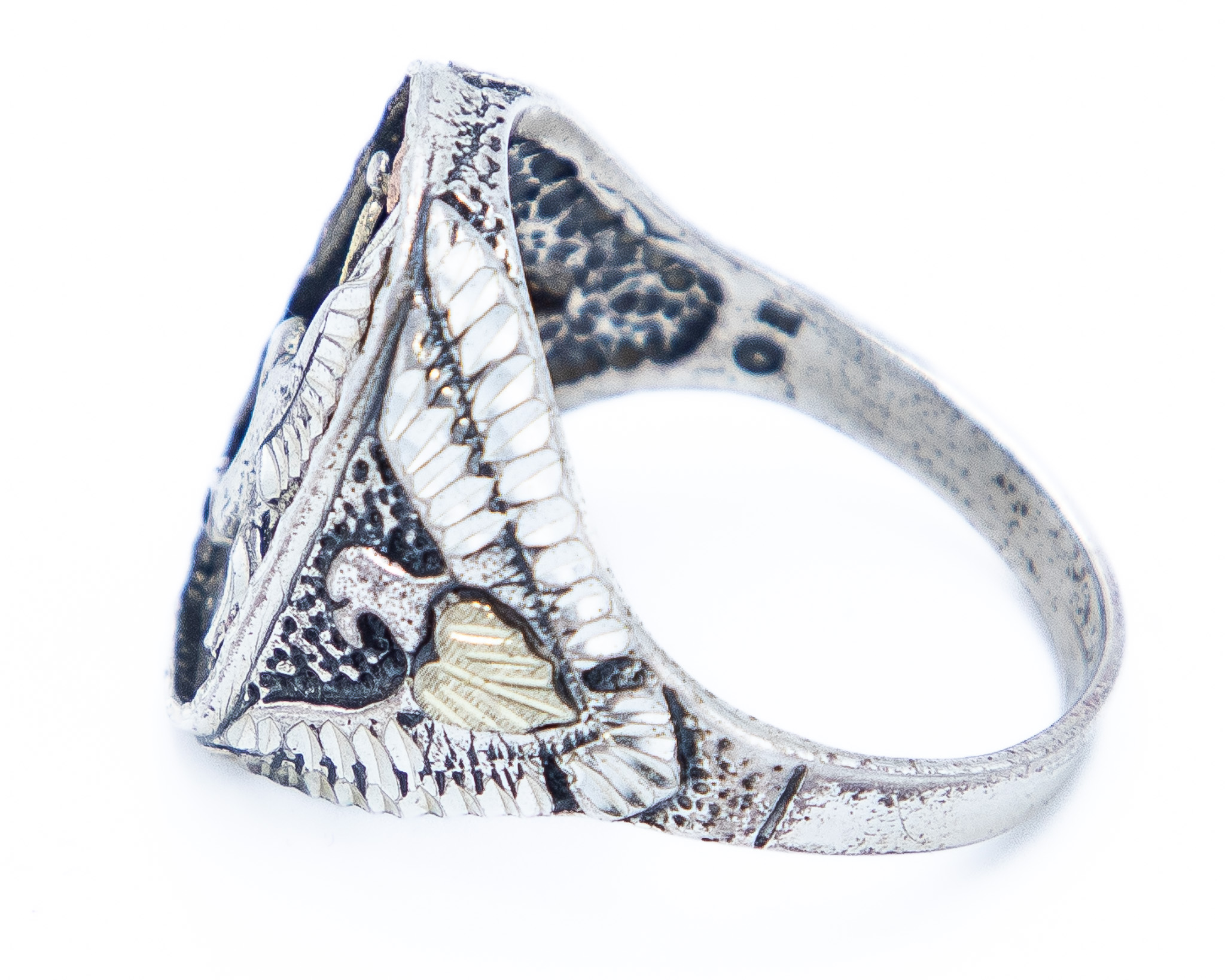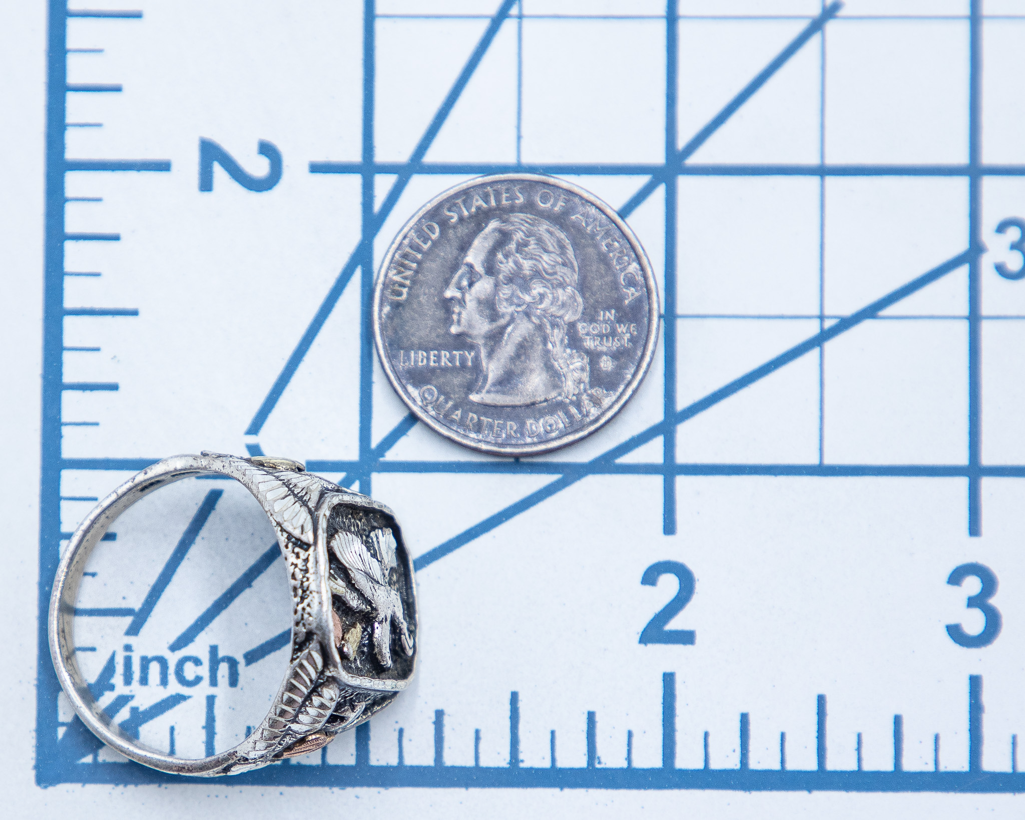 Signed Mens Vintage Native American 12K Gold Sterling Eagle Ring Sz. 14.25, 13g-Illegible Signature Stamp