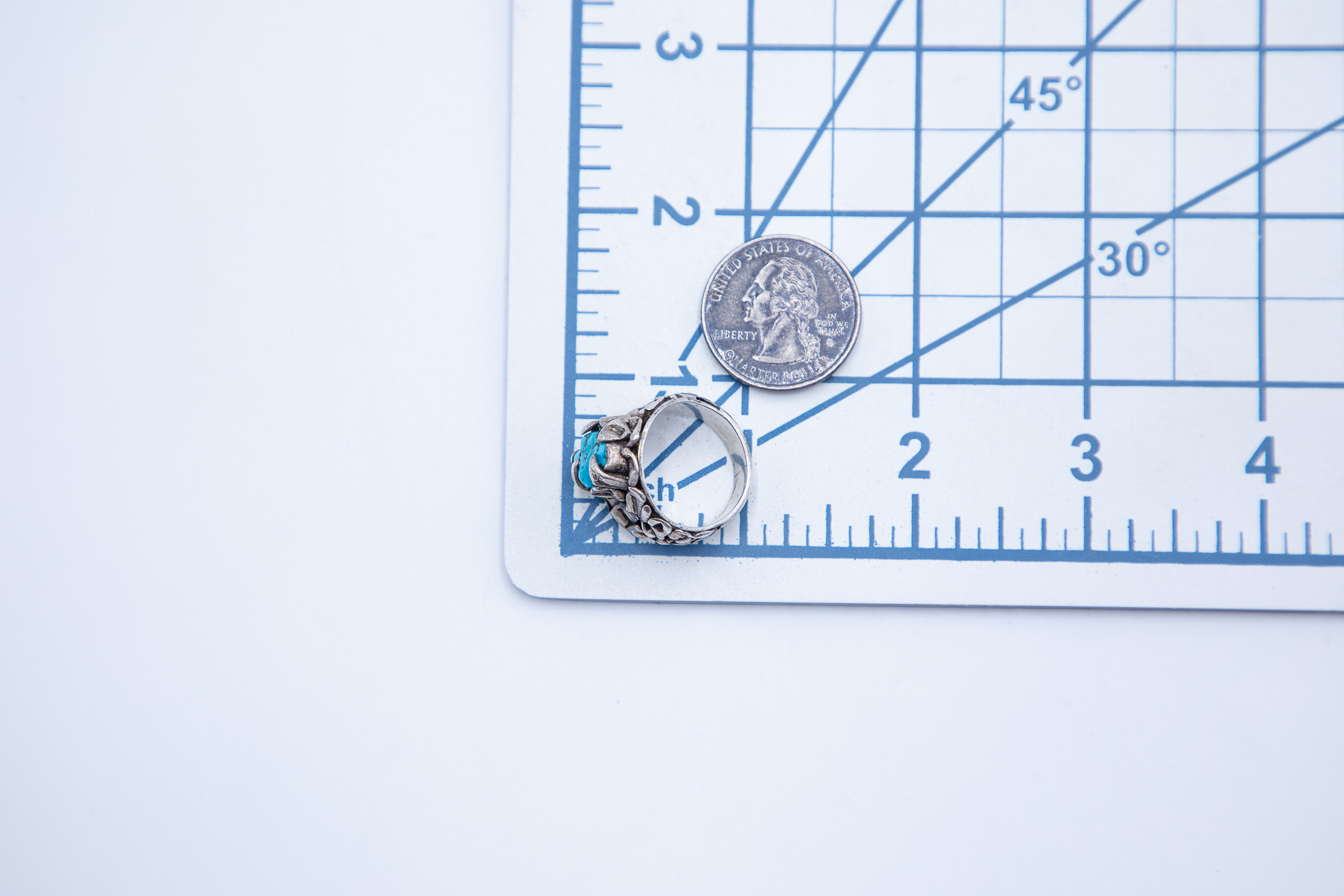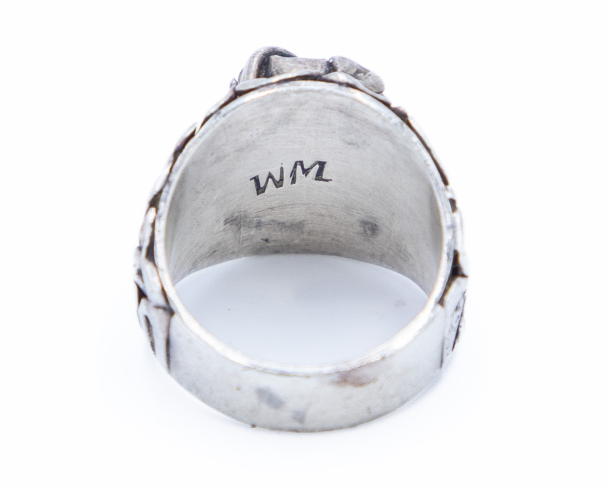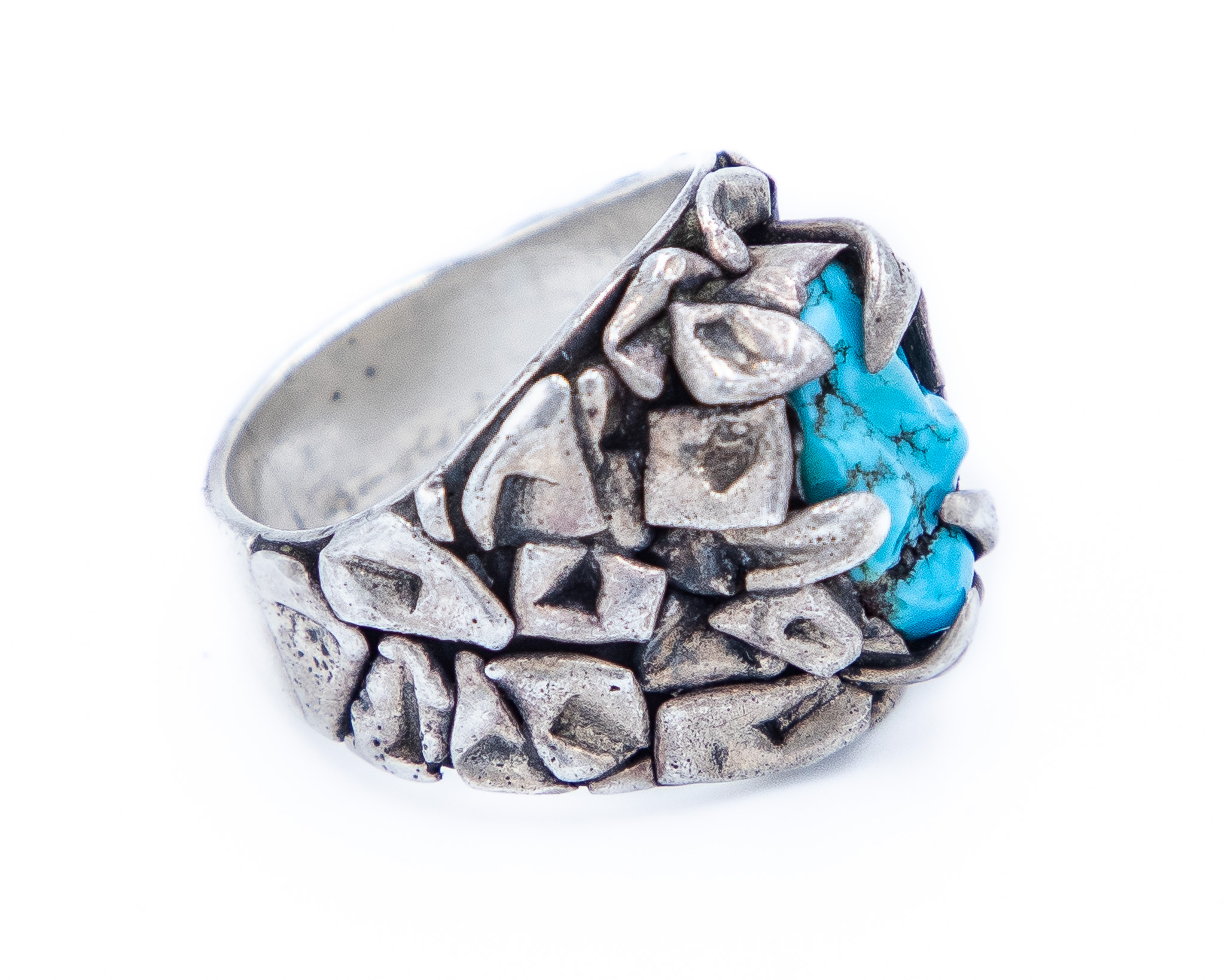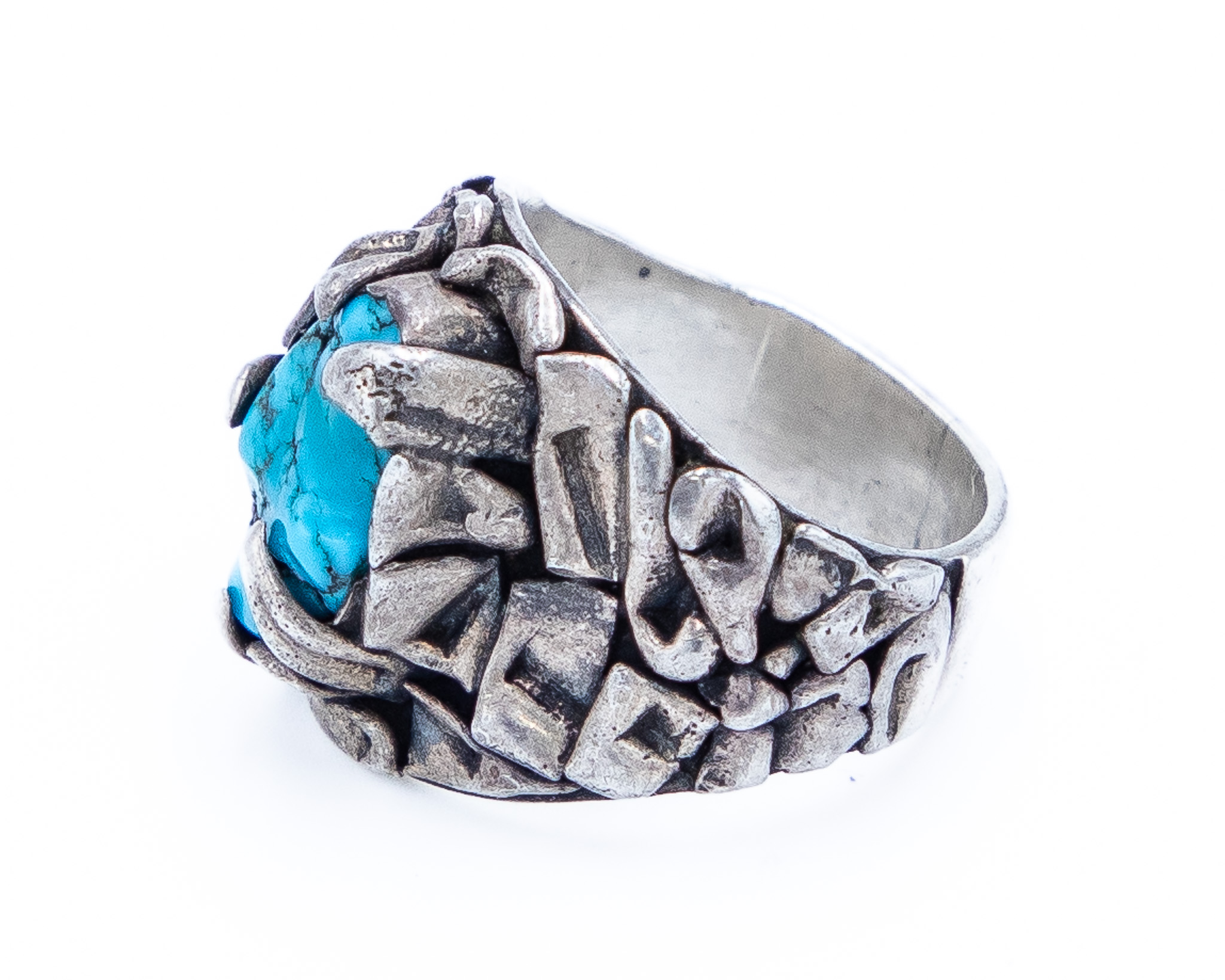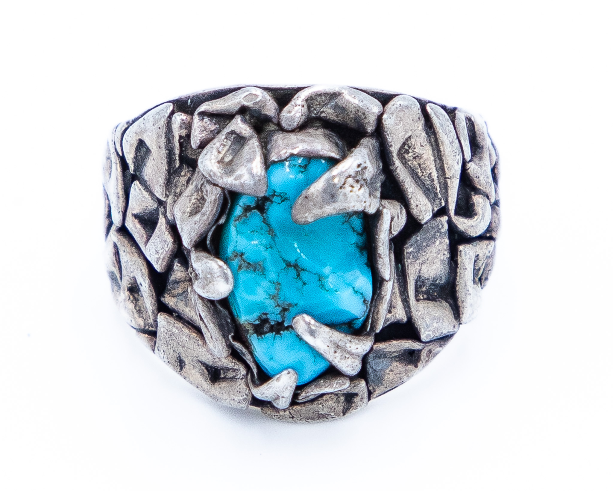 Signed WM Navajo Chunk Turquoise Sterling Overlay Ring Sz. 7.75, 12g