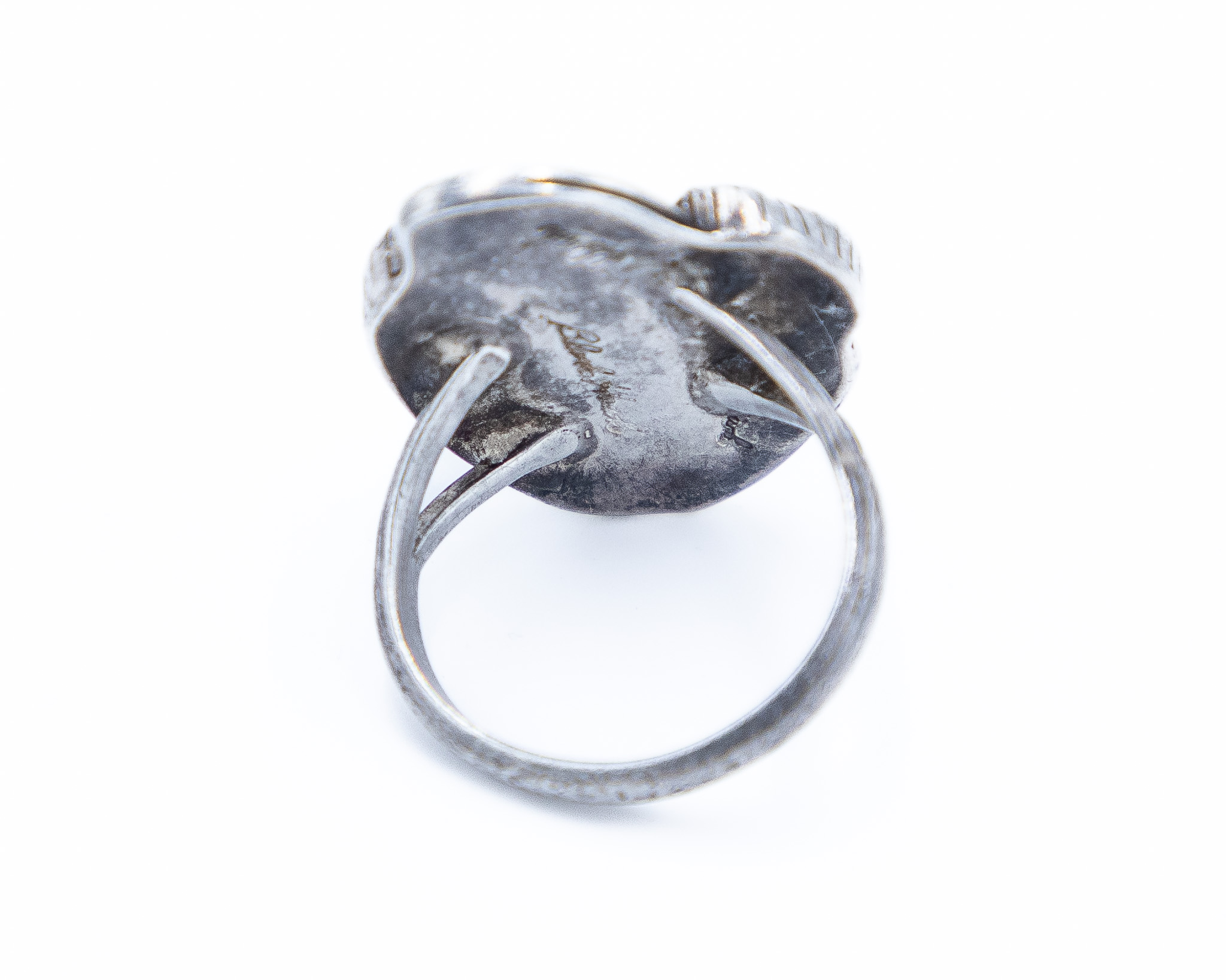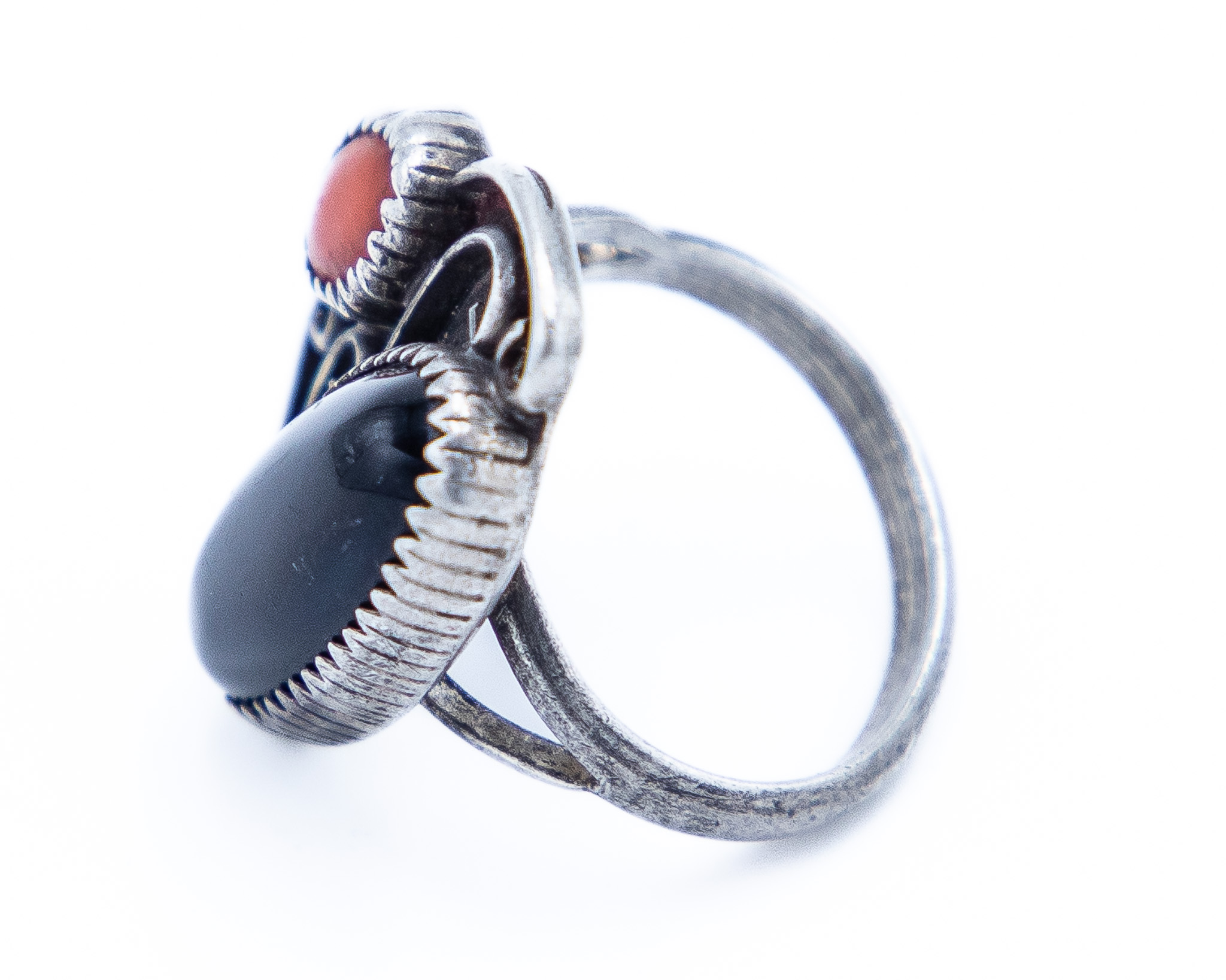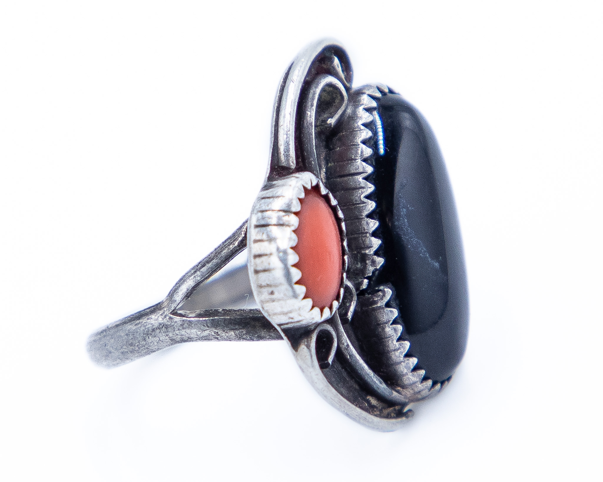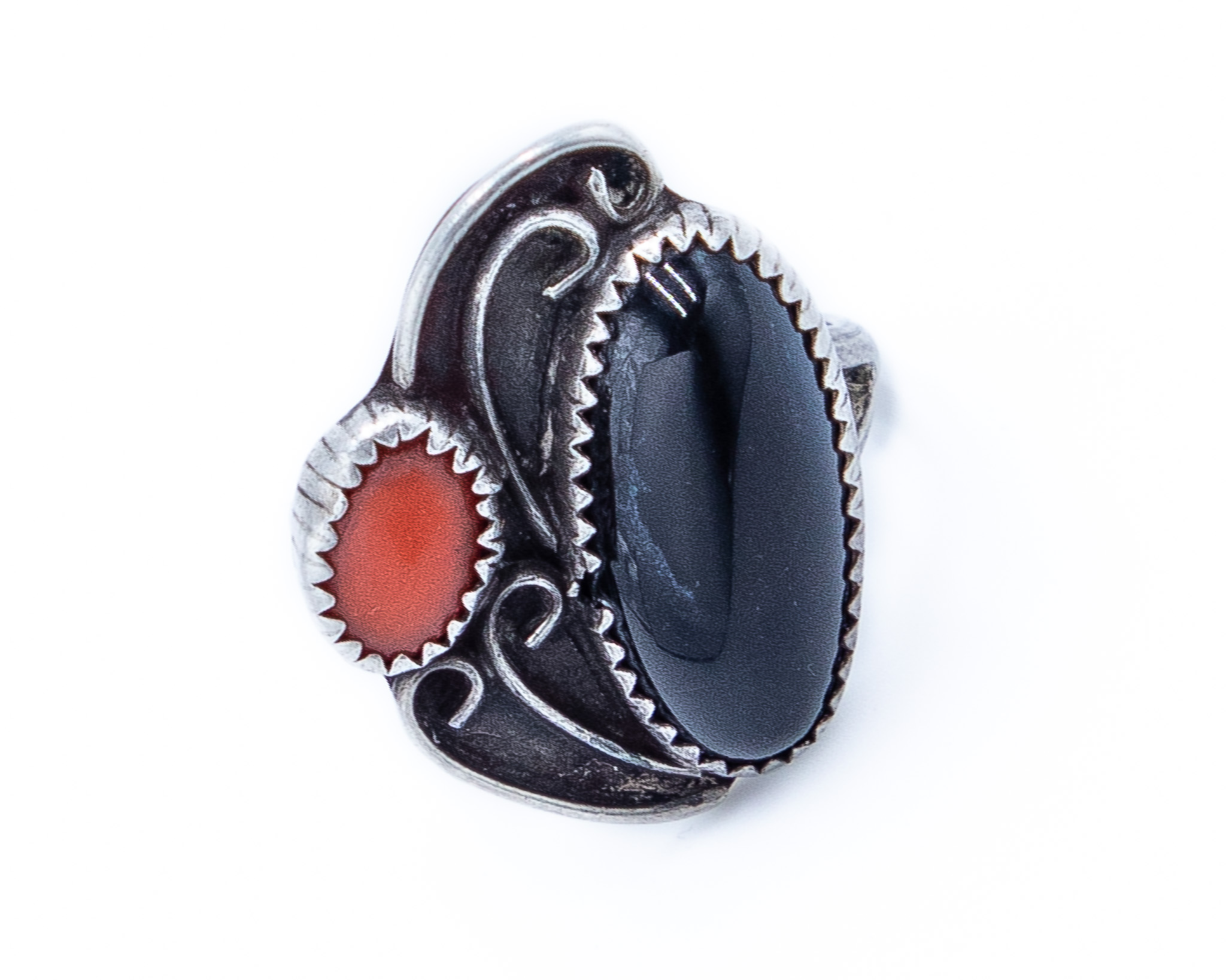 Vintage Black Hawk Sterling Onyx Coral Ring Sz. 5.25, 5g