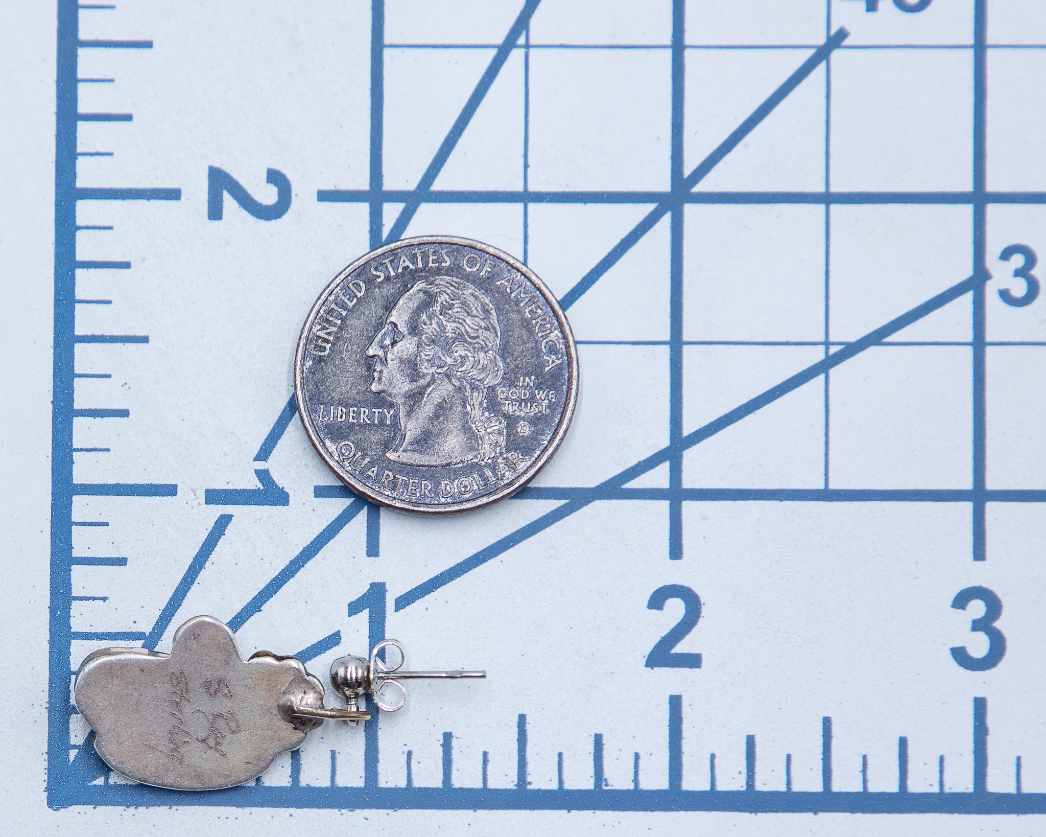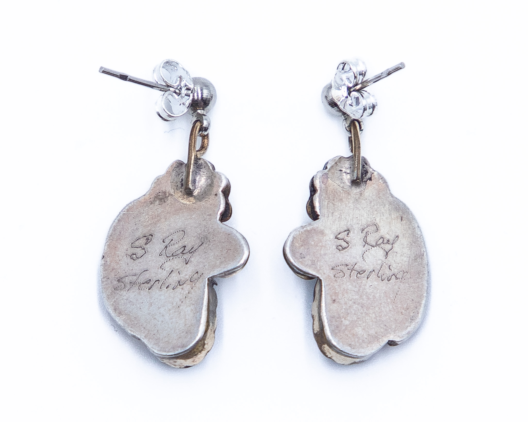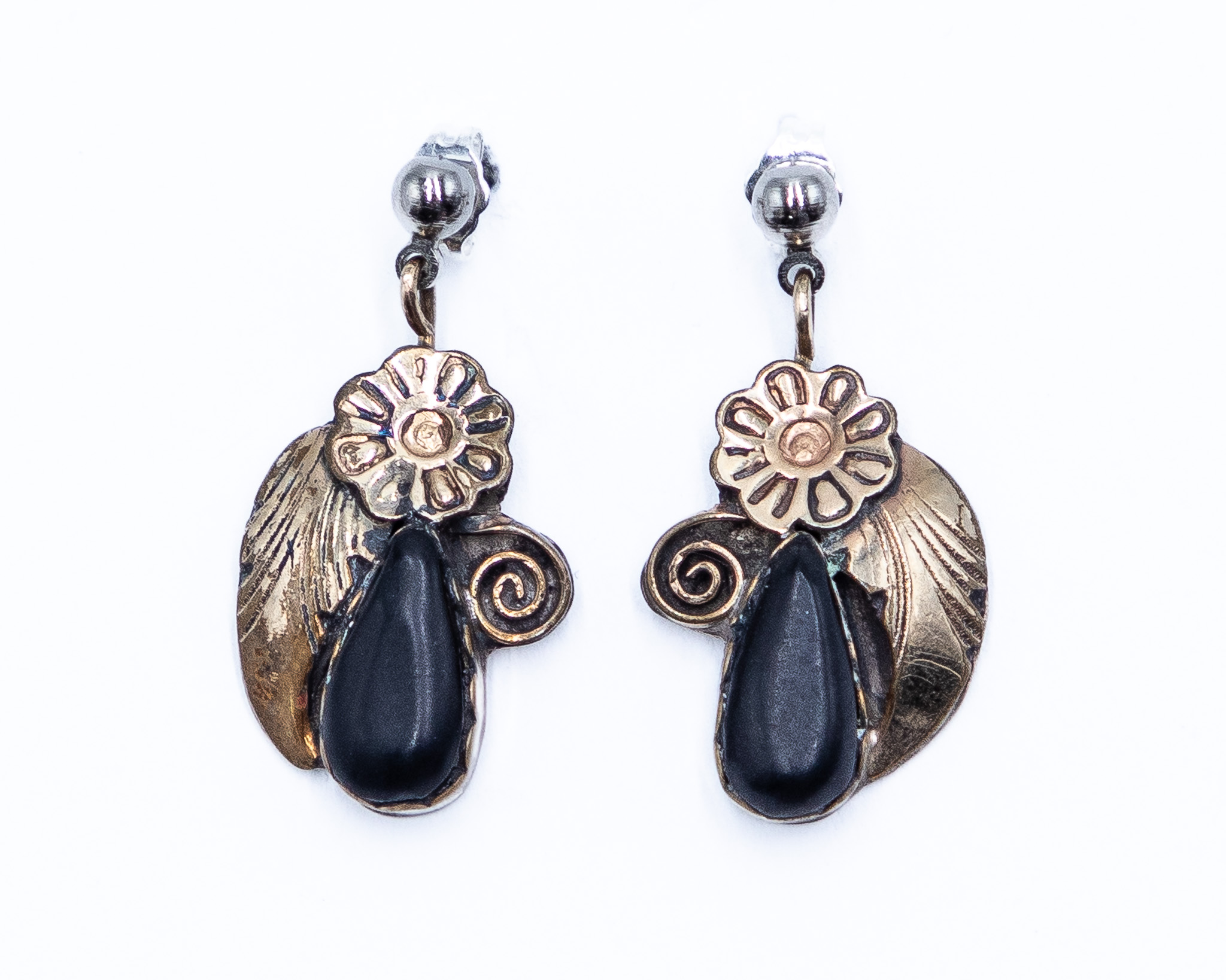Silver Ray Navajo Vintage Gold Over Sterling Jet Blossom Earrings 5g