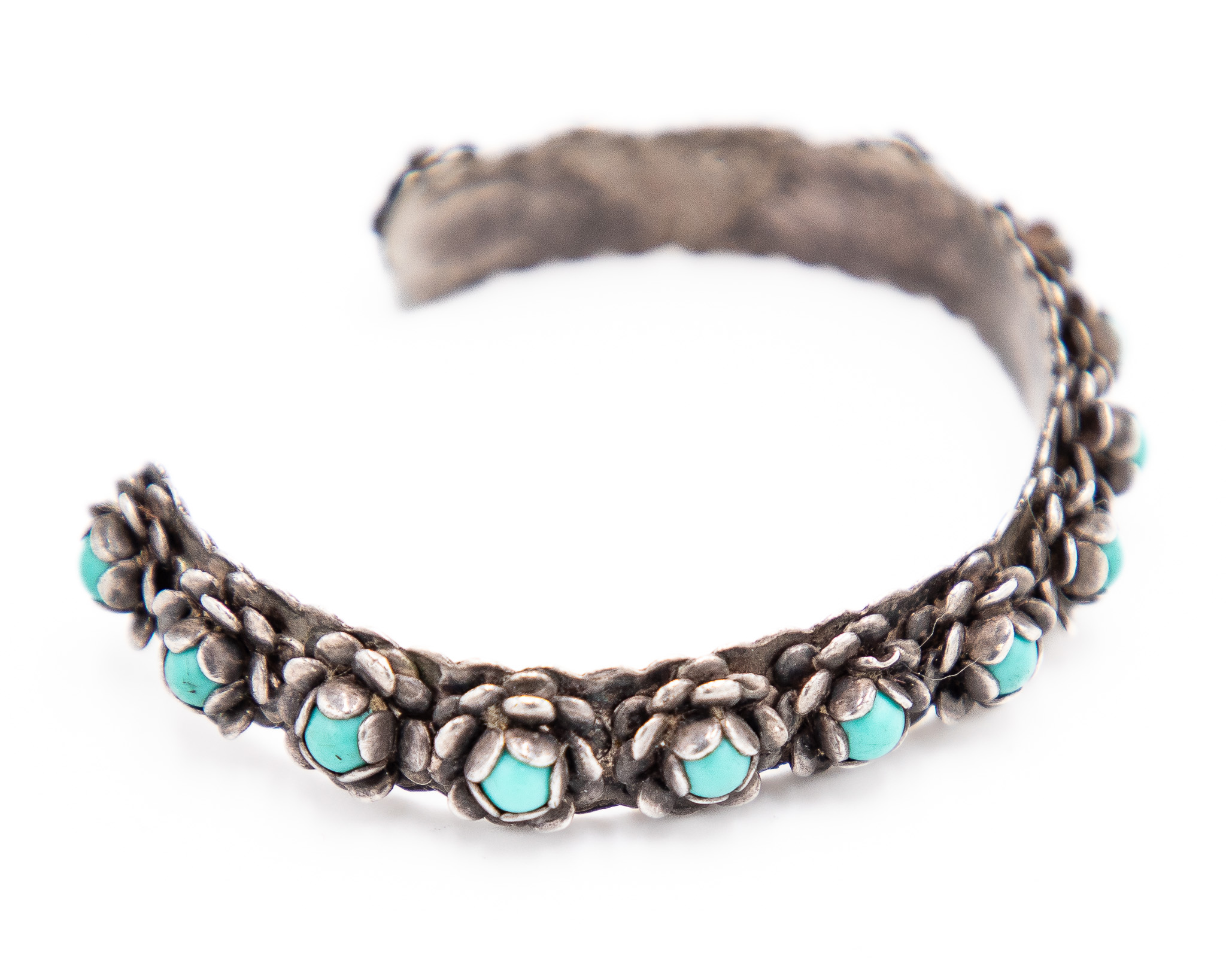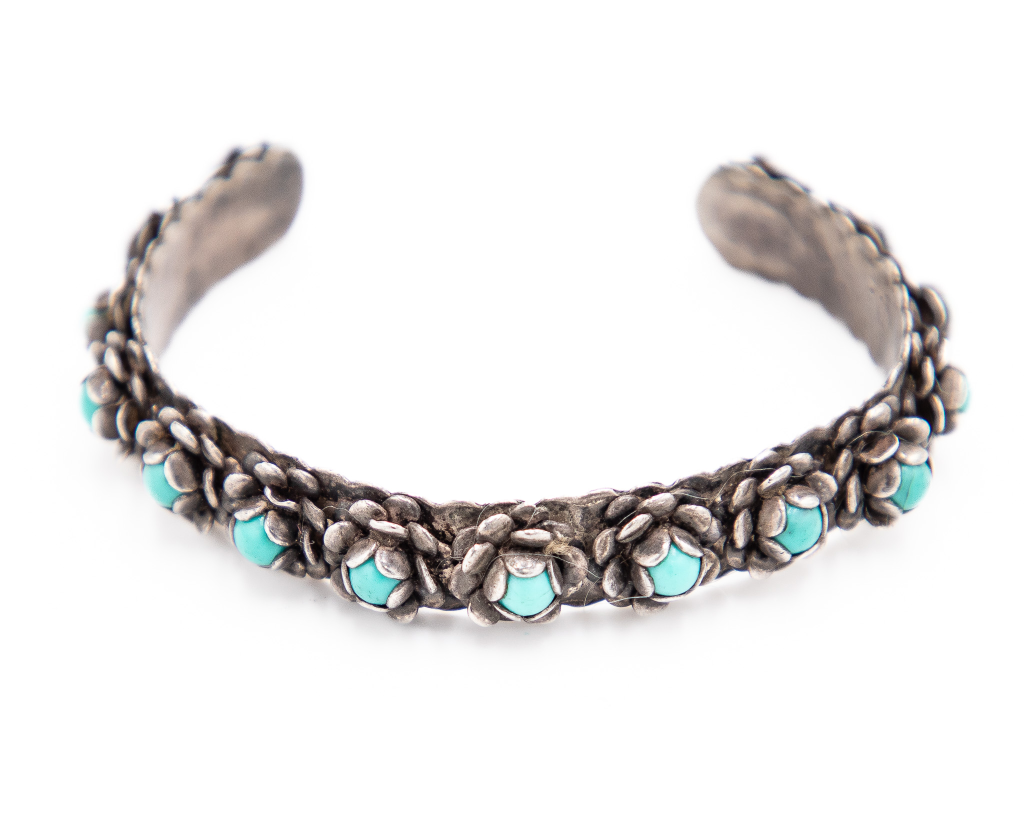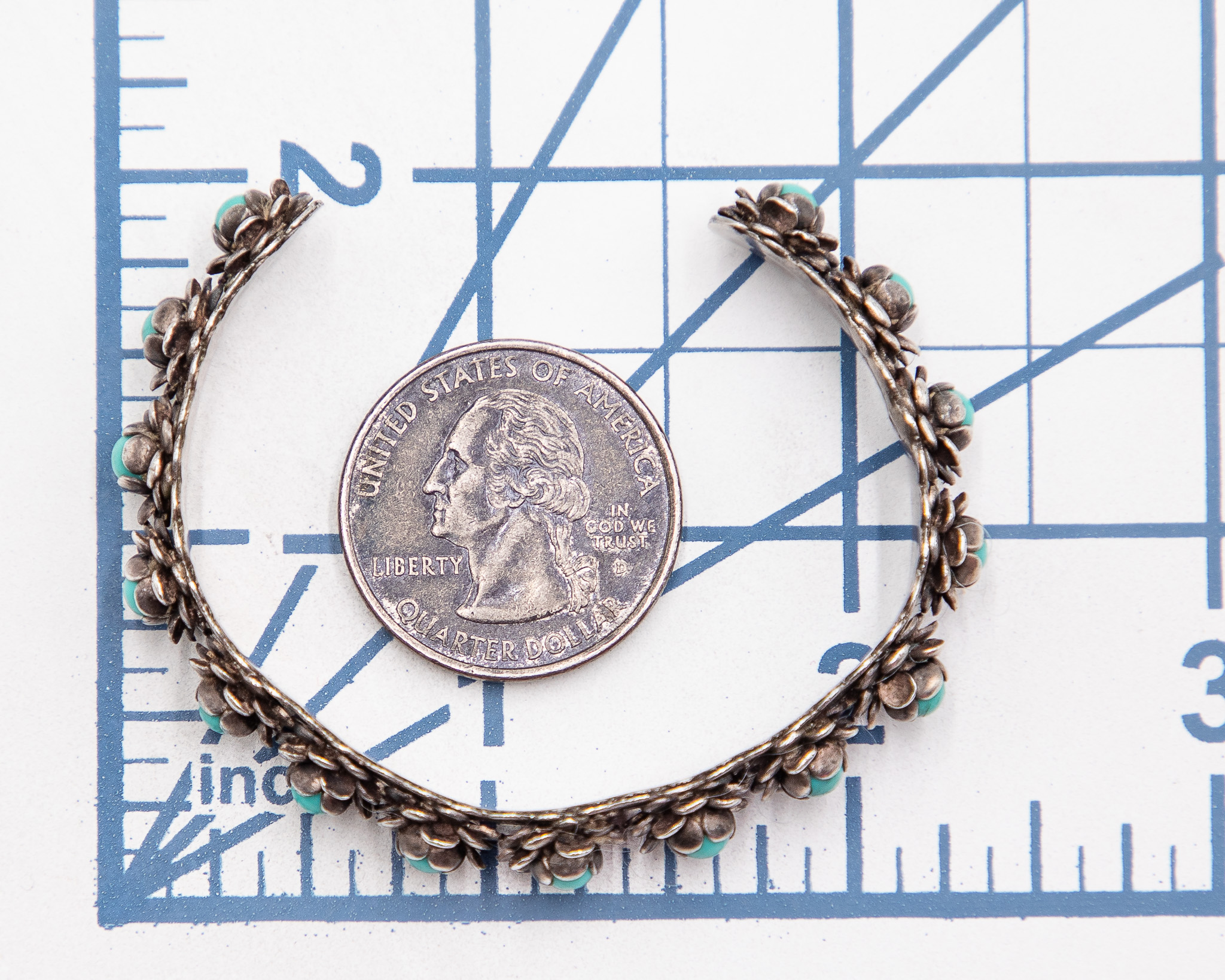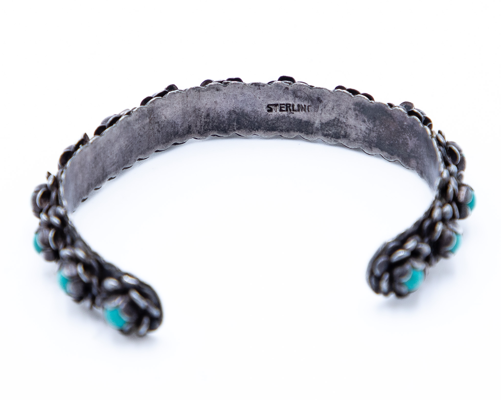 Vintage Navajo Sterling Snake Eye Turquoise Floral Cuff Bracelet 18g