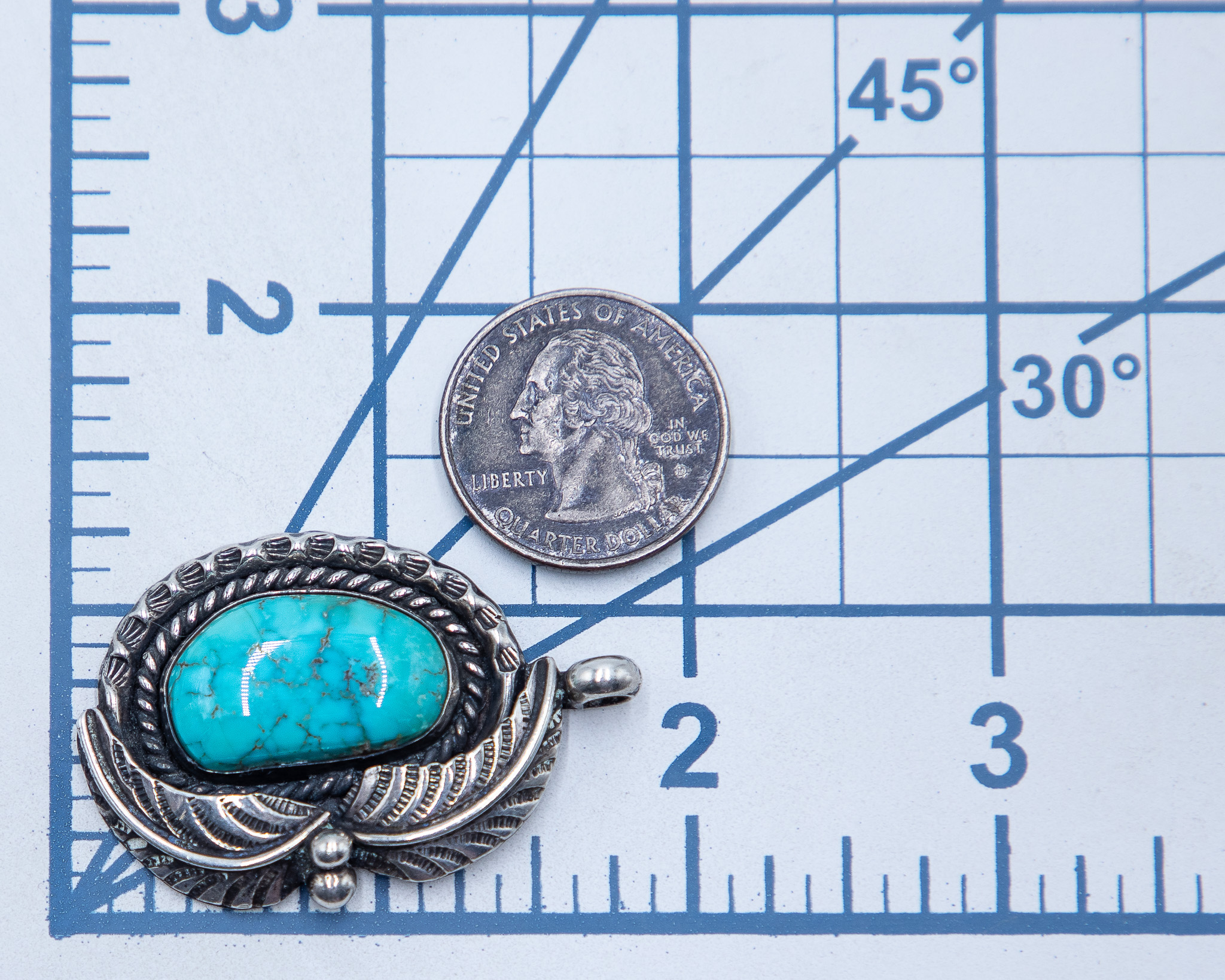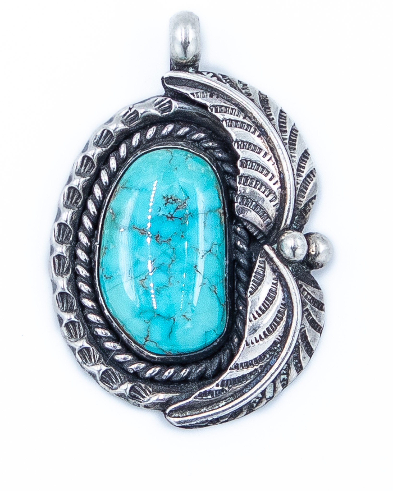 Signed FC Navajo Sterling Turquoise Pendant 18g