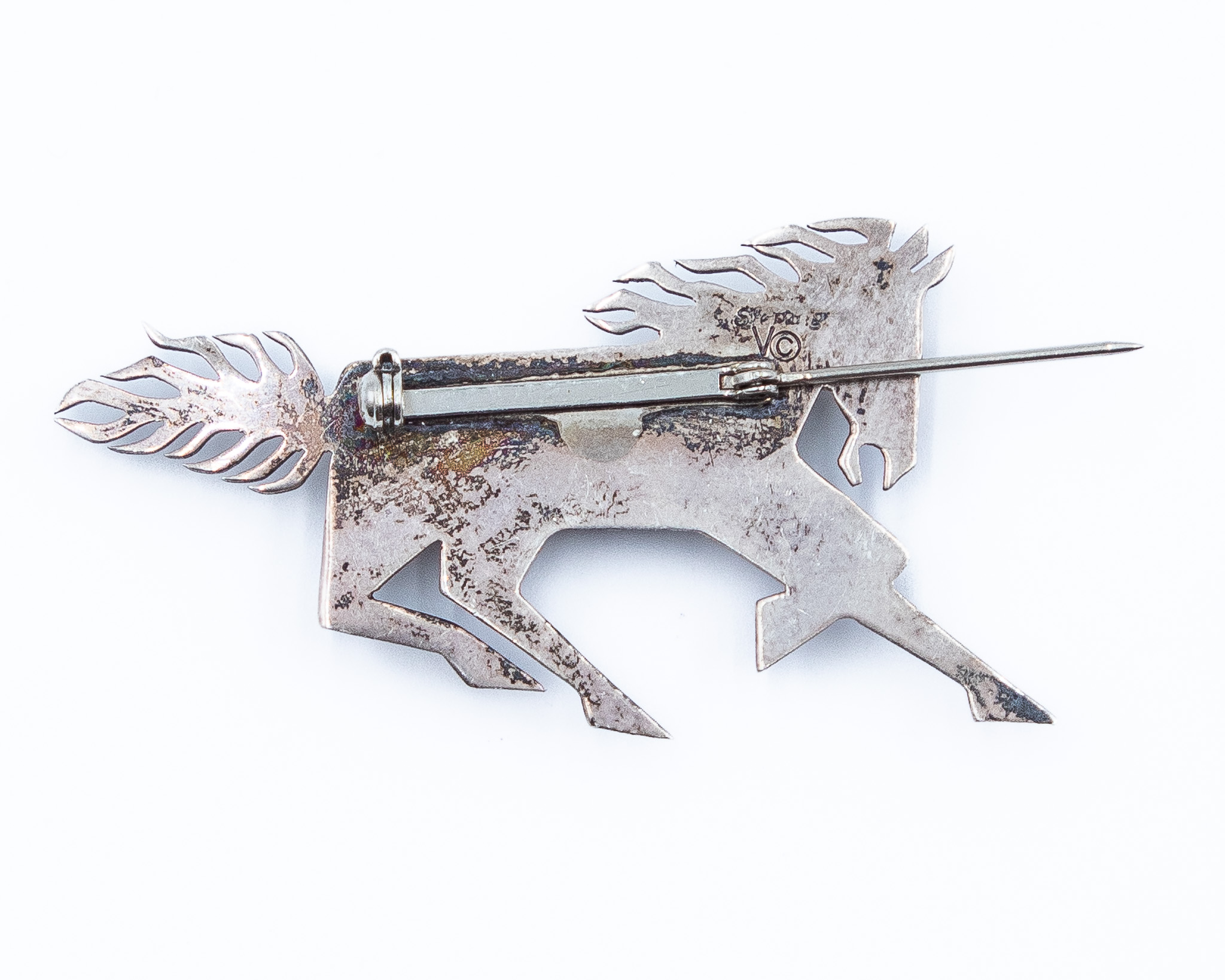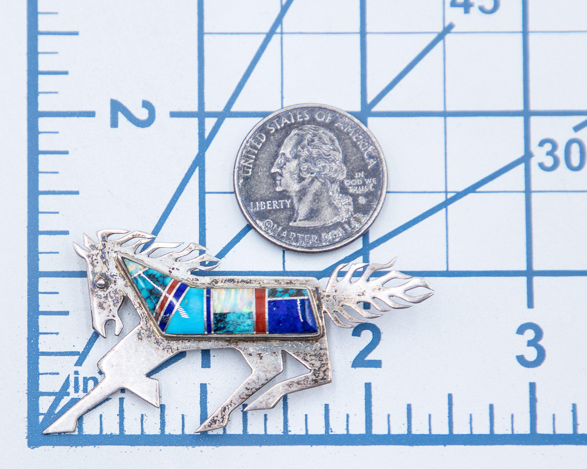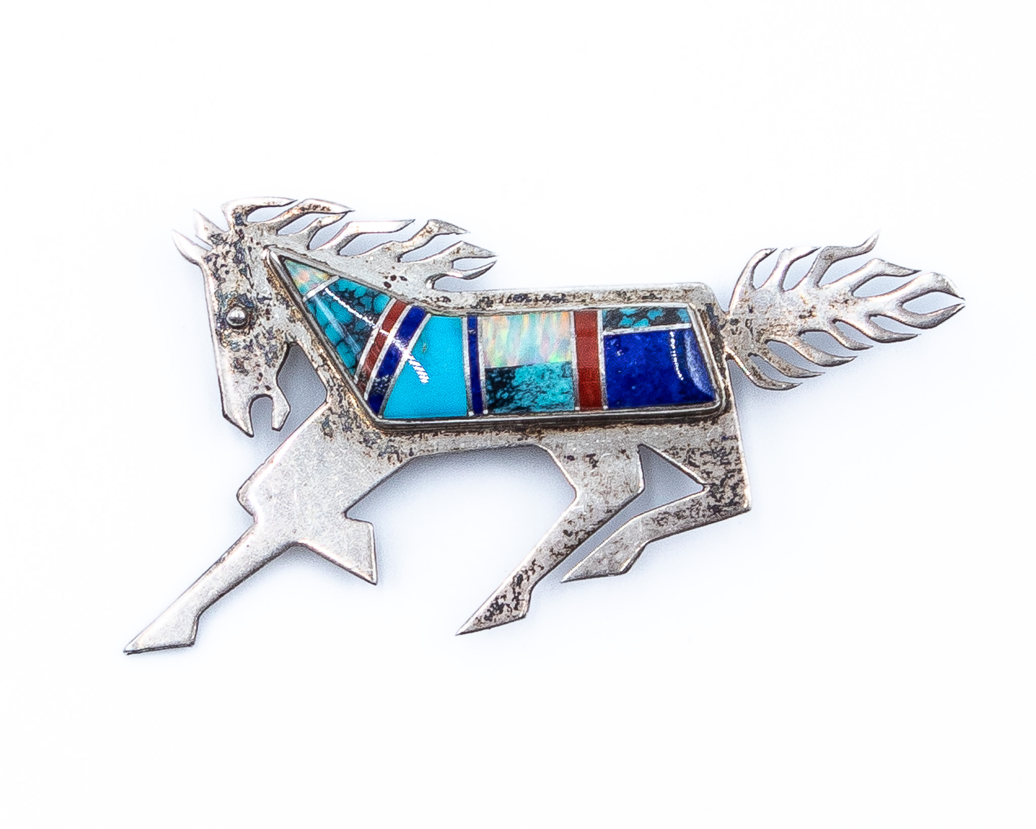 Robert Vandover Navajo Multi Stone Sterling Inlay Brooch Pin 10g-Lapis, Turquoise, Synthetic Opal, Coral