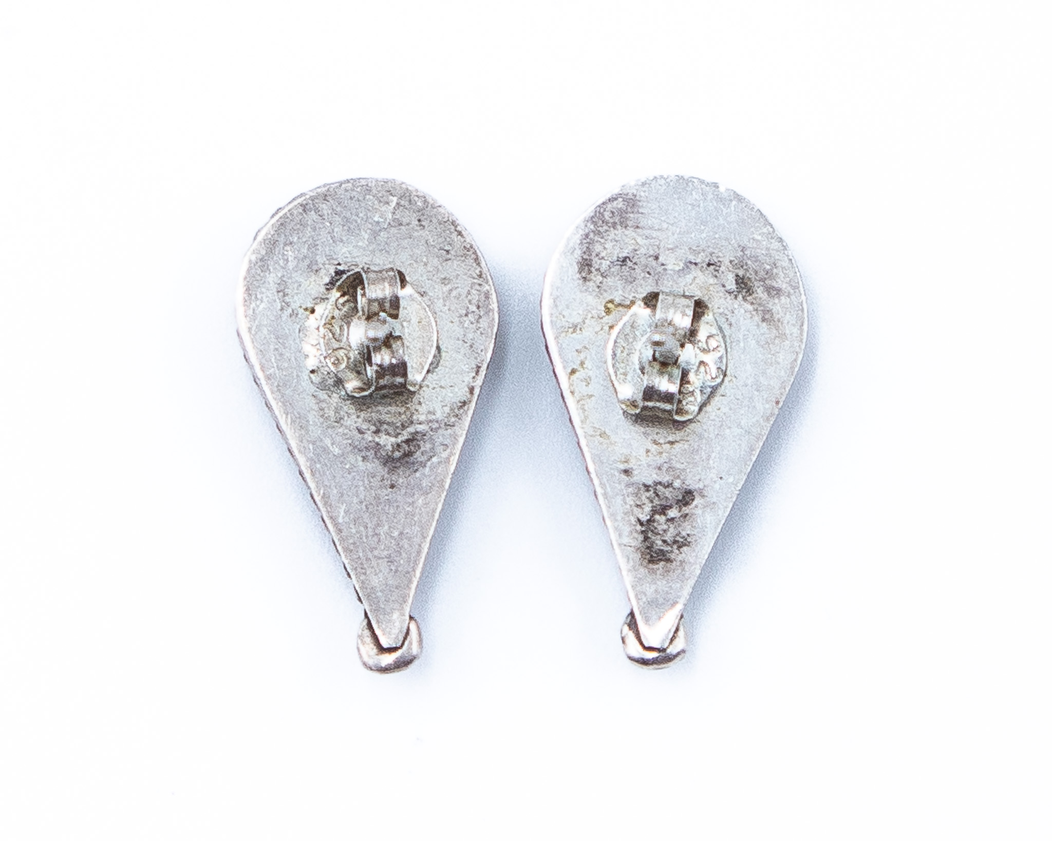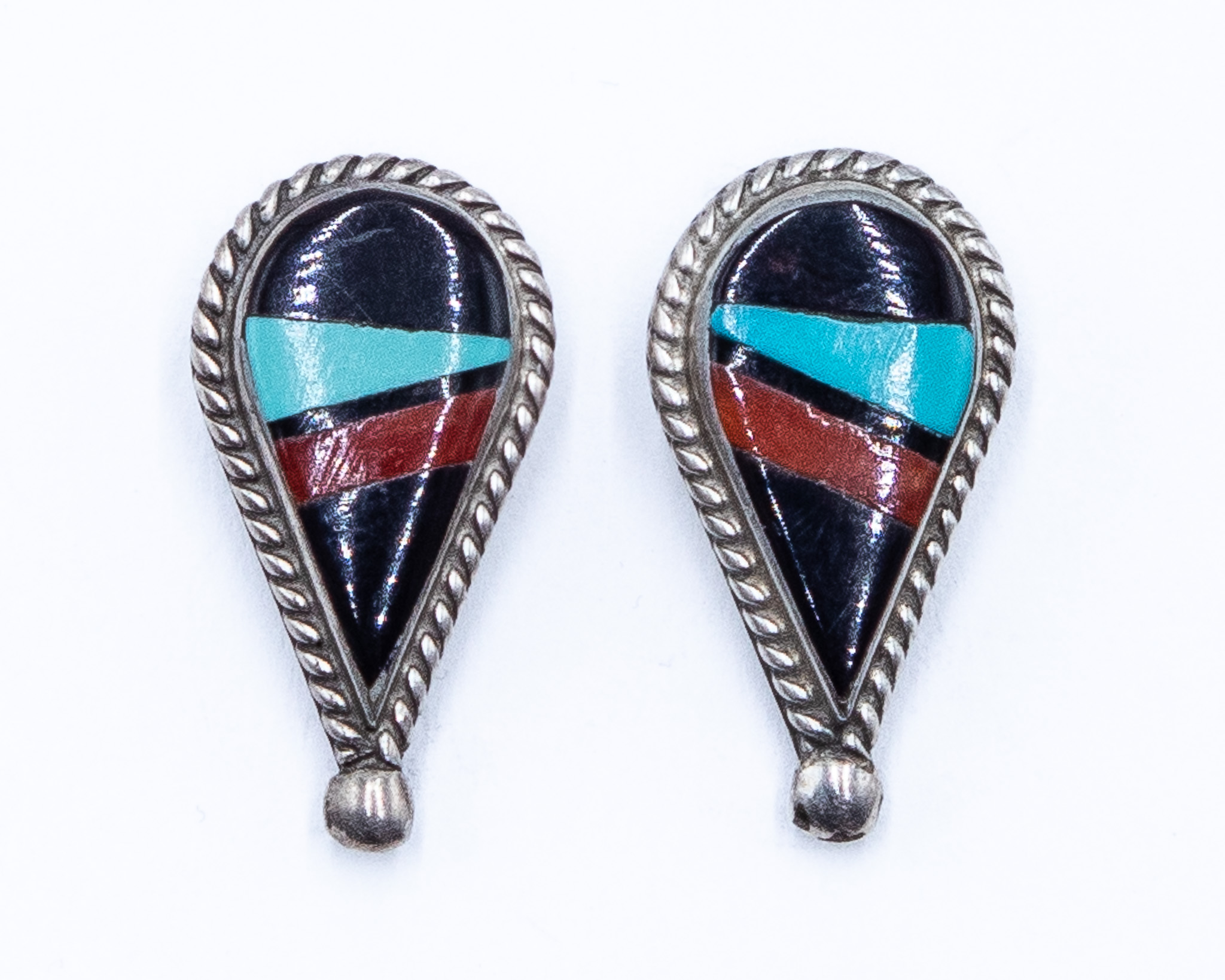 Vintage Native American Sterling Turquoise Spiny Oyster Onyx Inlay Earrings 3g