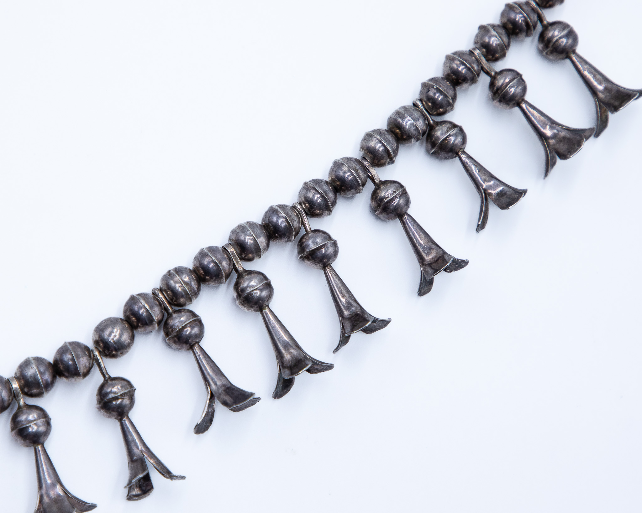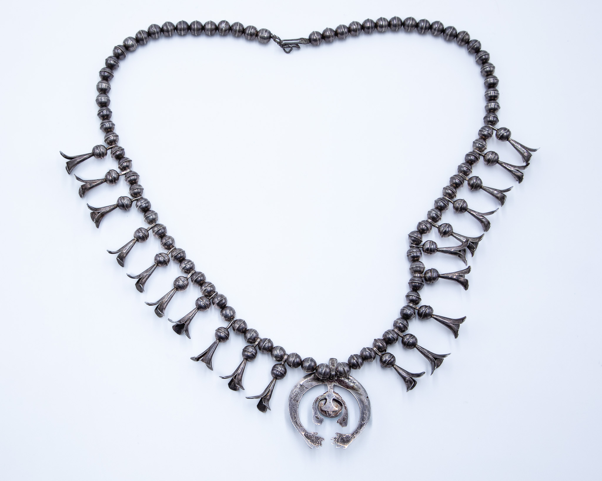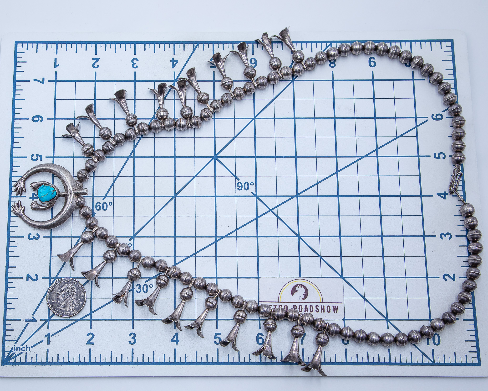 Vintage Navajo Sterling Turquoise Squash Blossom Naja Necklace 26 Inches