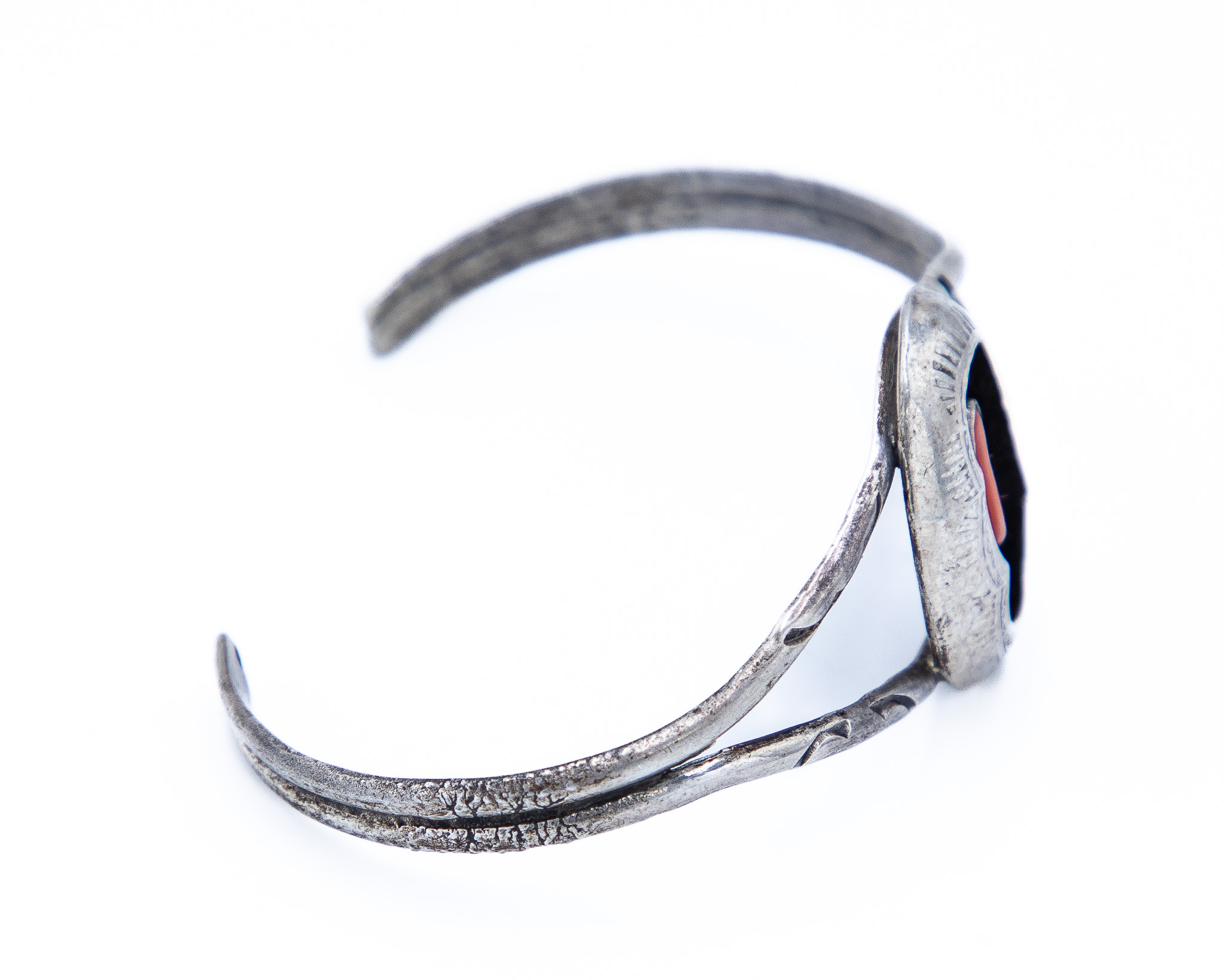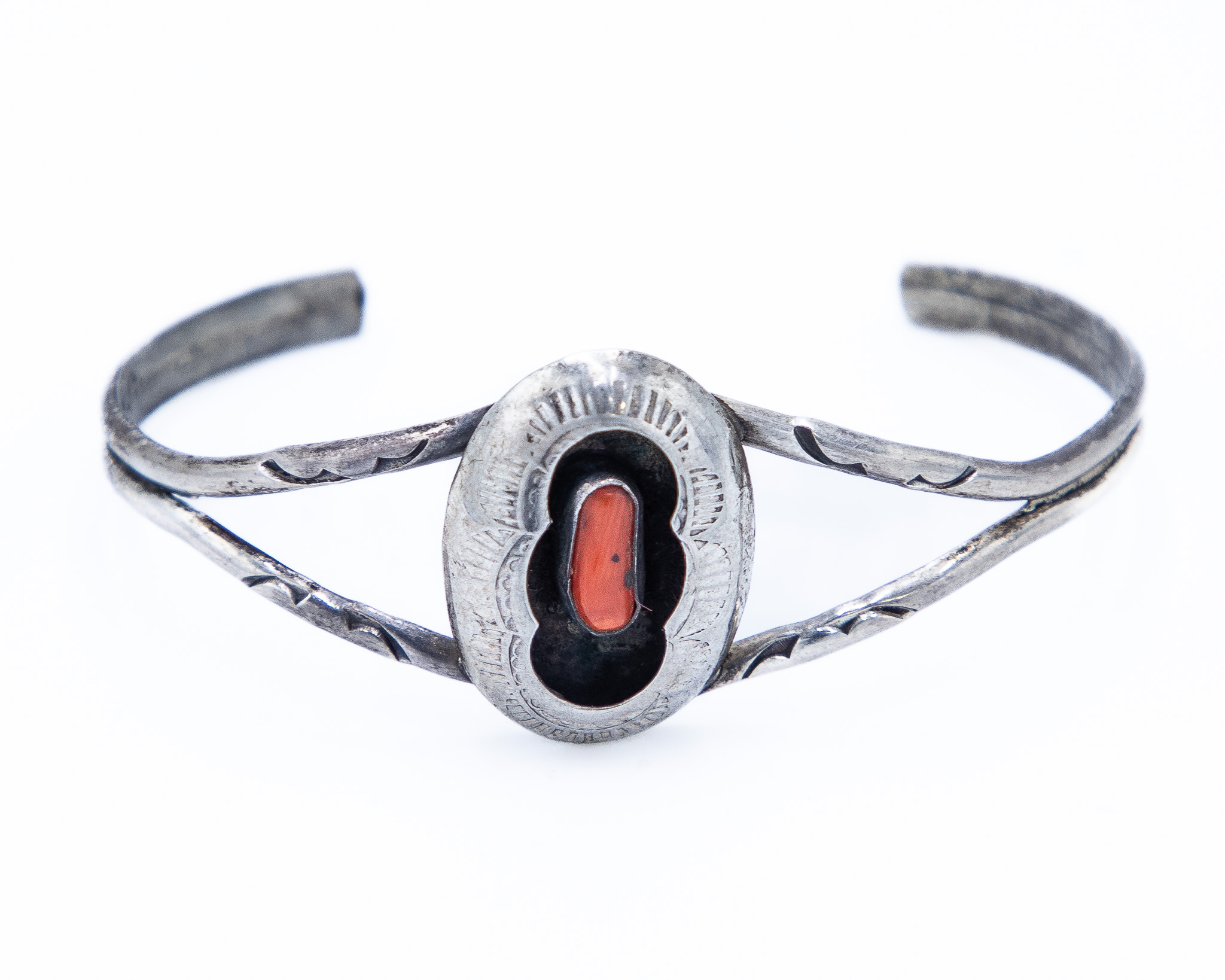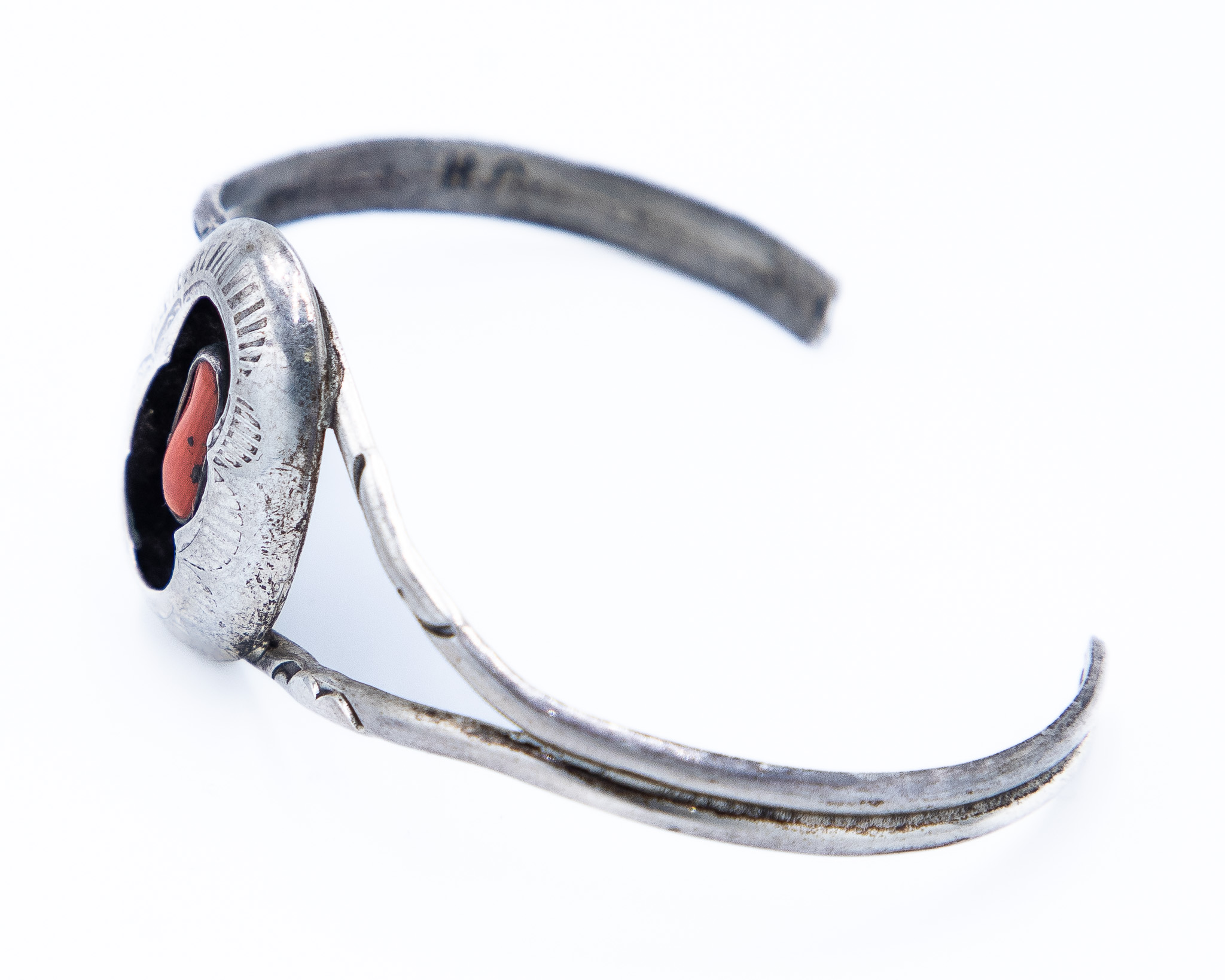 James Henderson Vintage Navajo Sterling Red Coral Shadow Box Cuff Bracelet 10g