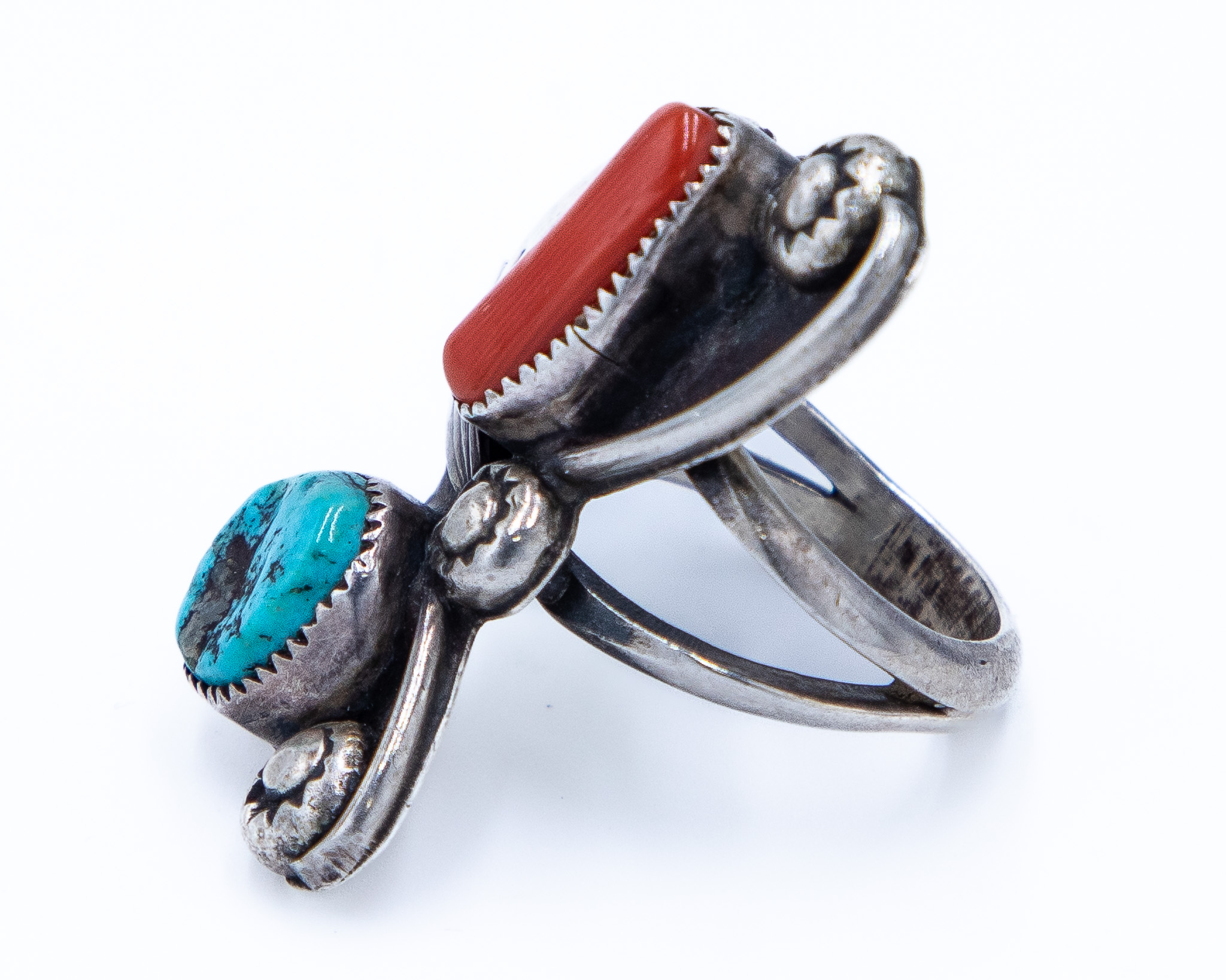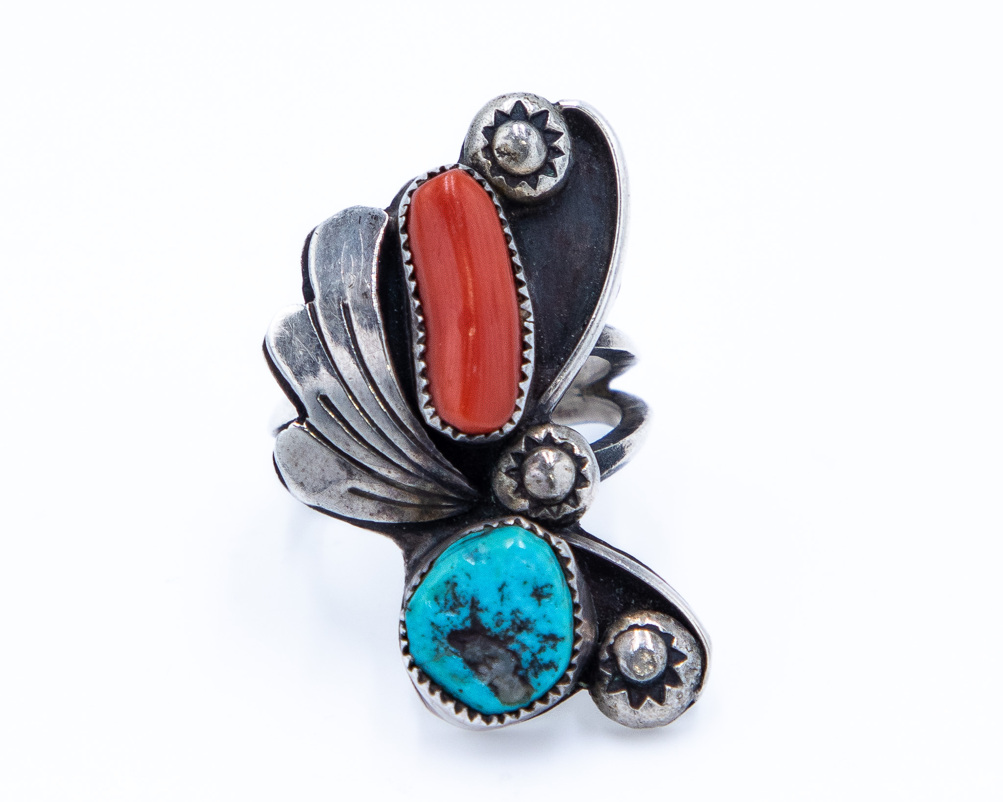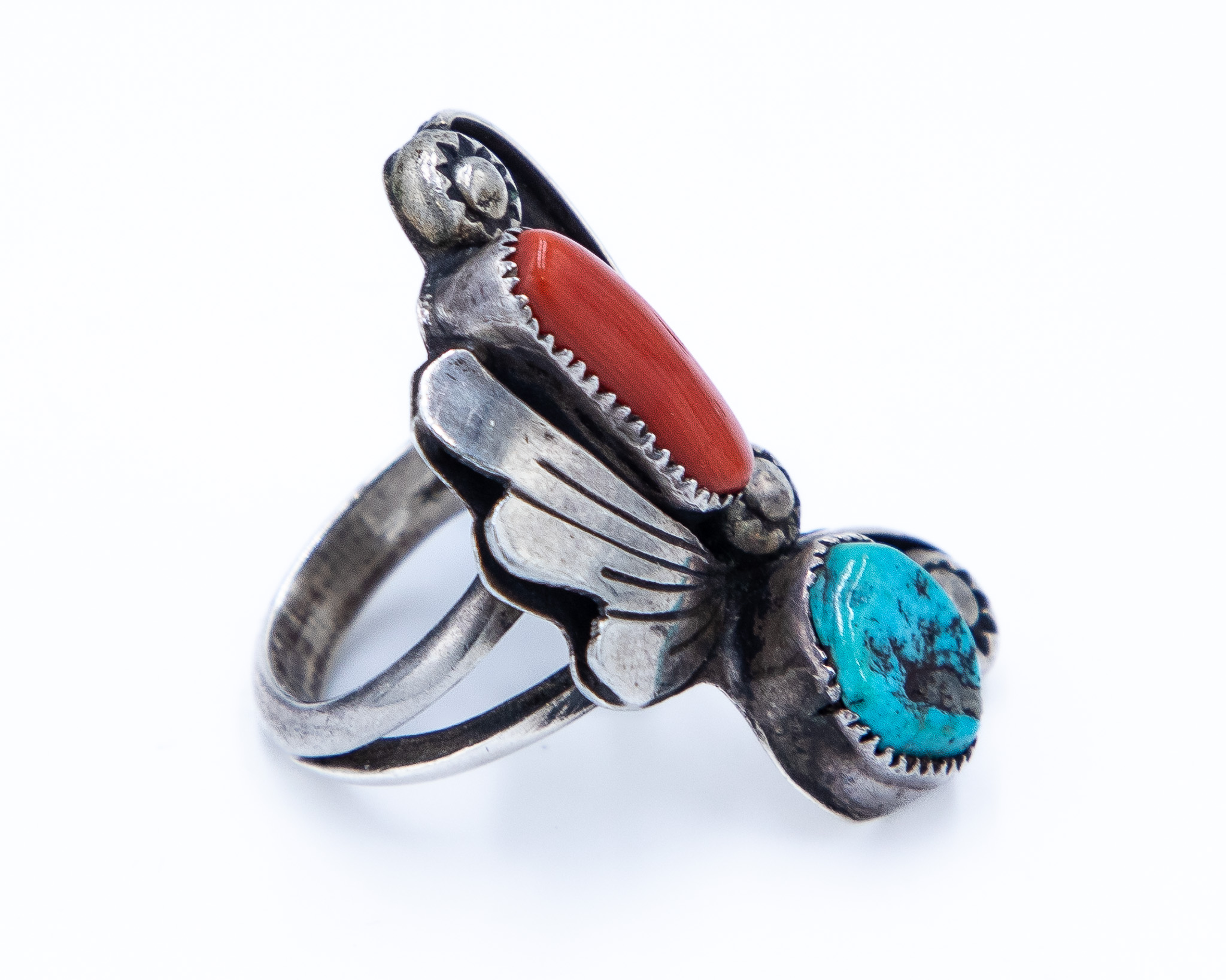 Vintage Navajo Sterling Coral Turquoise Ring Sz. 6, 10.5g