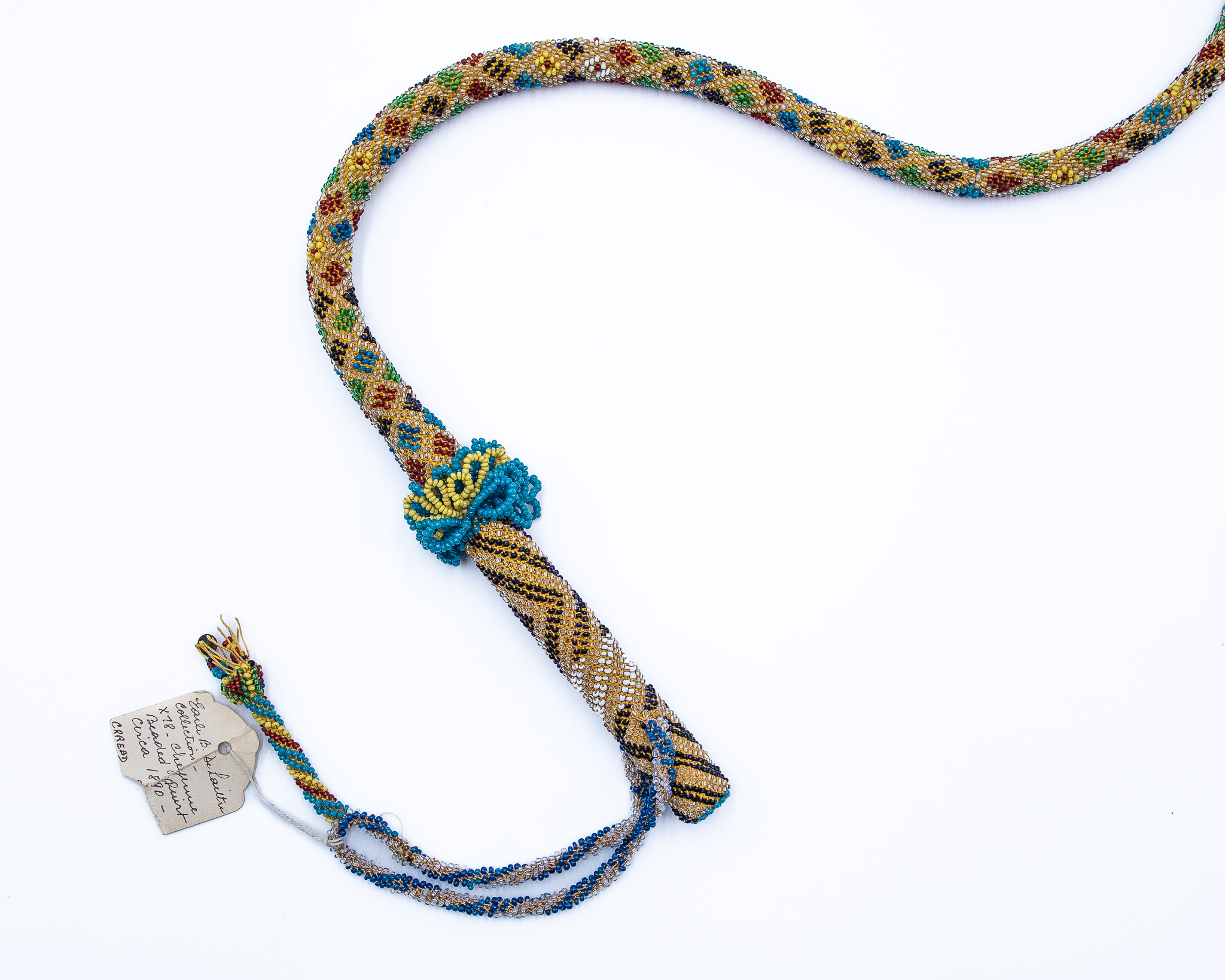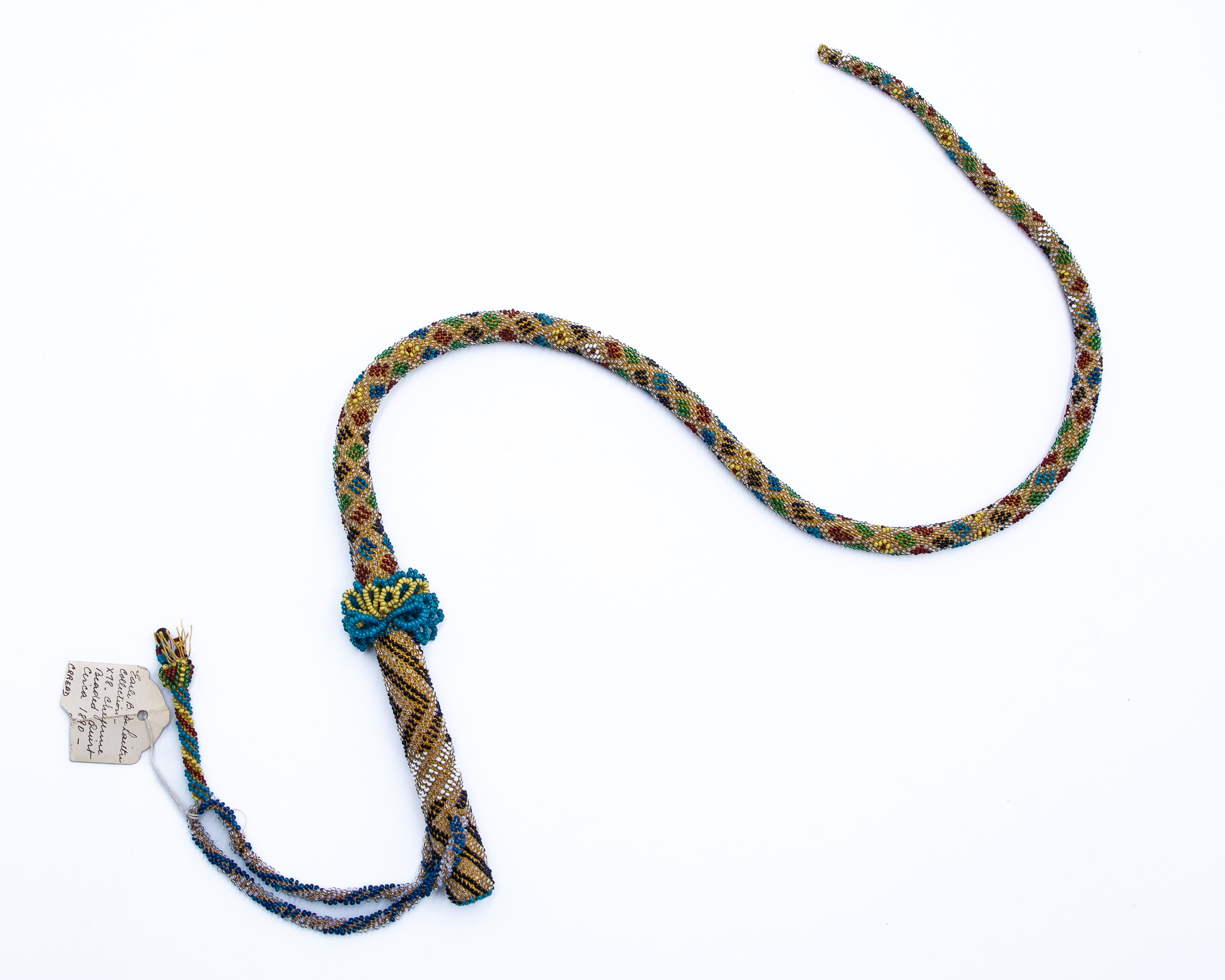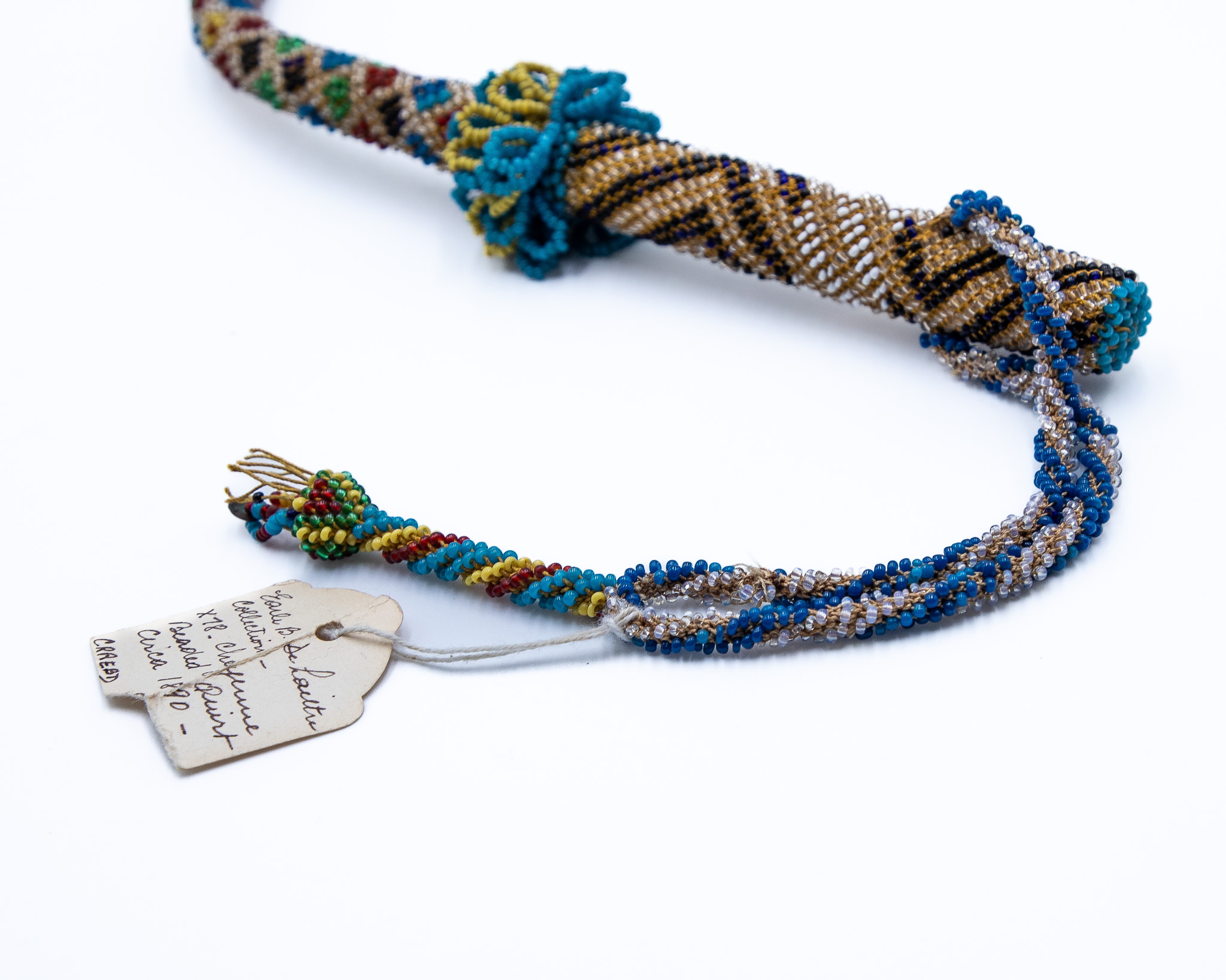 Antique Rare Cheyenne Micro Beaded Quirt Circa 1890-End of strap is frayed 35″ with handle