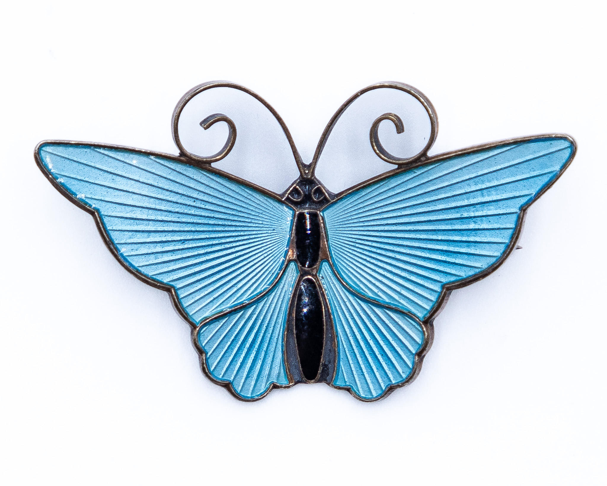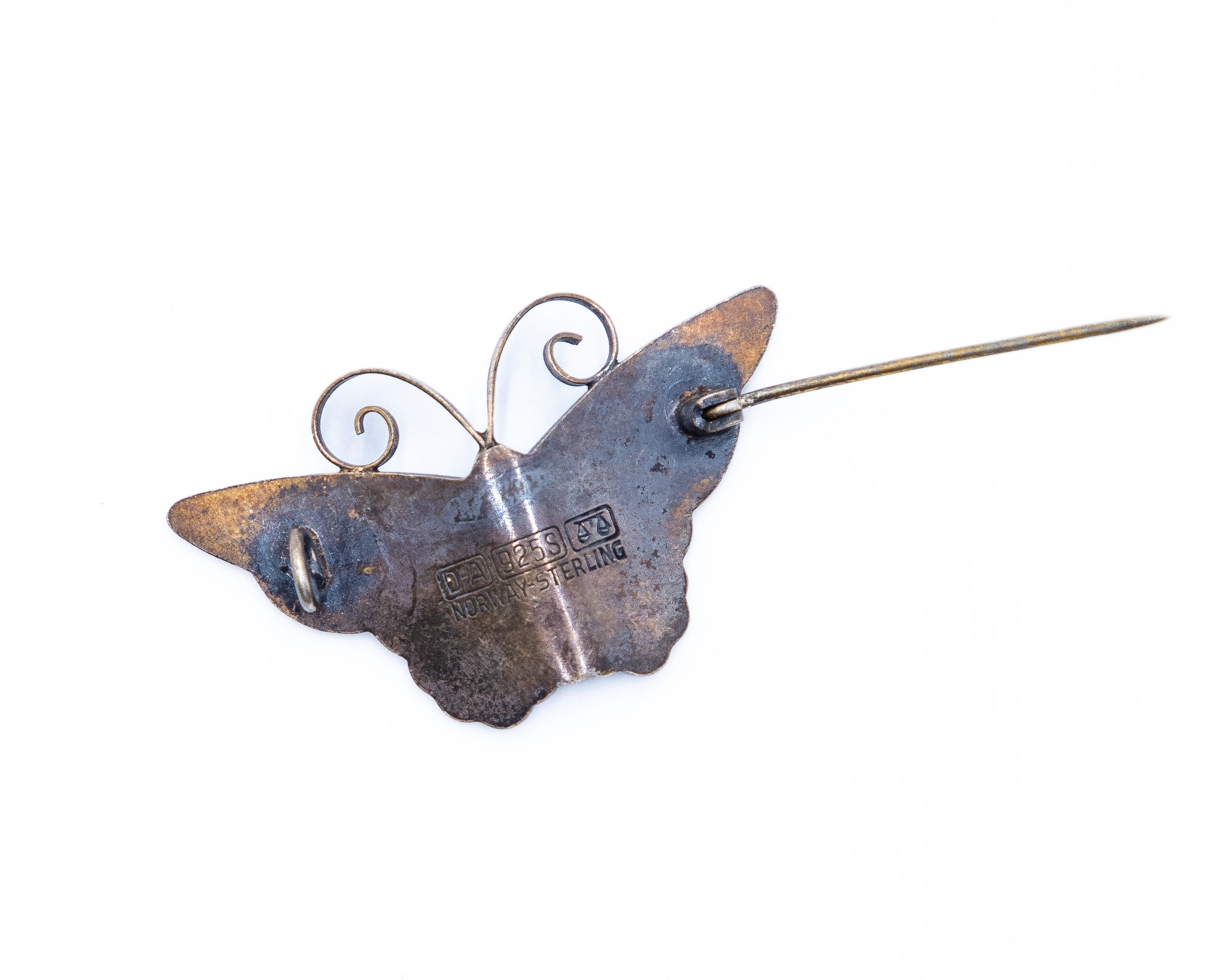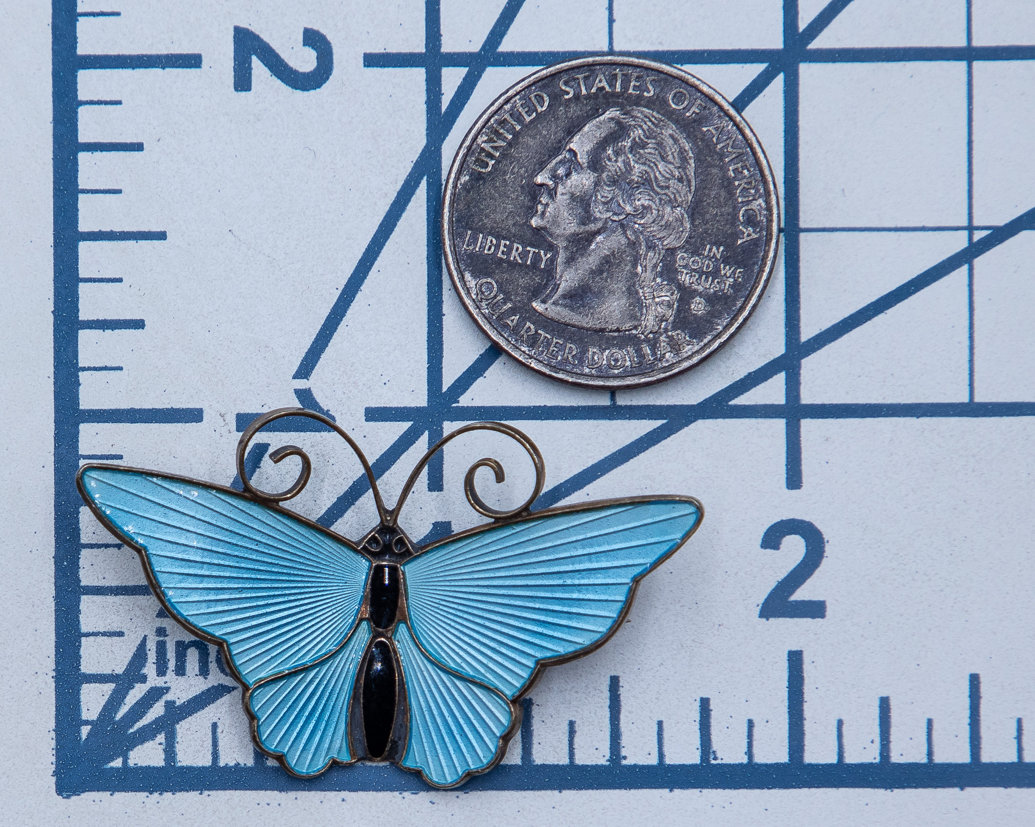 David Andersen Blue Enamel Sterling Leaf Vintage Butterfly 8g