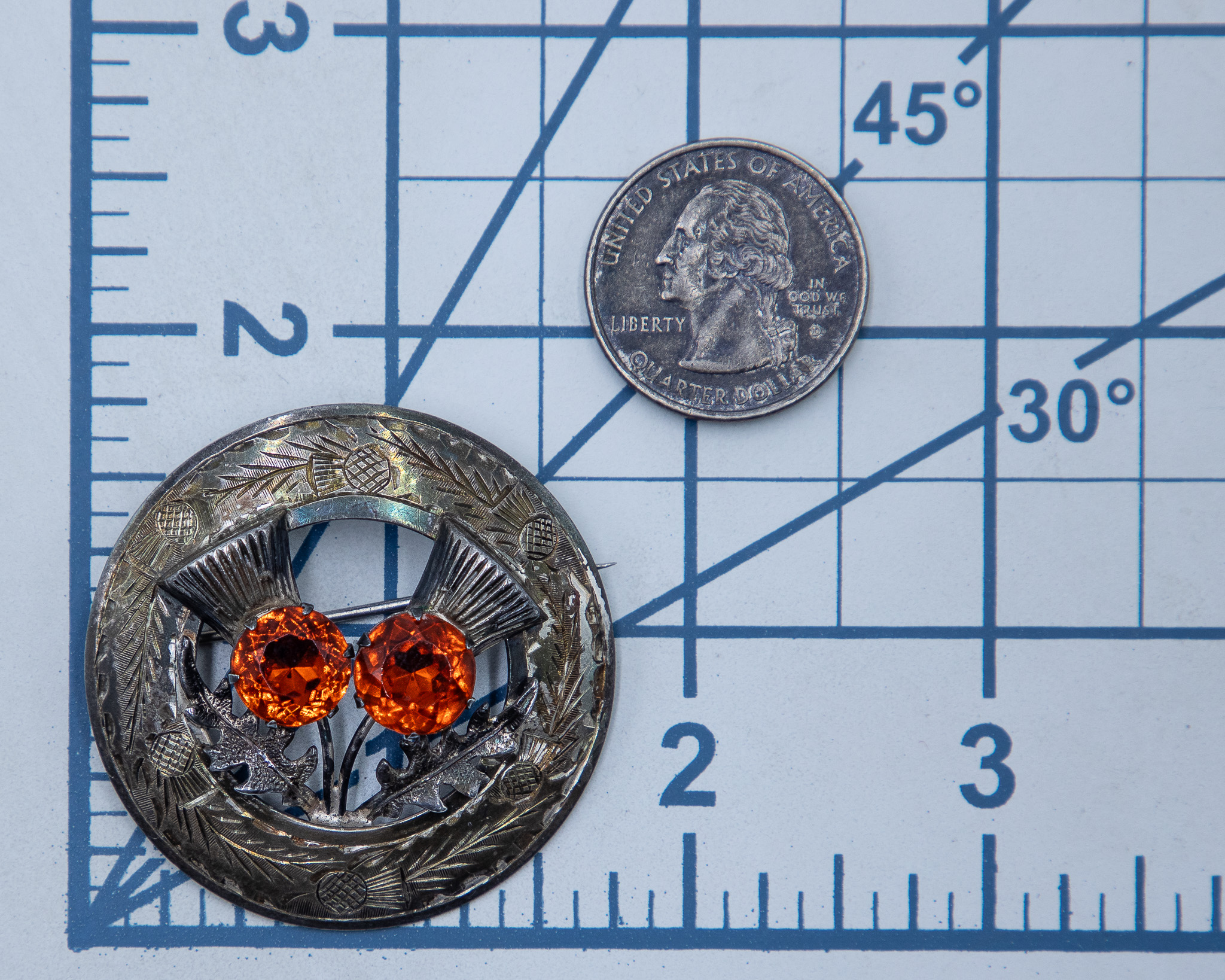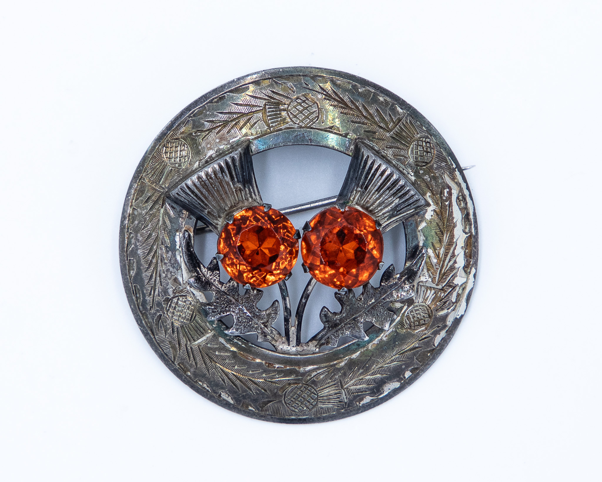 Antique Scottish Orange Rhinestone Pin