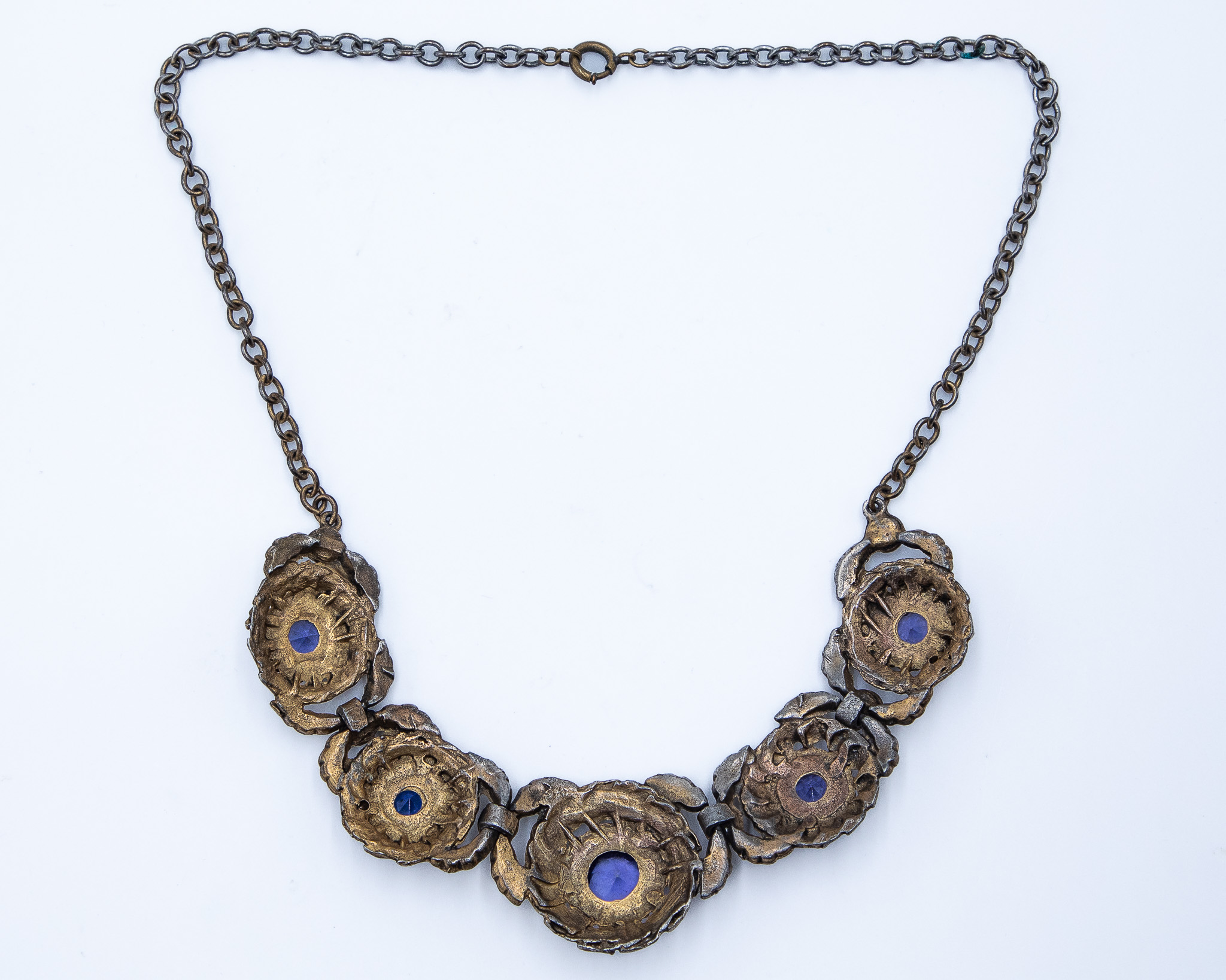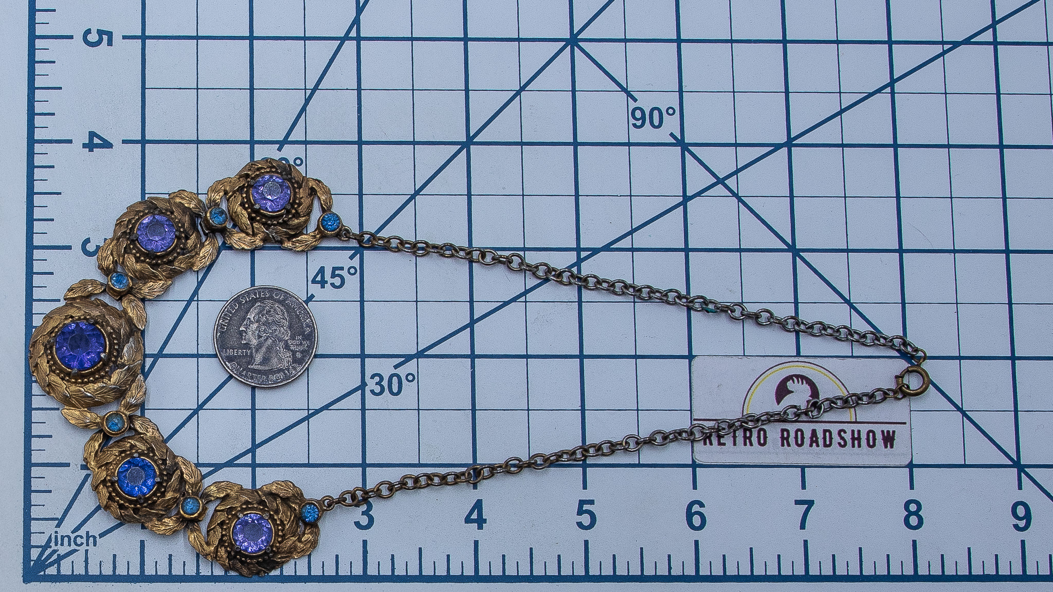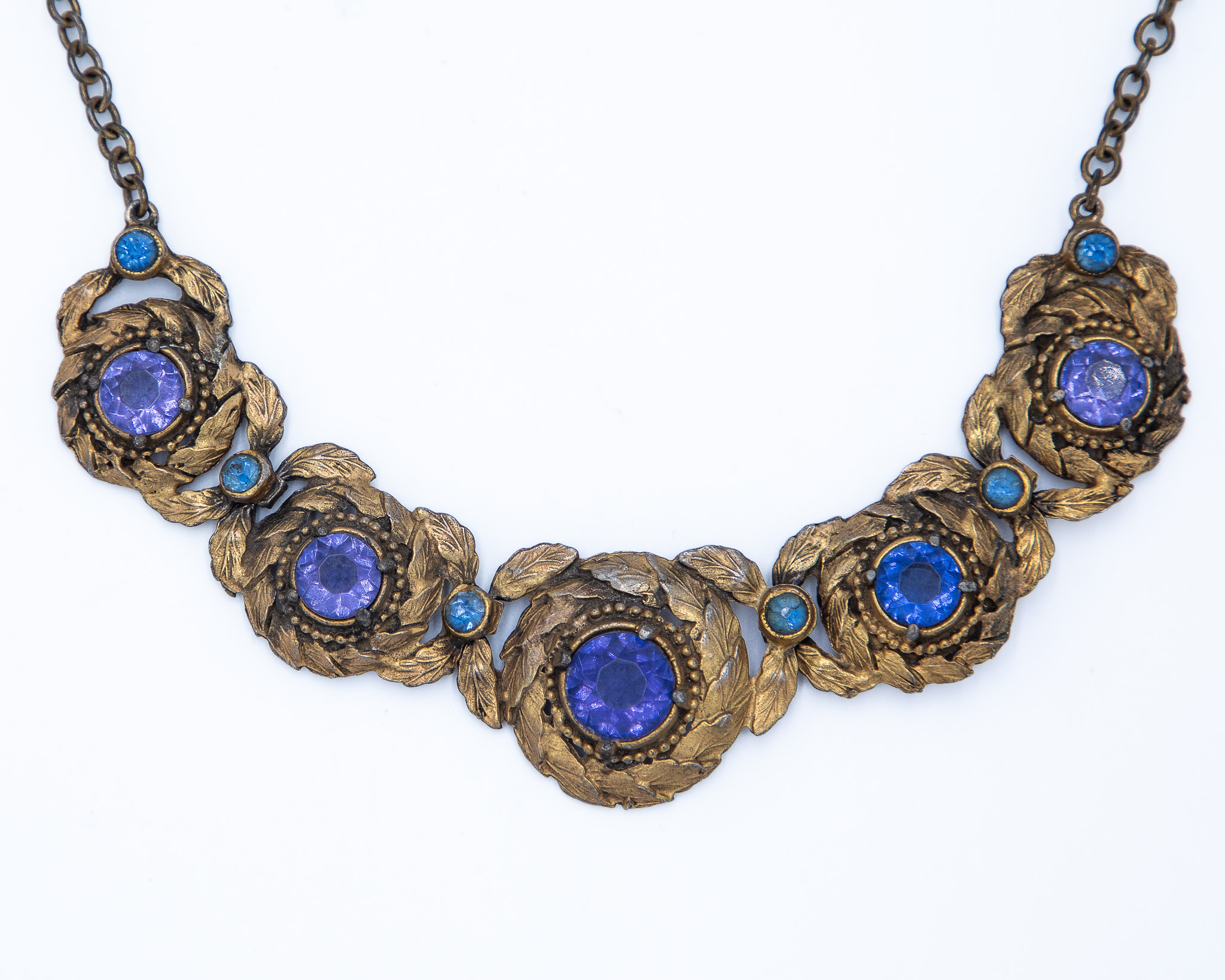 Czech Nouveau Blue Purple Rhinestone Necklace