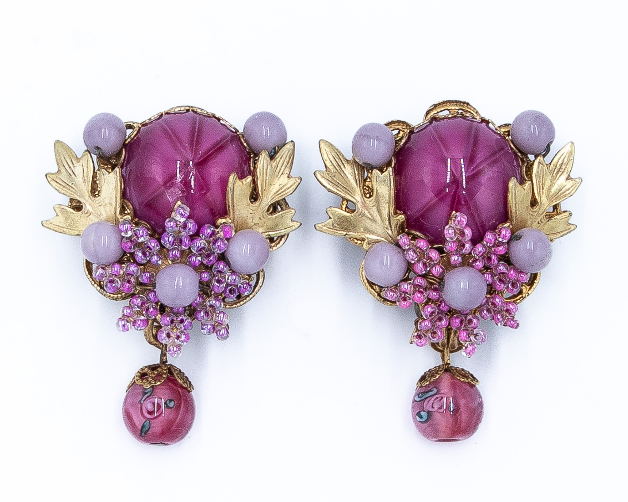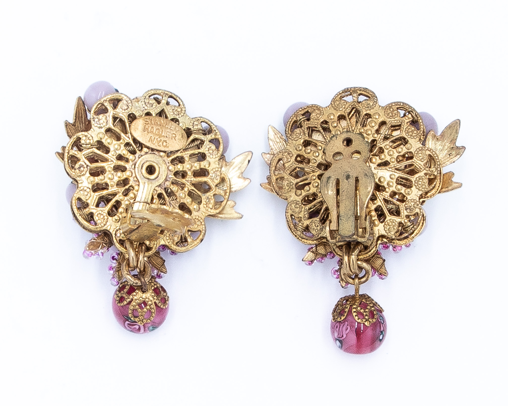 Stanley Hagler NYC Purple Pink Immaculate Vintage Condition Floral Earrings
