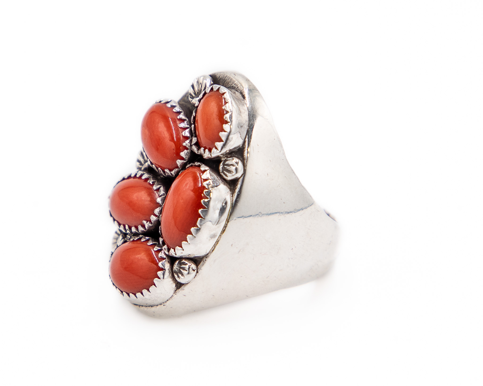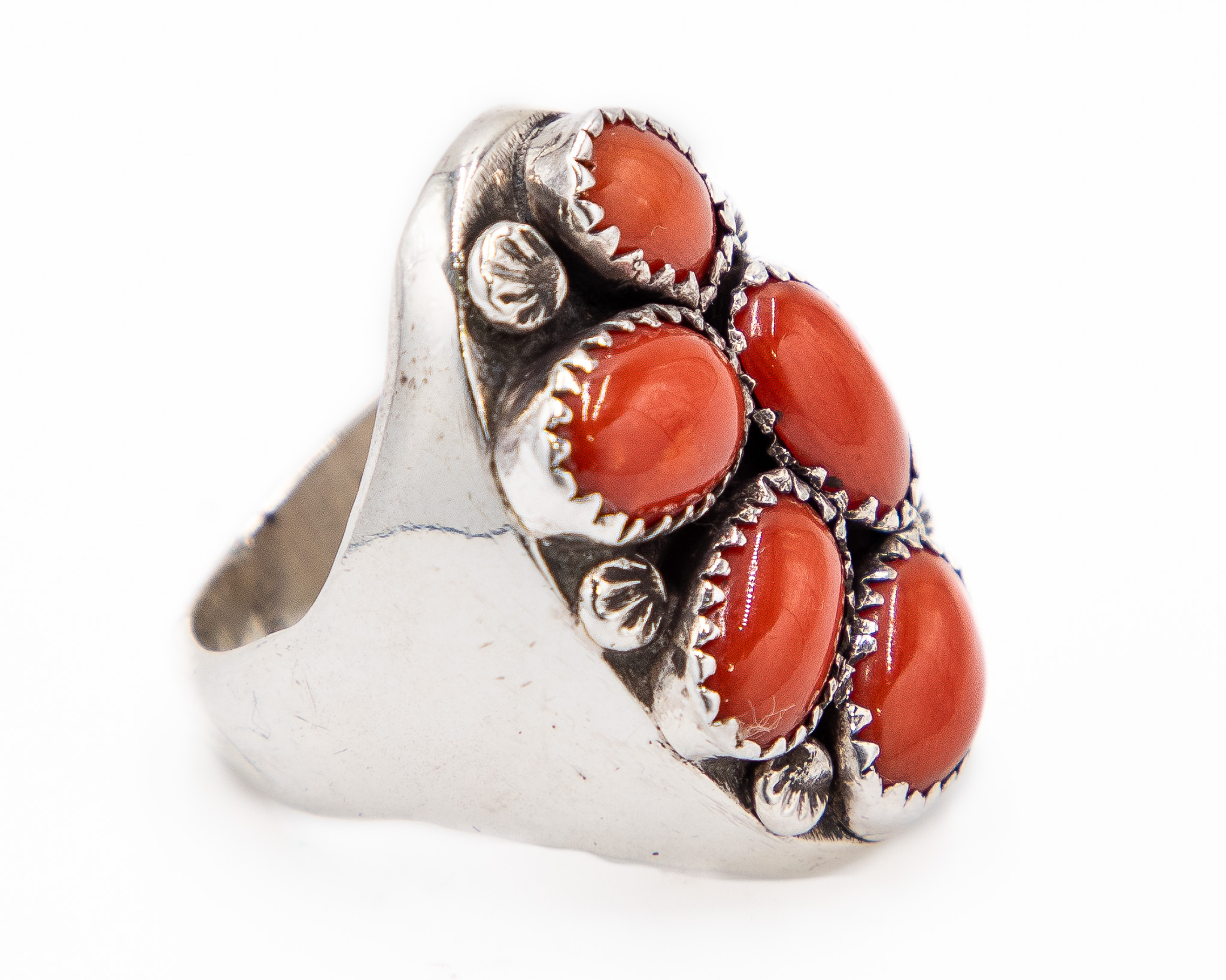Vintage Navajo Mediterranean Coral Mens Ring Sz. 9.25, 24g-Cleaned, unsigned, but vintage