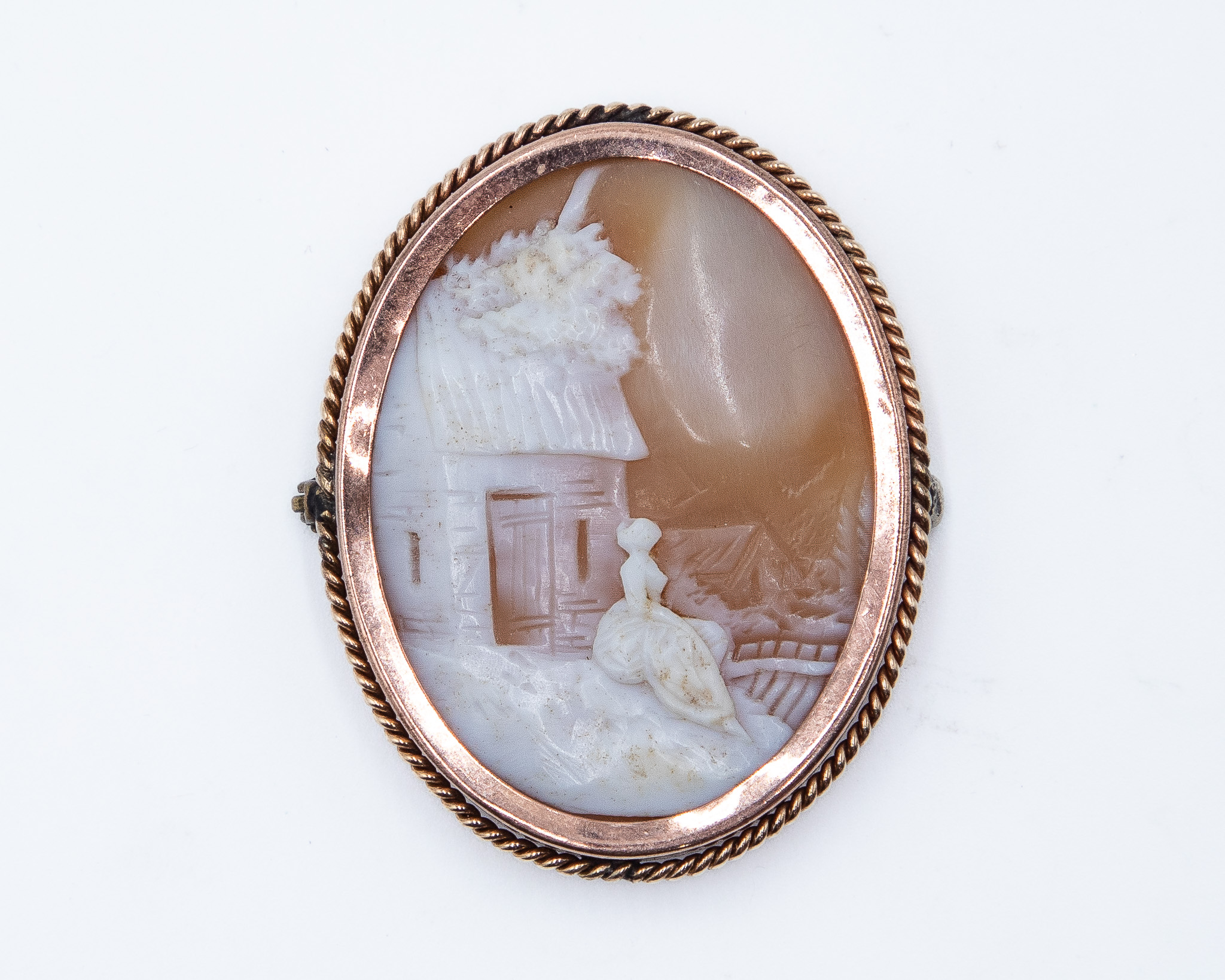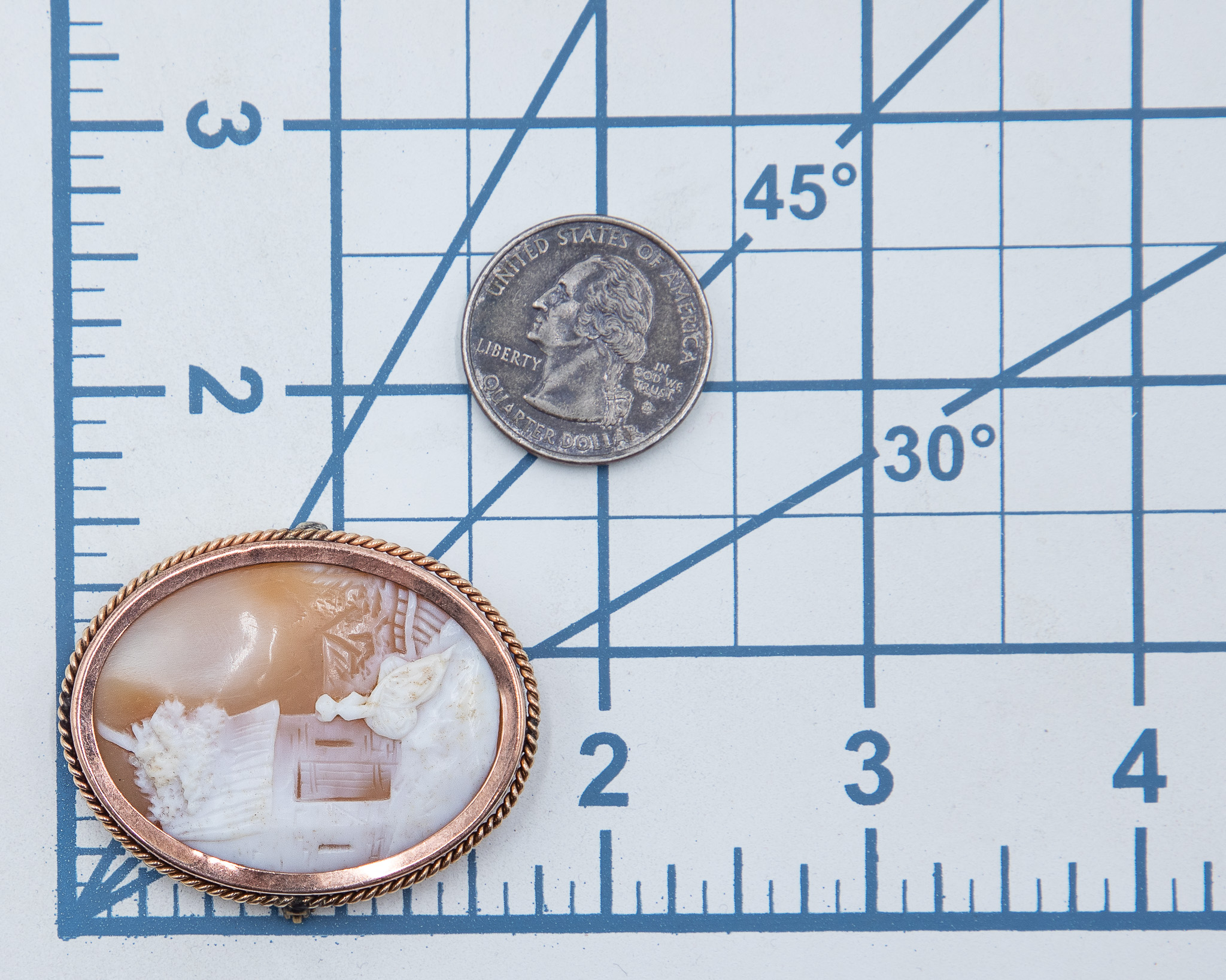 Victorian 10K Gold Plus Carved Shell Cameo Brooch Pendant 10.3g