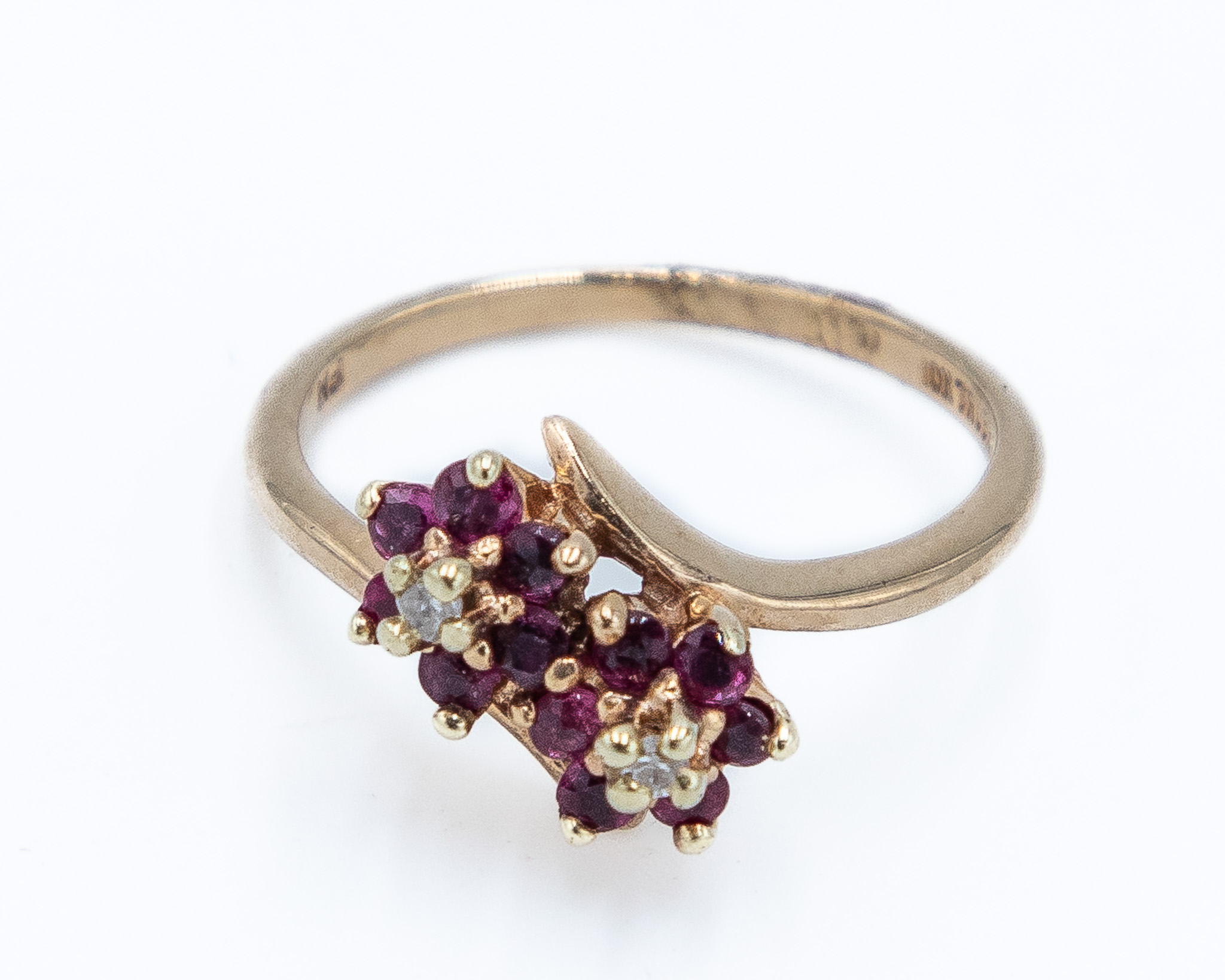 Diamond Ruby 10K Gold Cocktail Ring Sz. 6, 2.9g