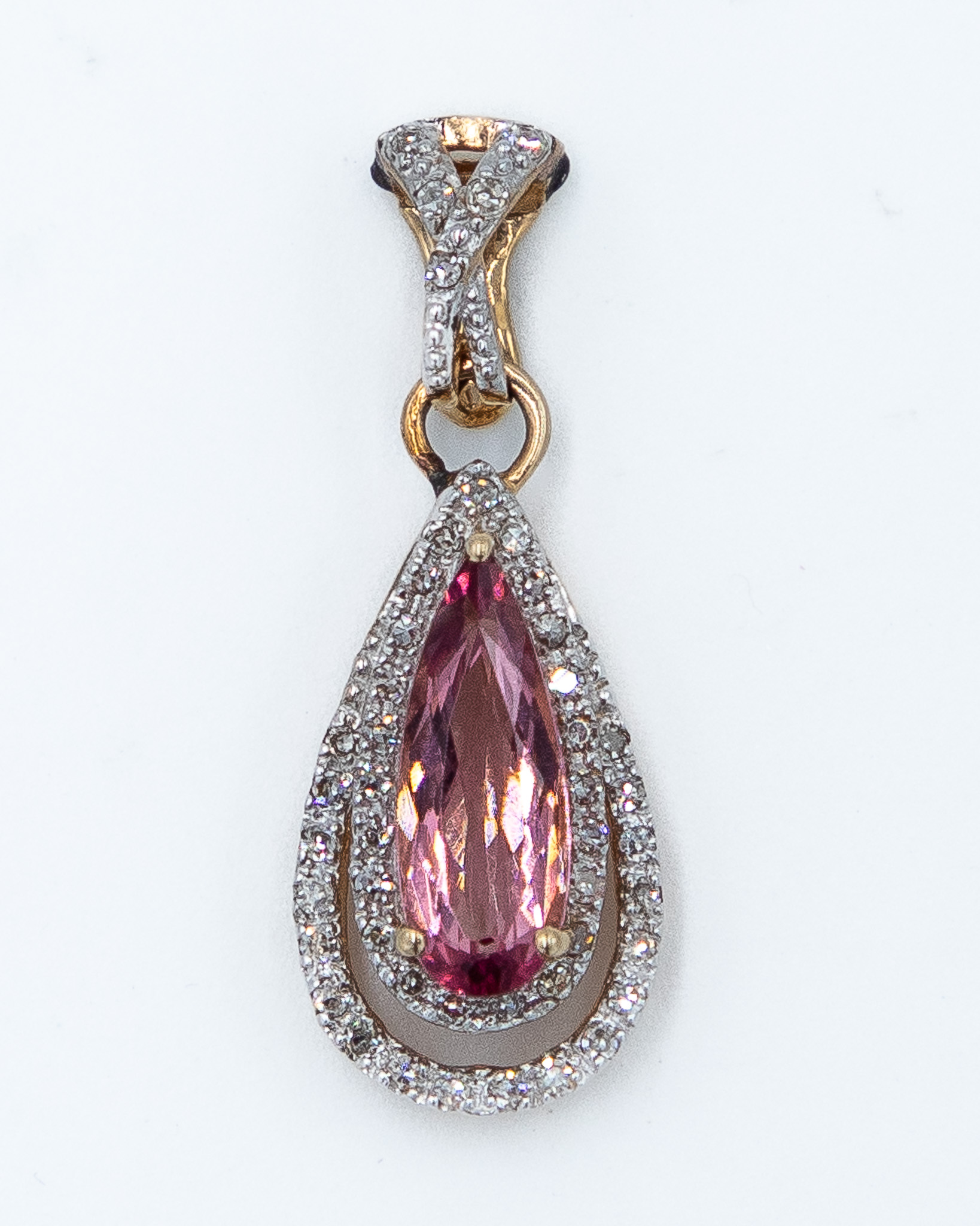 Pink Topaz White Sapphire 14K Gold Pendant 2g