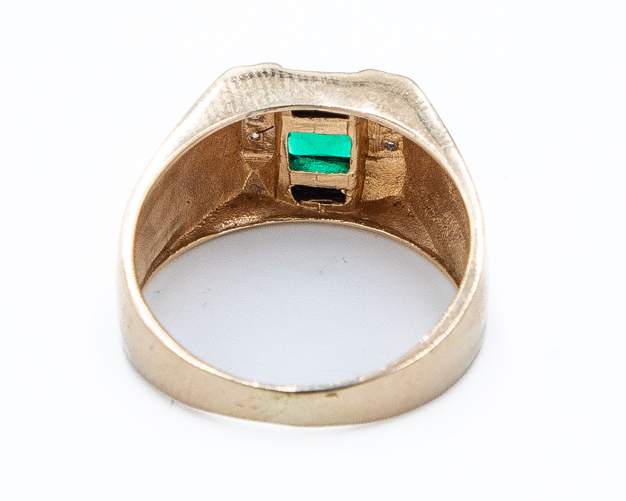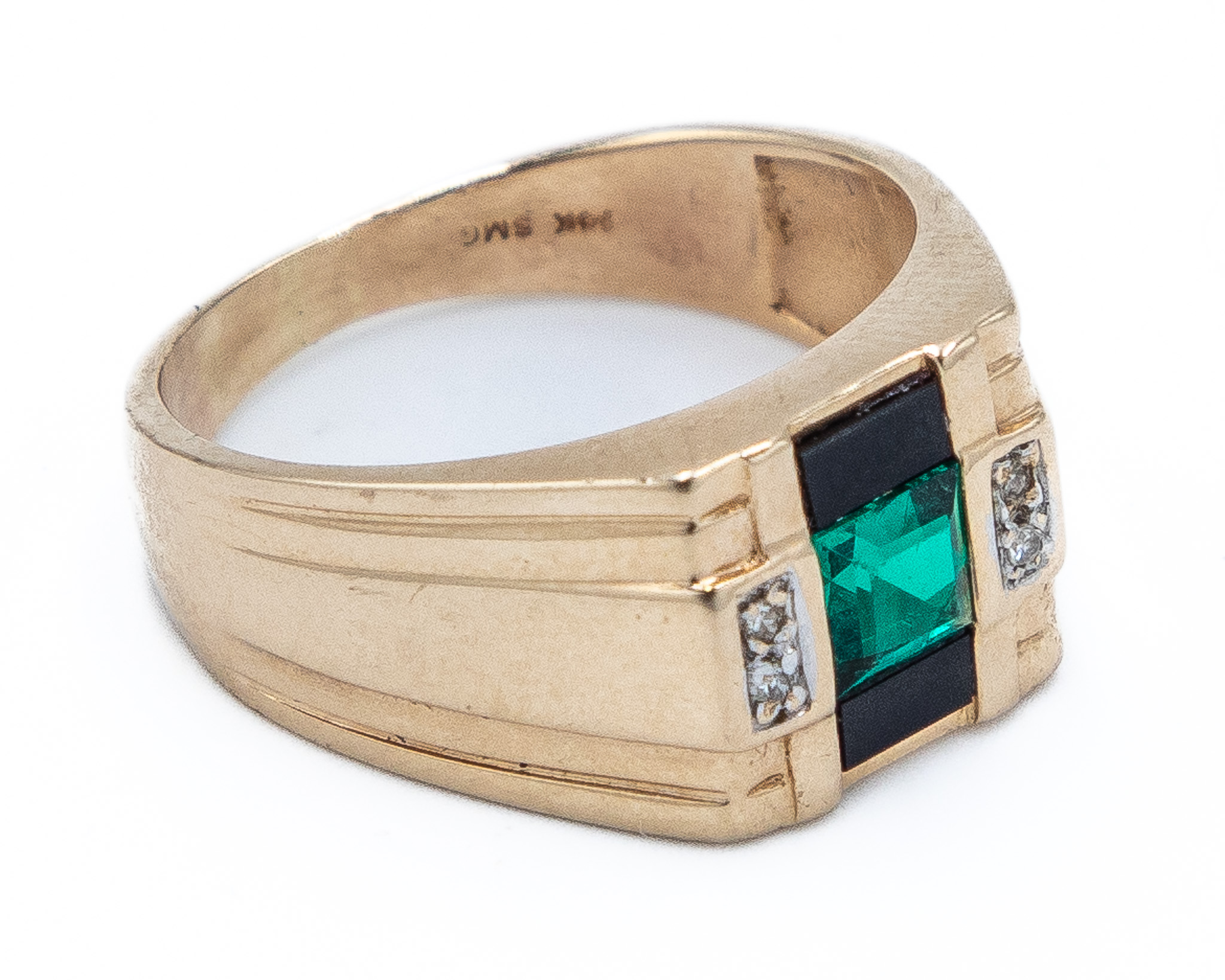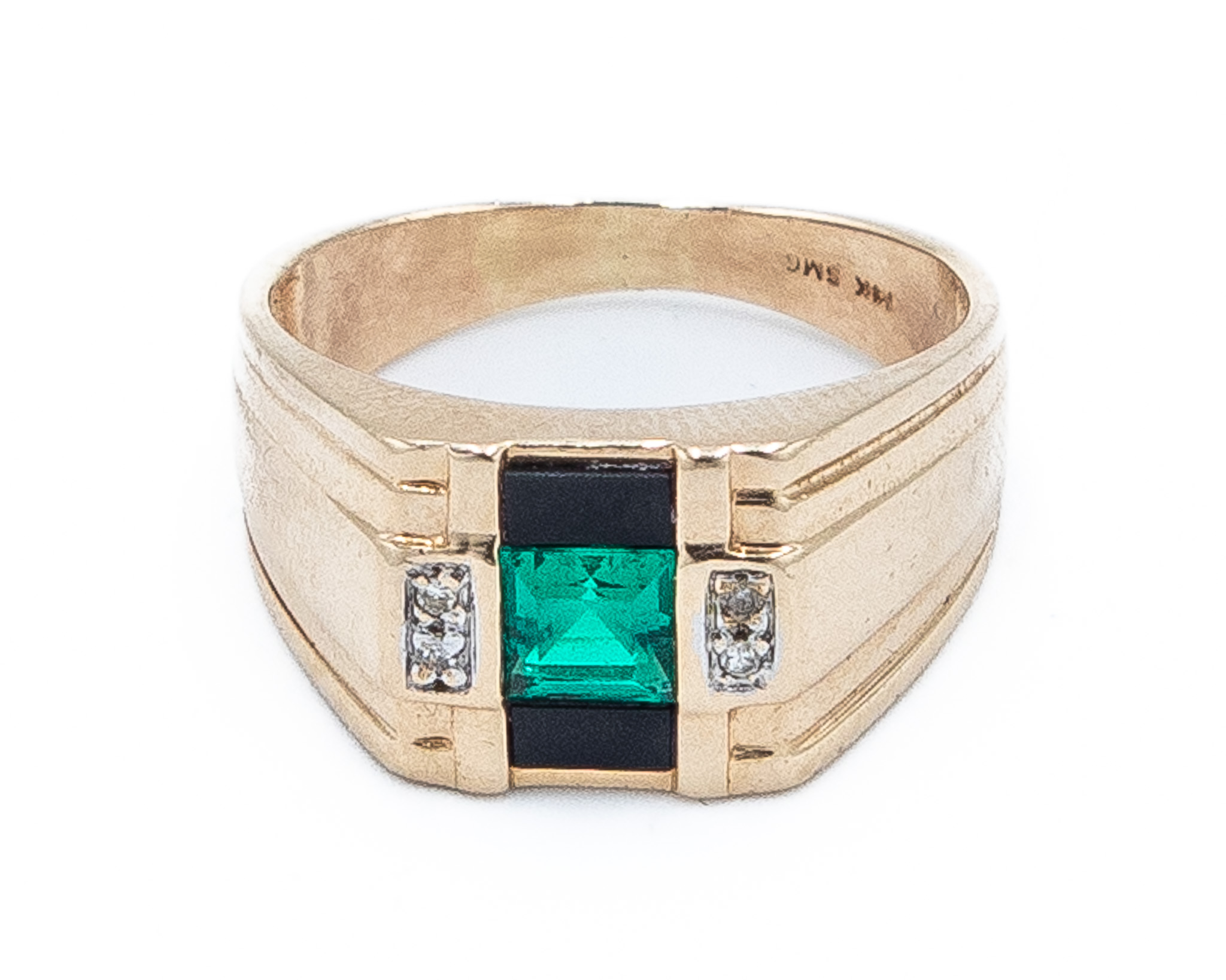 SMG 14K Gold Emerald Diamond Onyx Ring Sz. 10, 6.5g