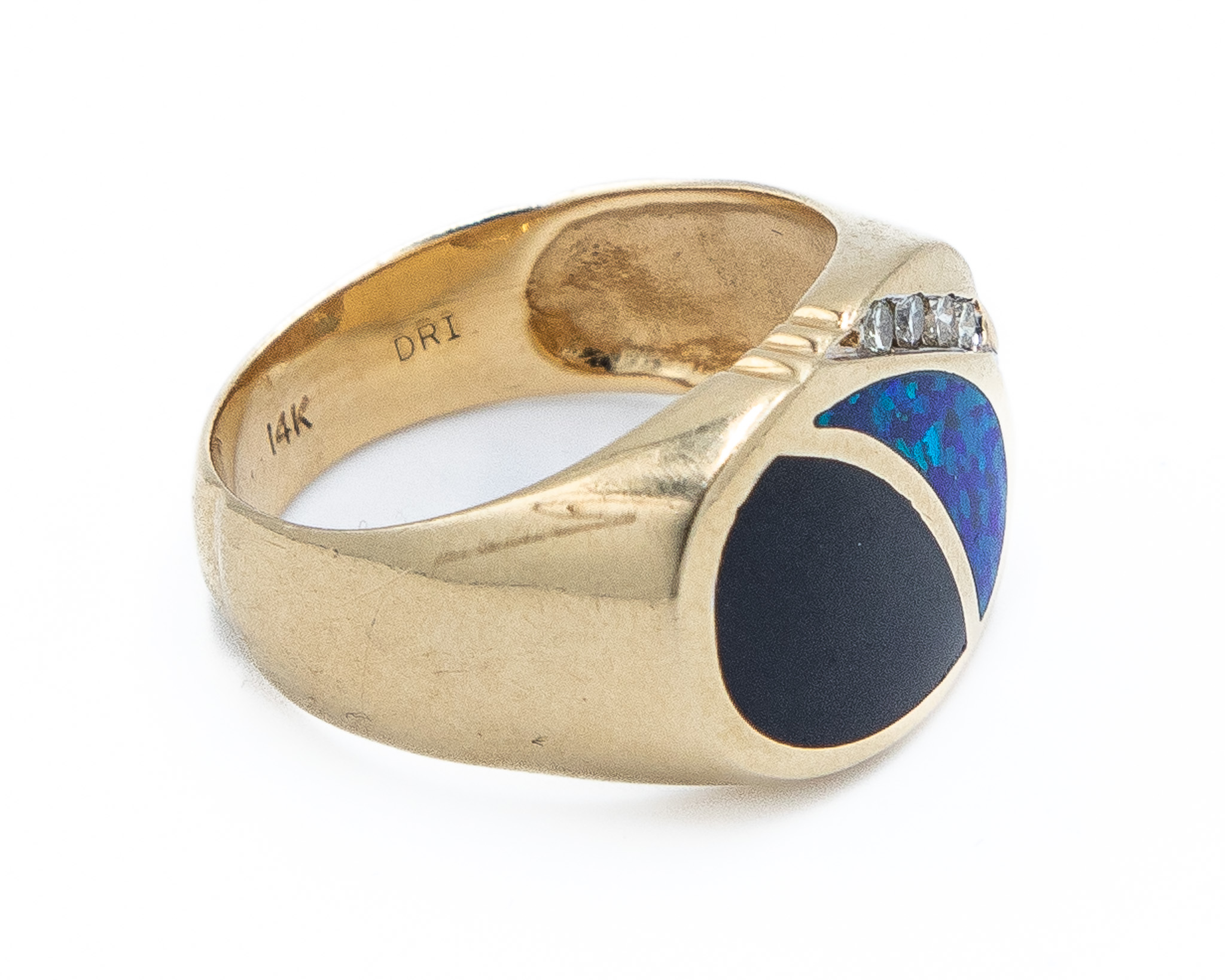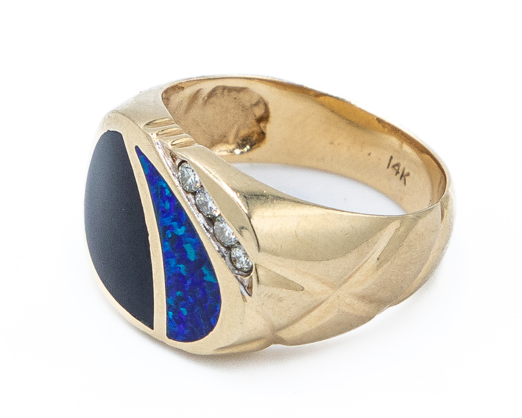 DRI 14K Gold Diamond Opal Onyx Ring Sz. 10, 10g