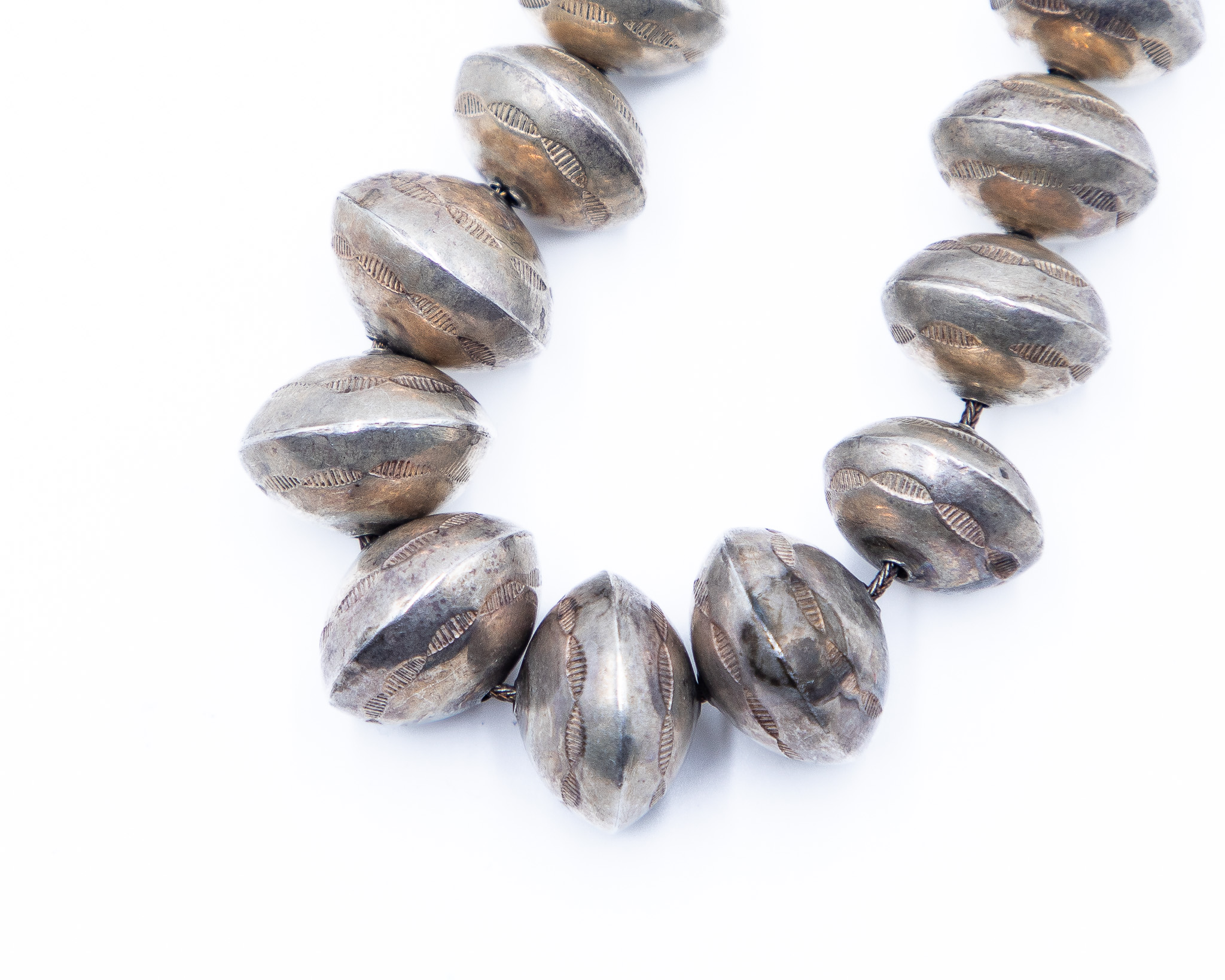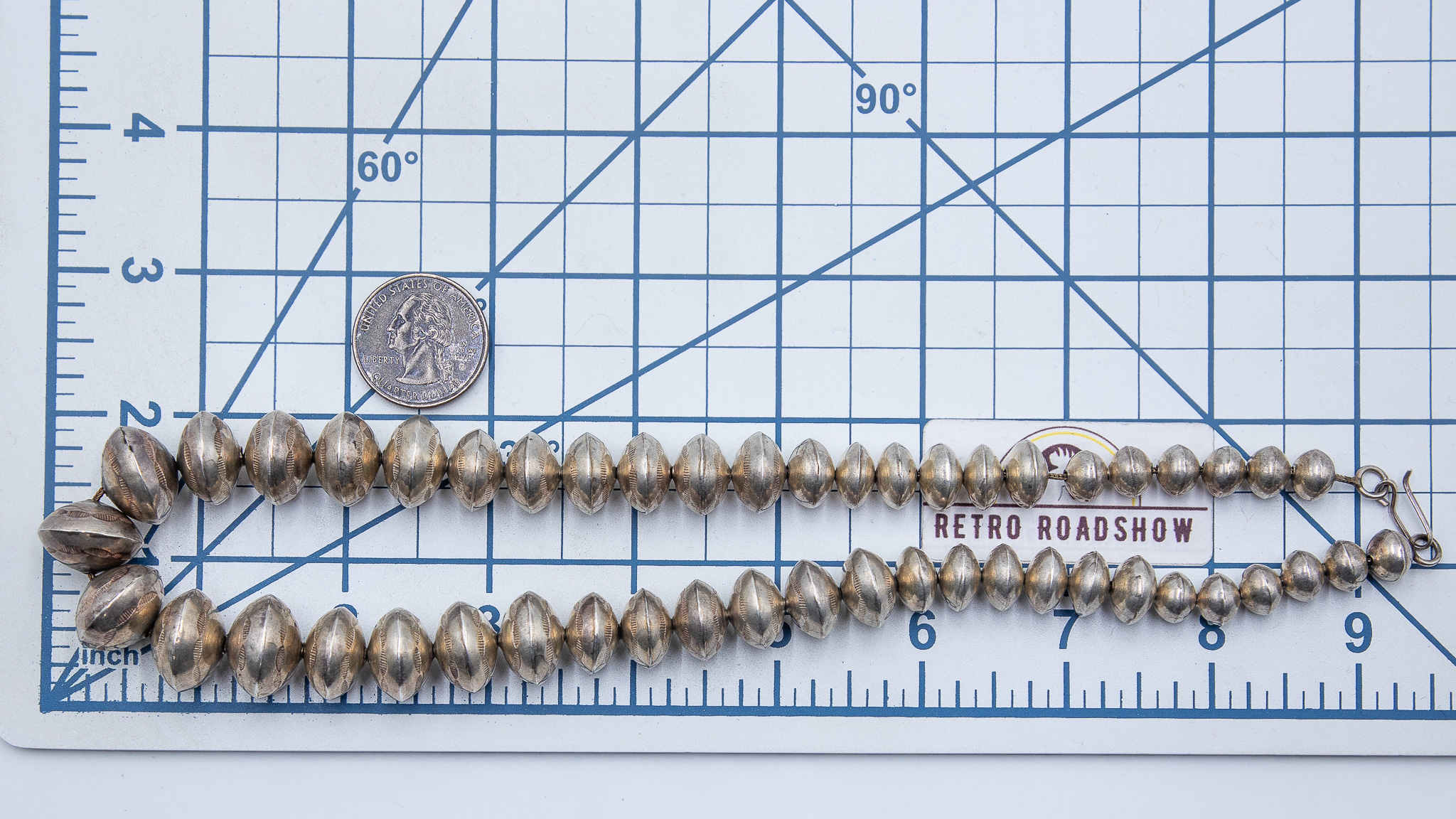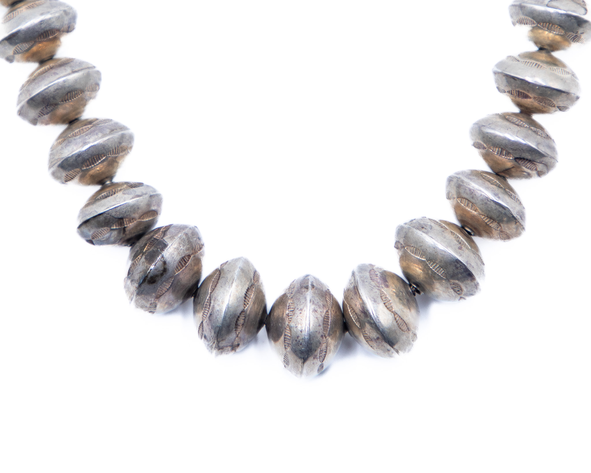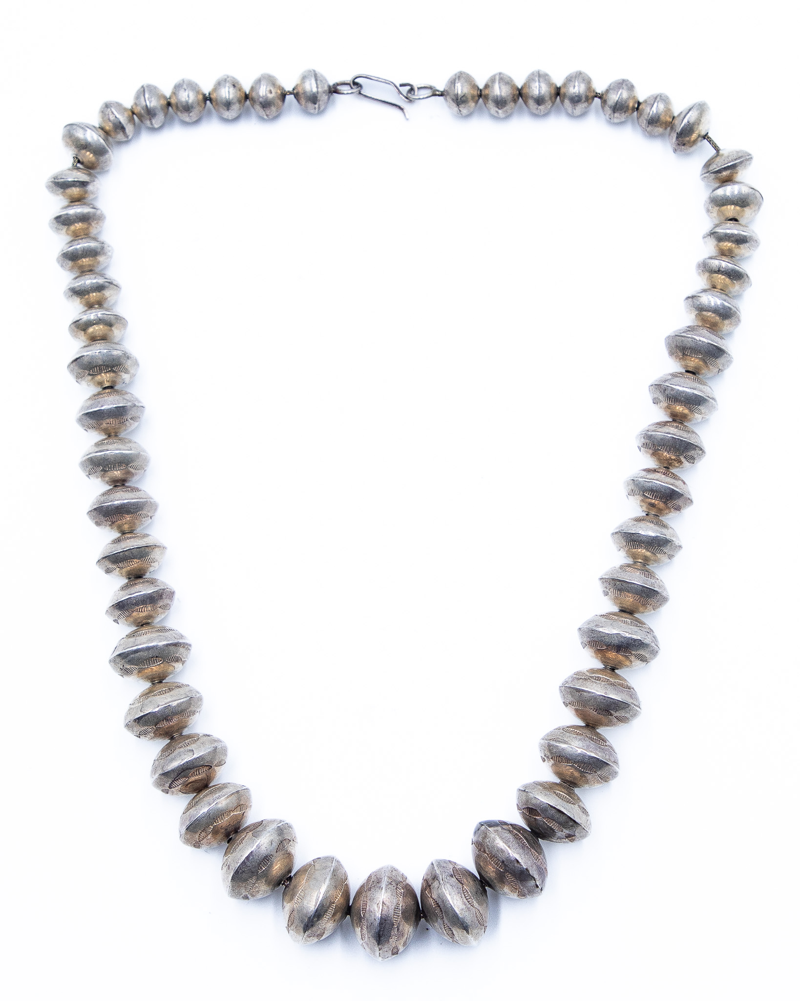 Vintage Graduated Navajo Pearls, Handmade and stamped 86g