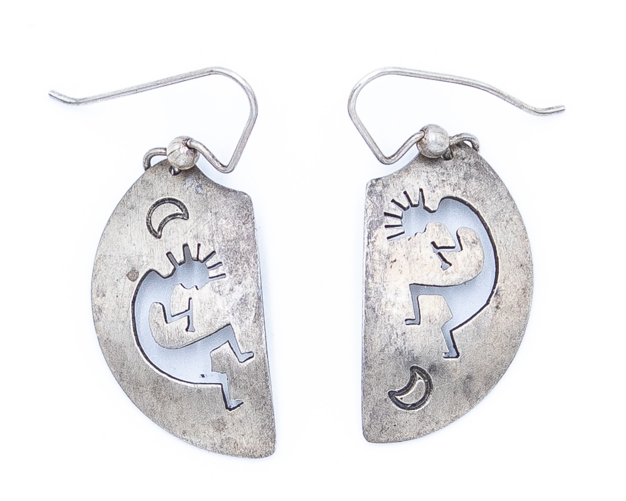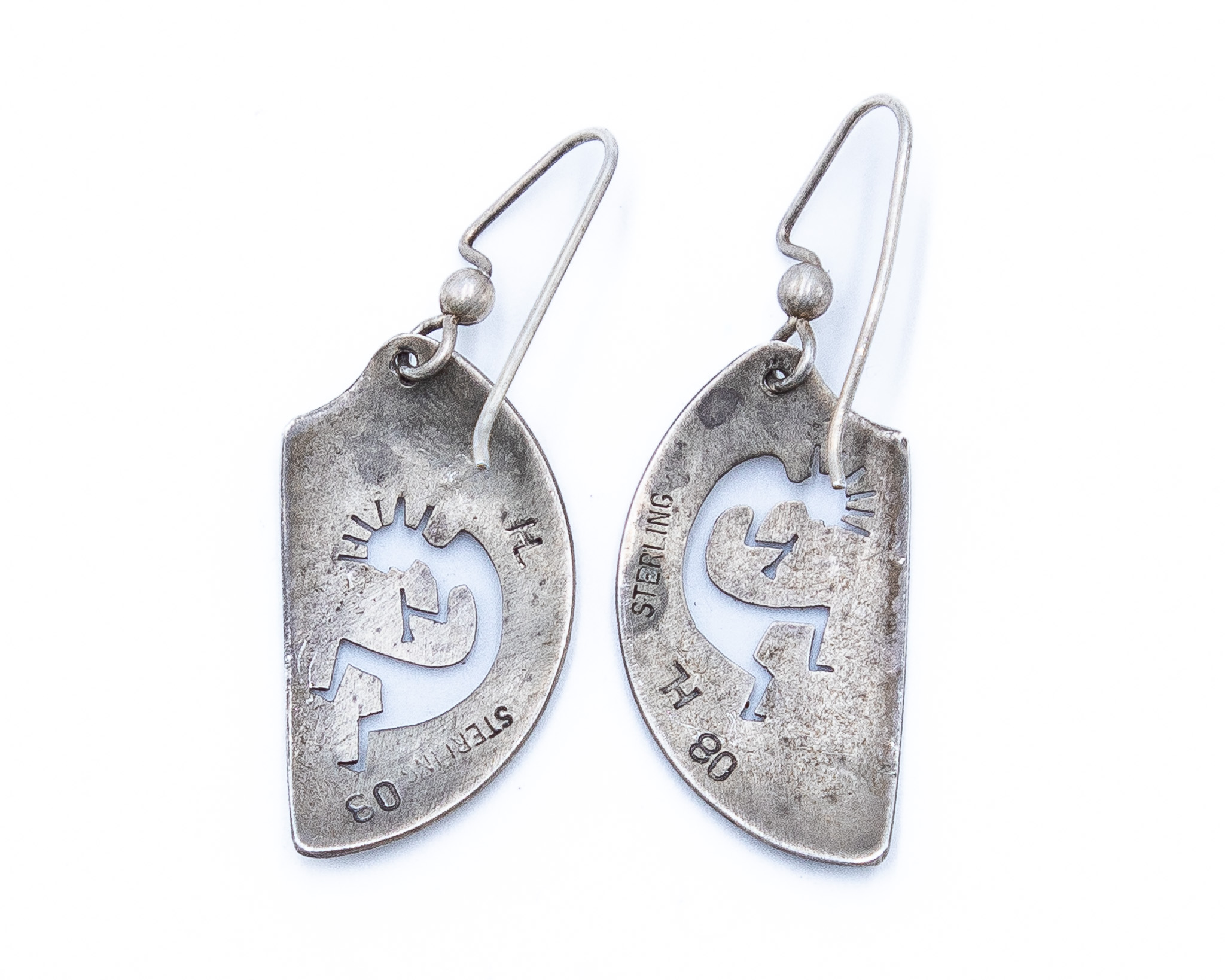 Herman Lee Sterling Kokopelli Dangle Earrings 6g-08 stamp