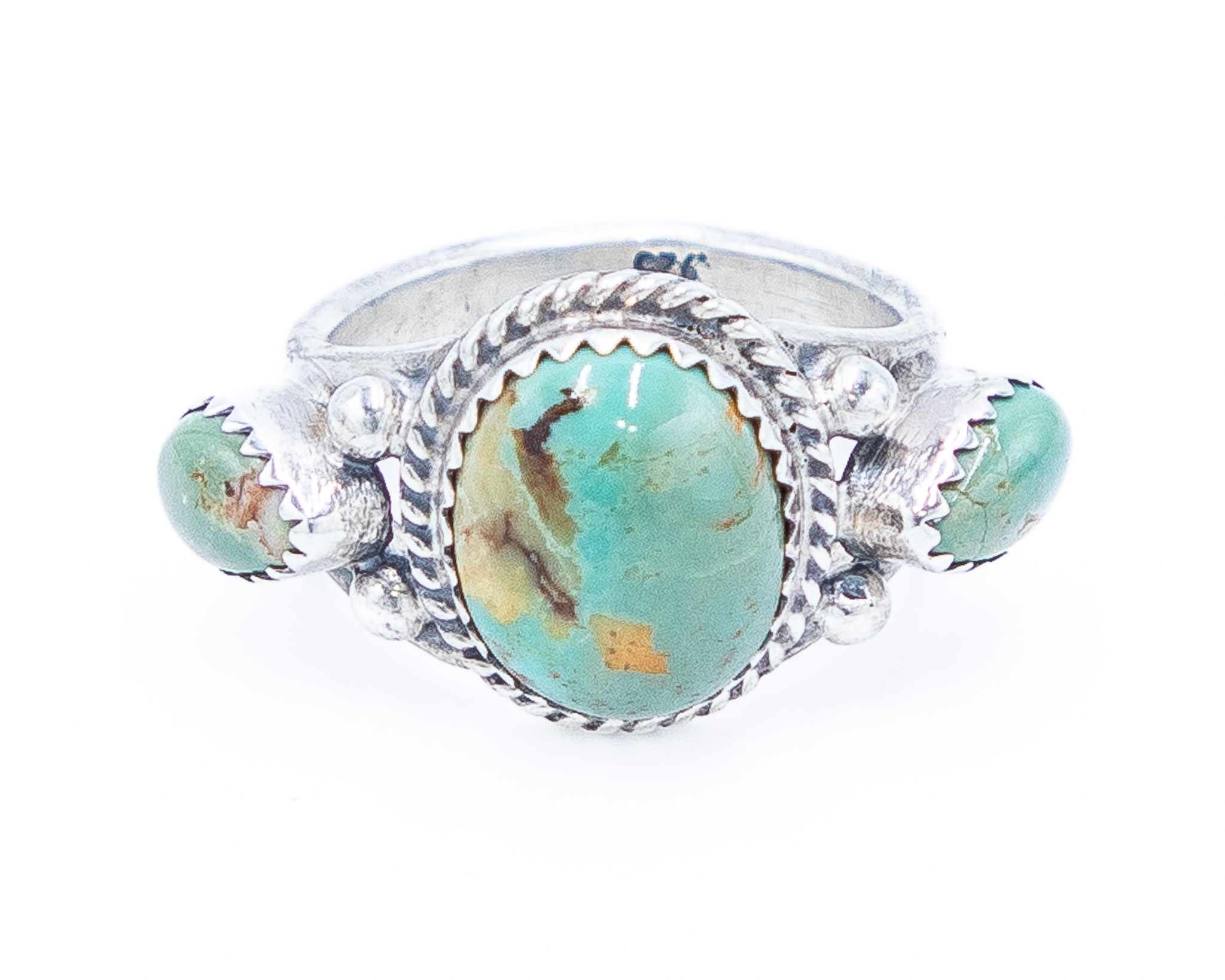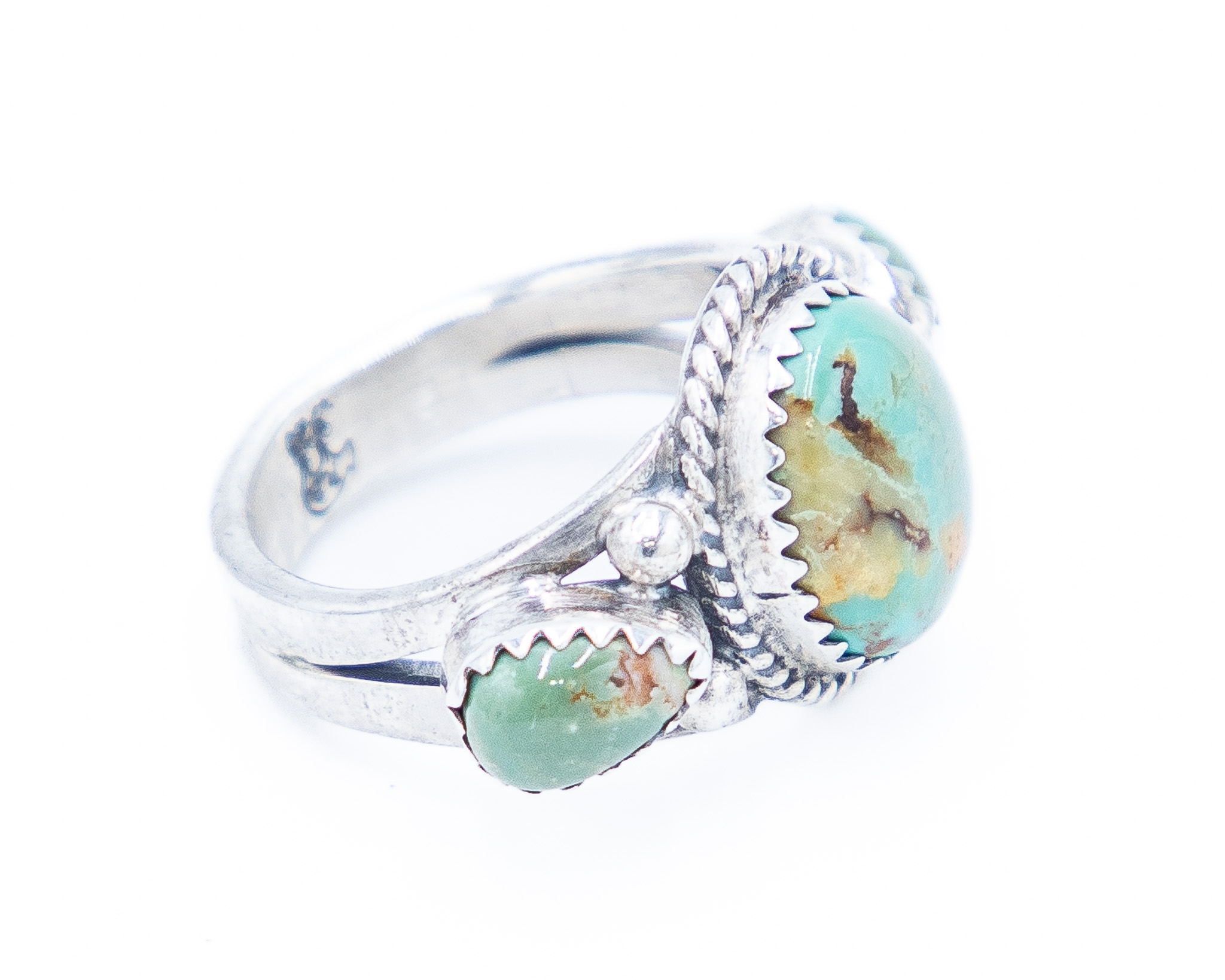 Running Bear Sterling Green Turquoise Ring Sz. 7, 8g