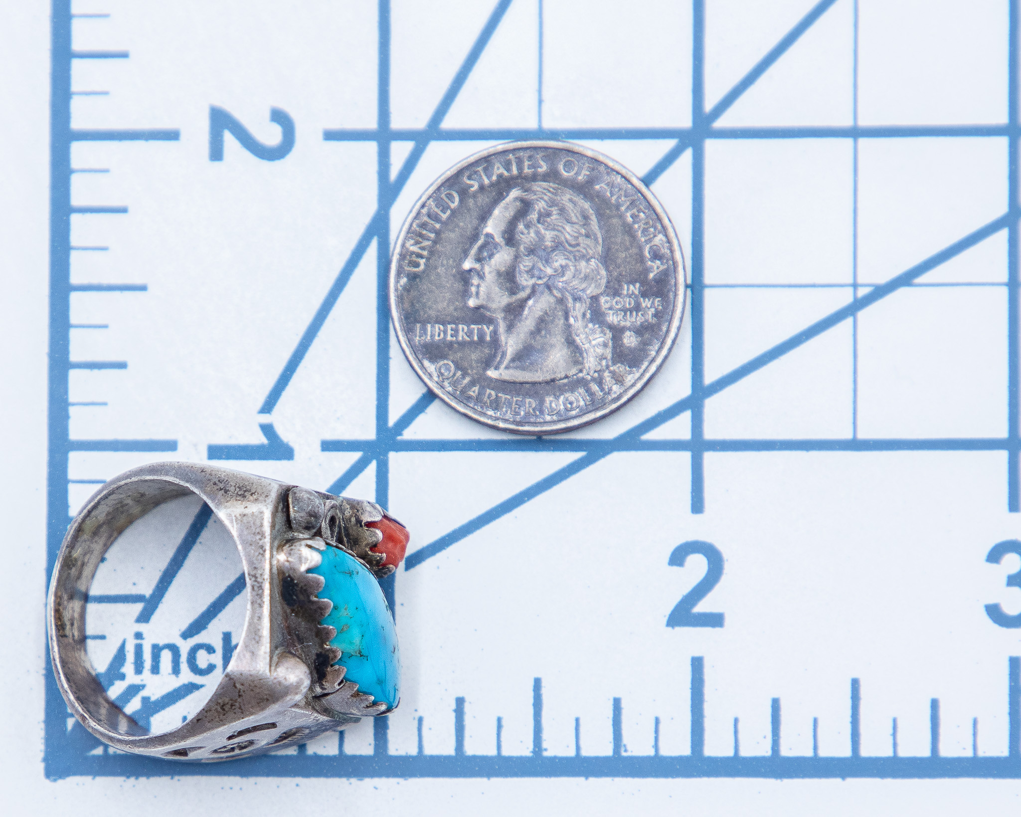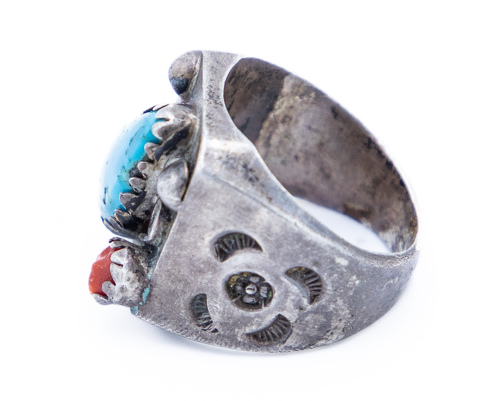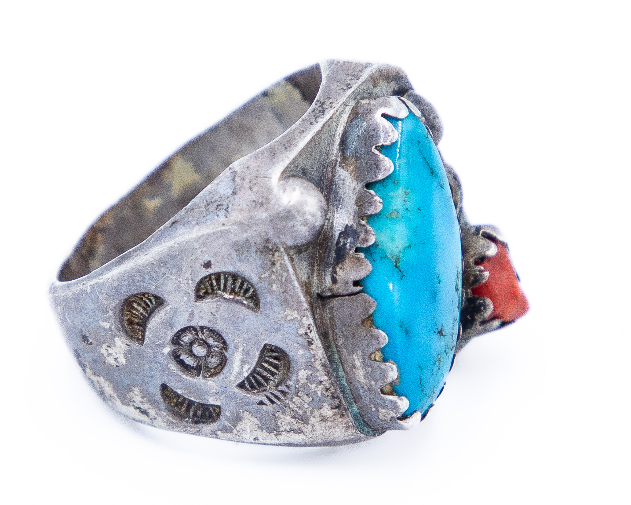 Old Navajo Turquoise Coral Ring Sz. 10.25, 23g