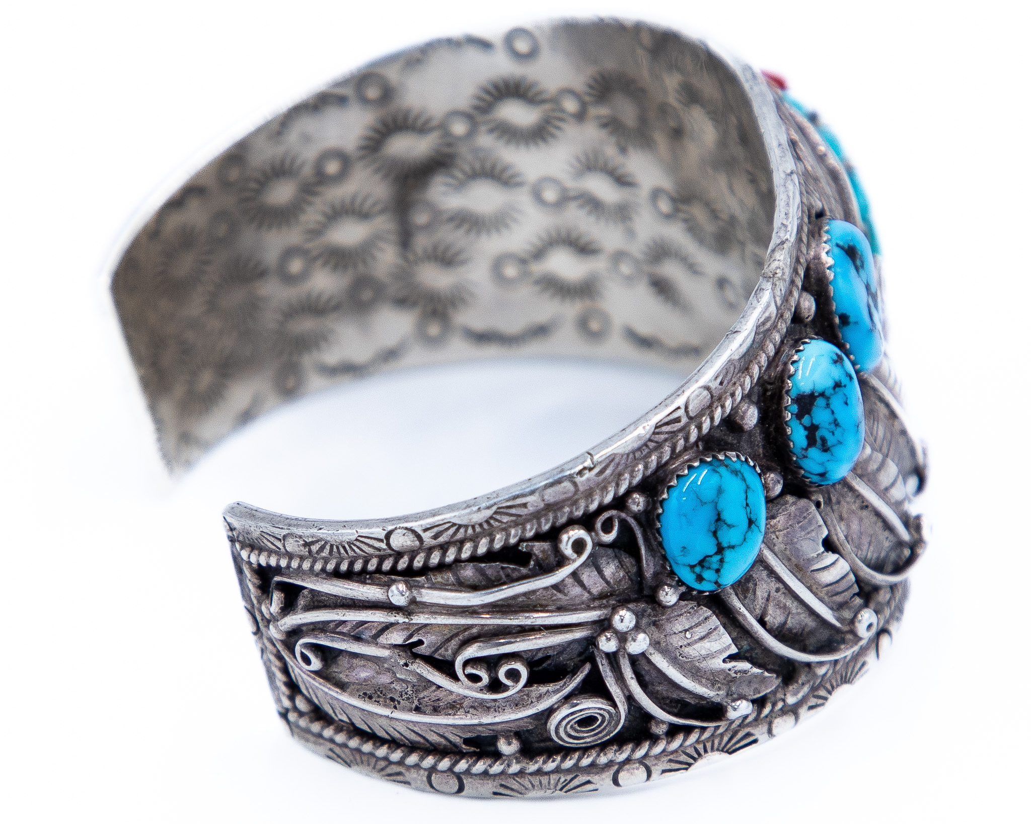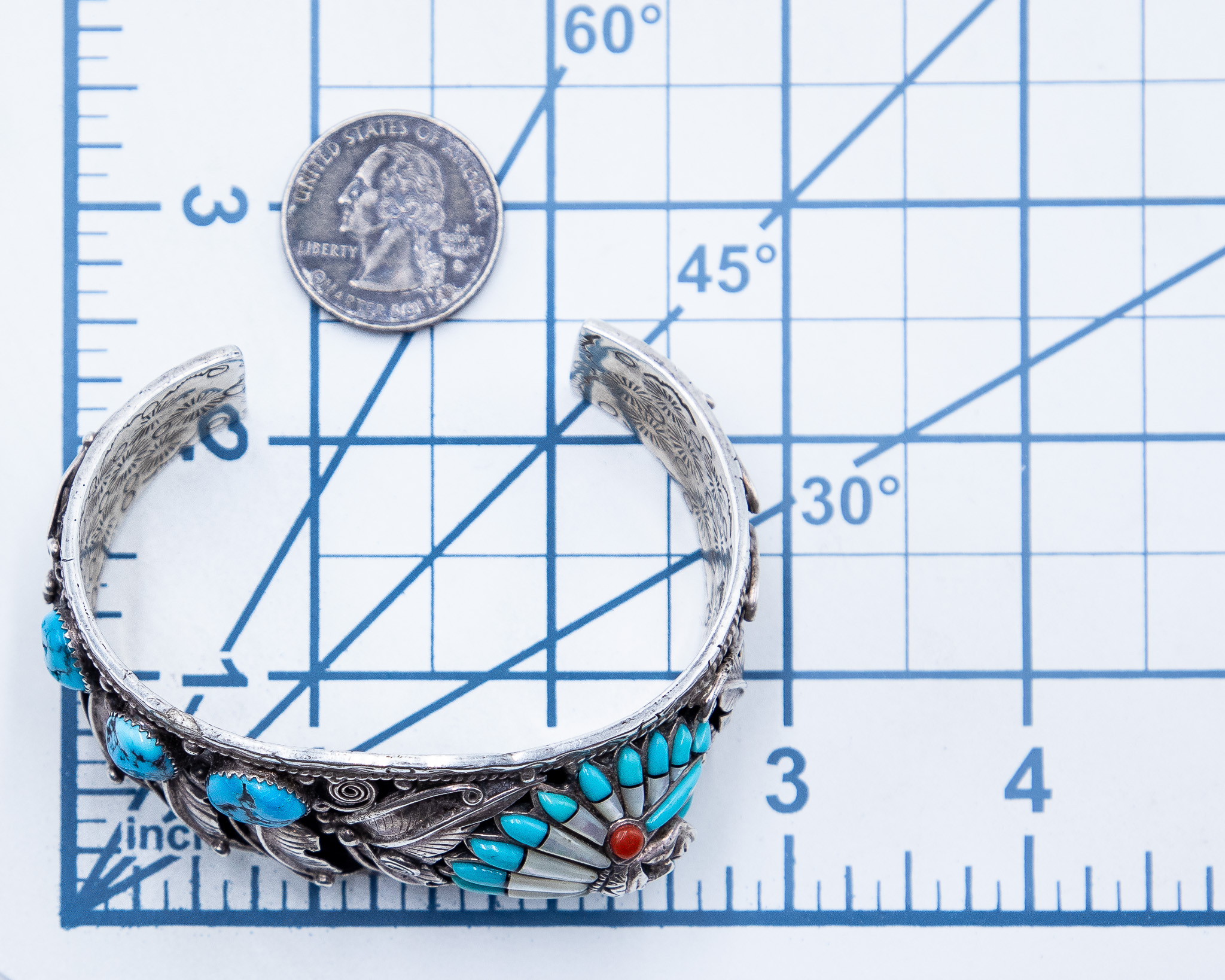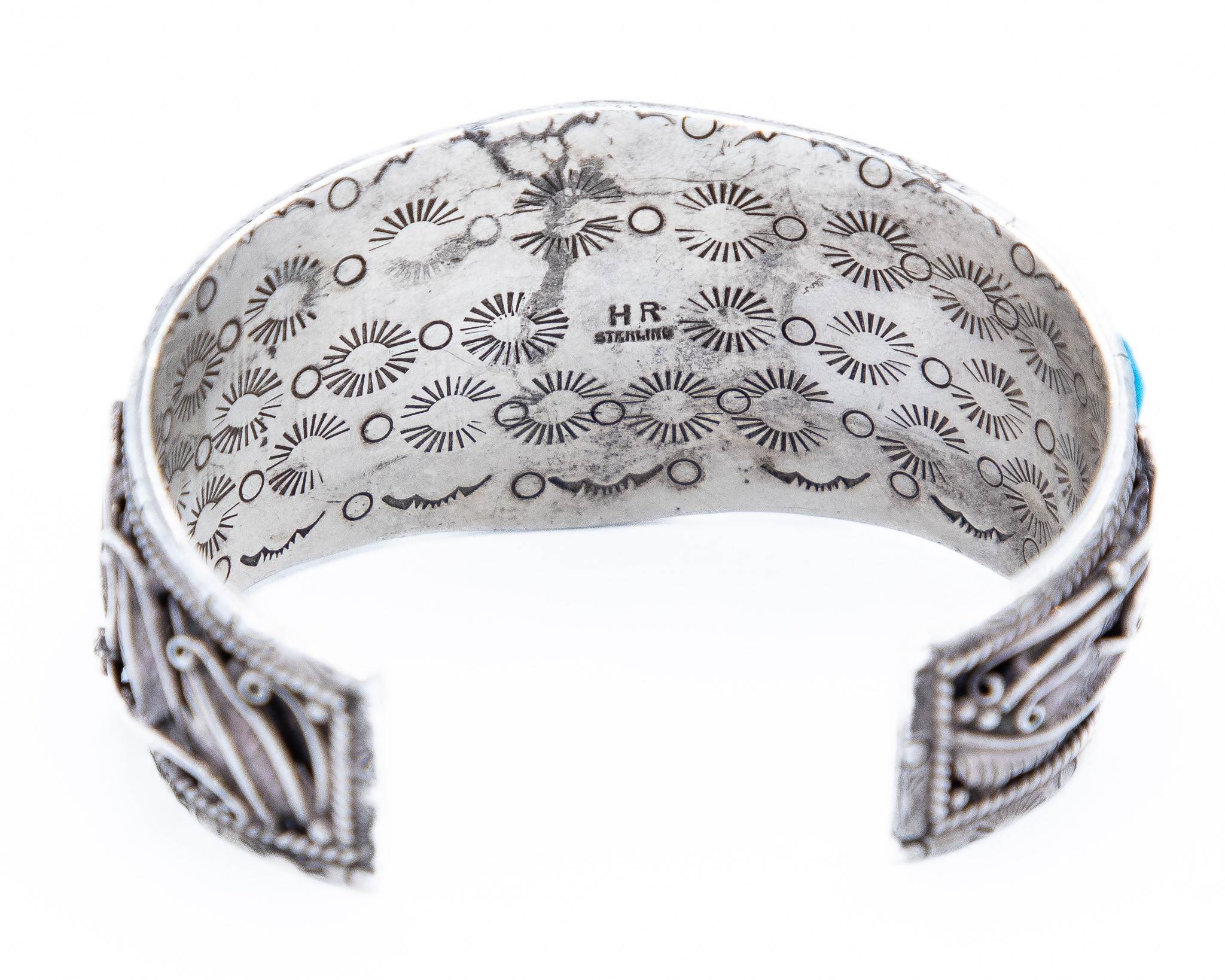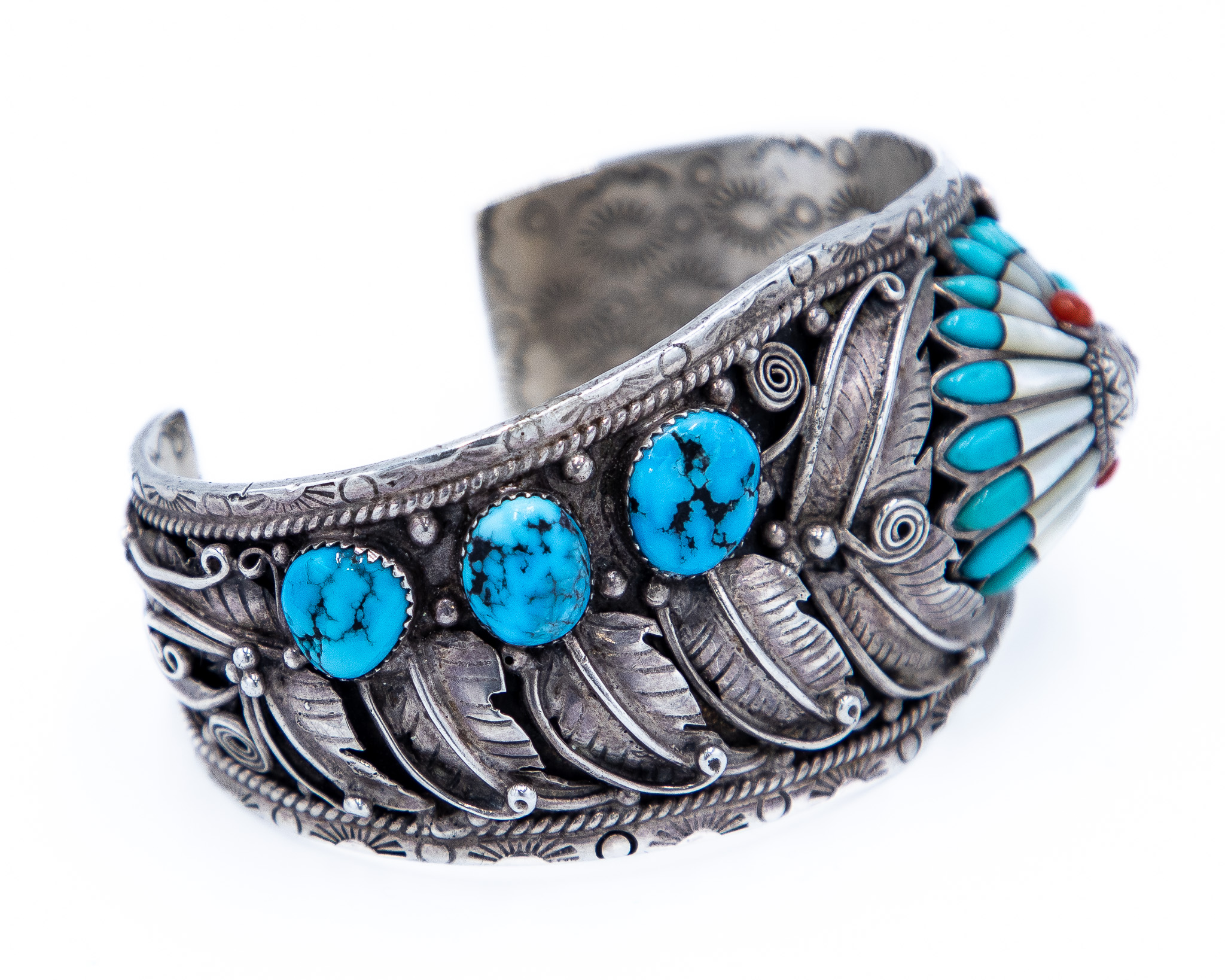 Signed HR Navajo Sterling Multi Stone Inlay Chief Cuff Bracelet