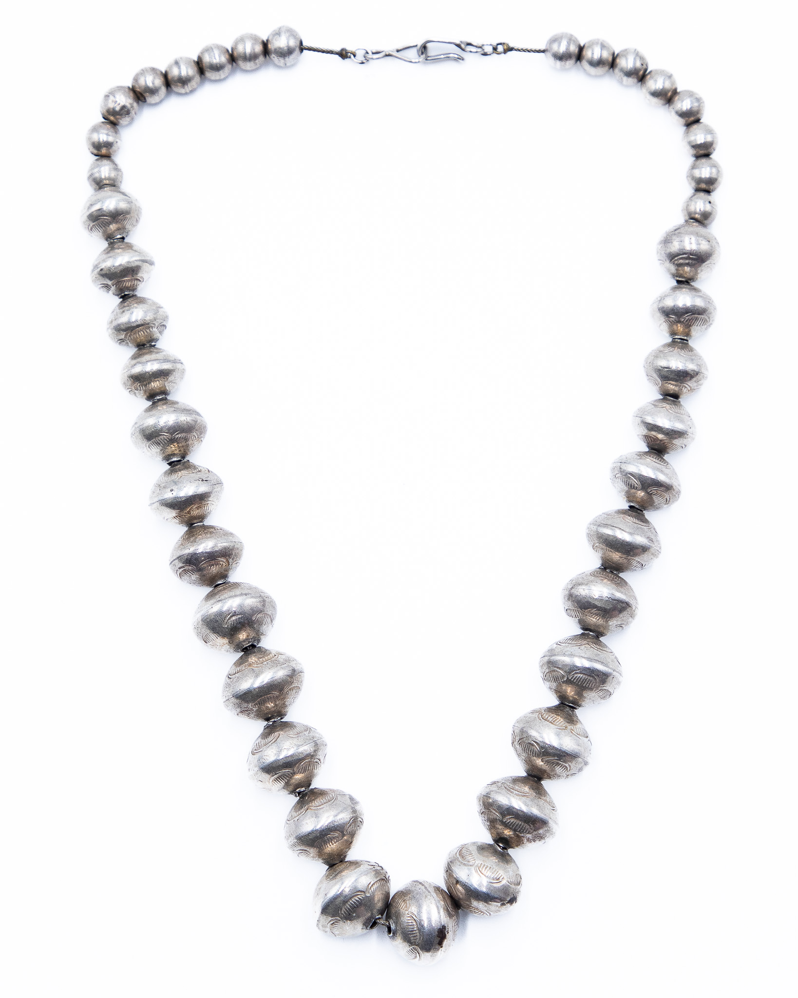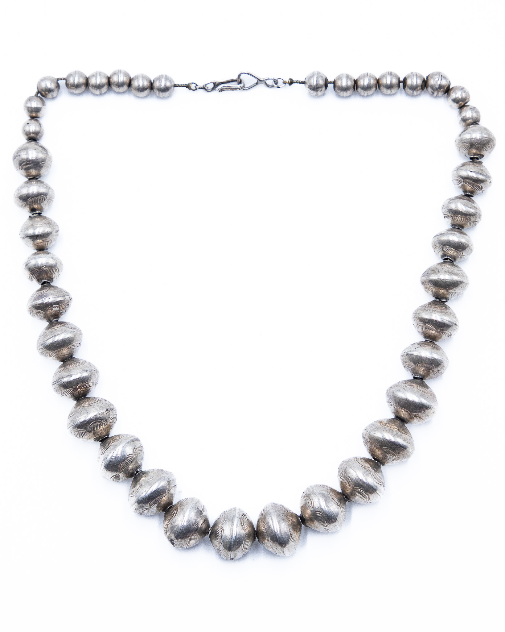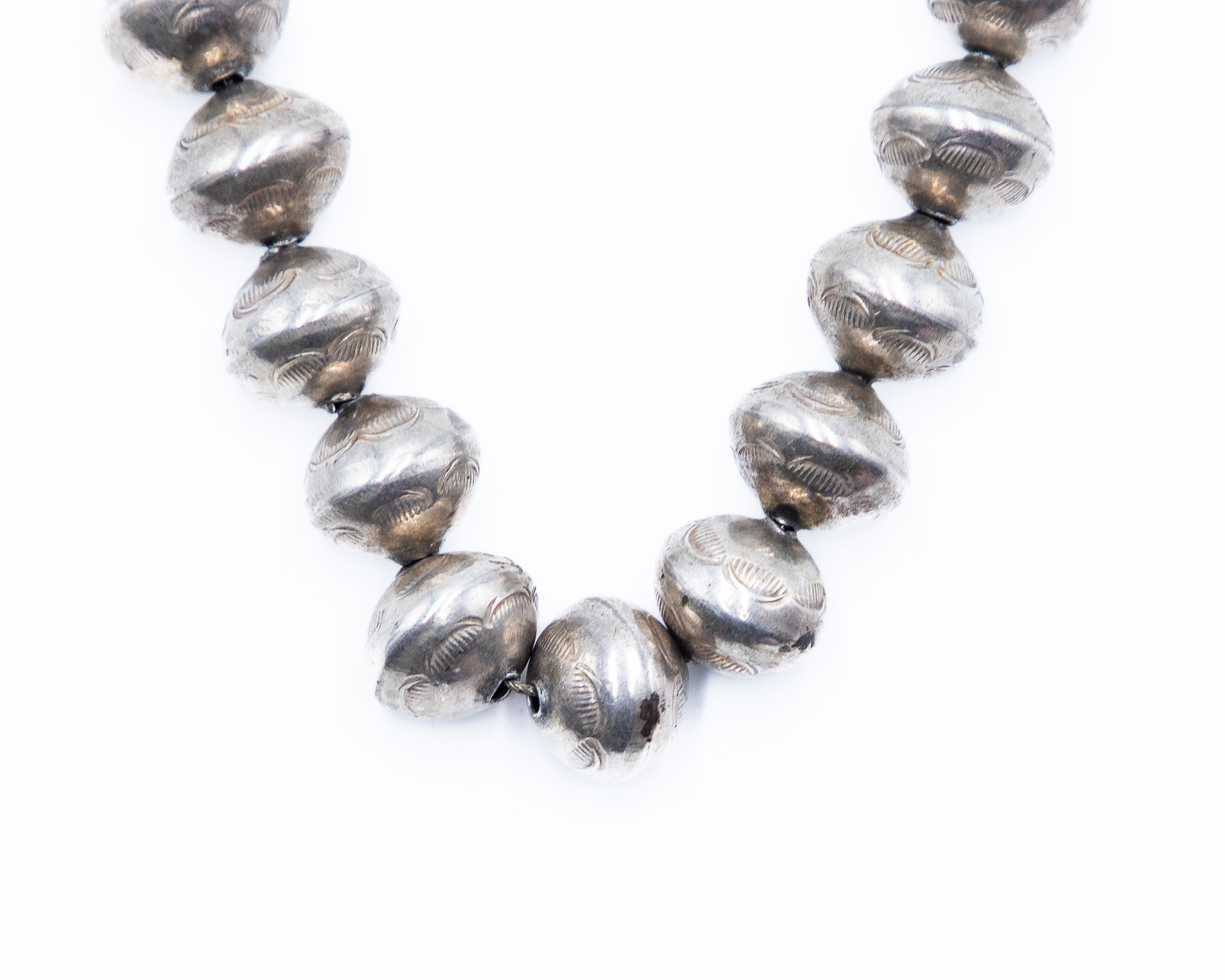 Vintage Graduated Navajo Stamped Pearl Necklace 46g