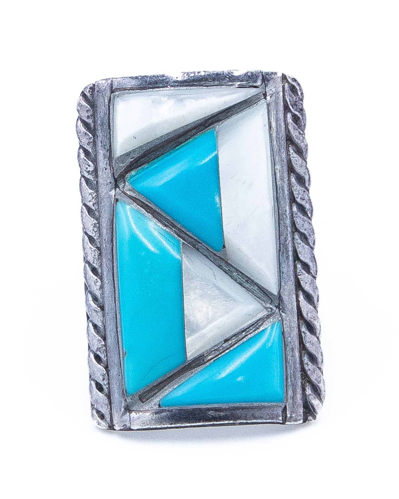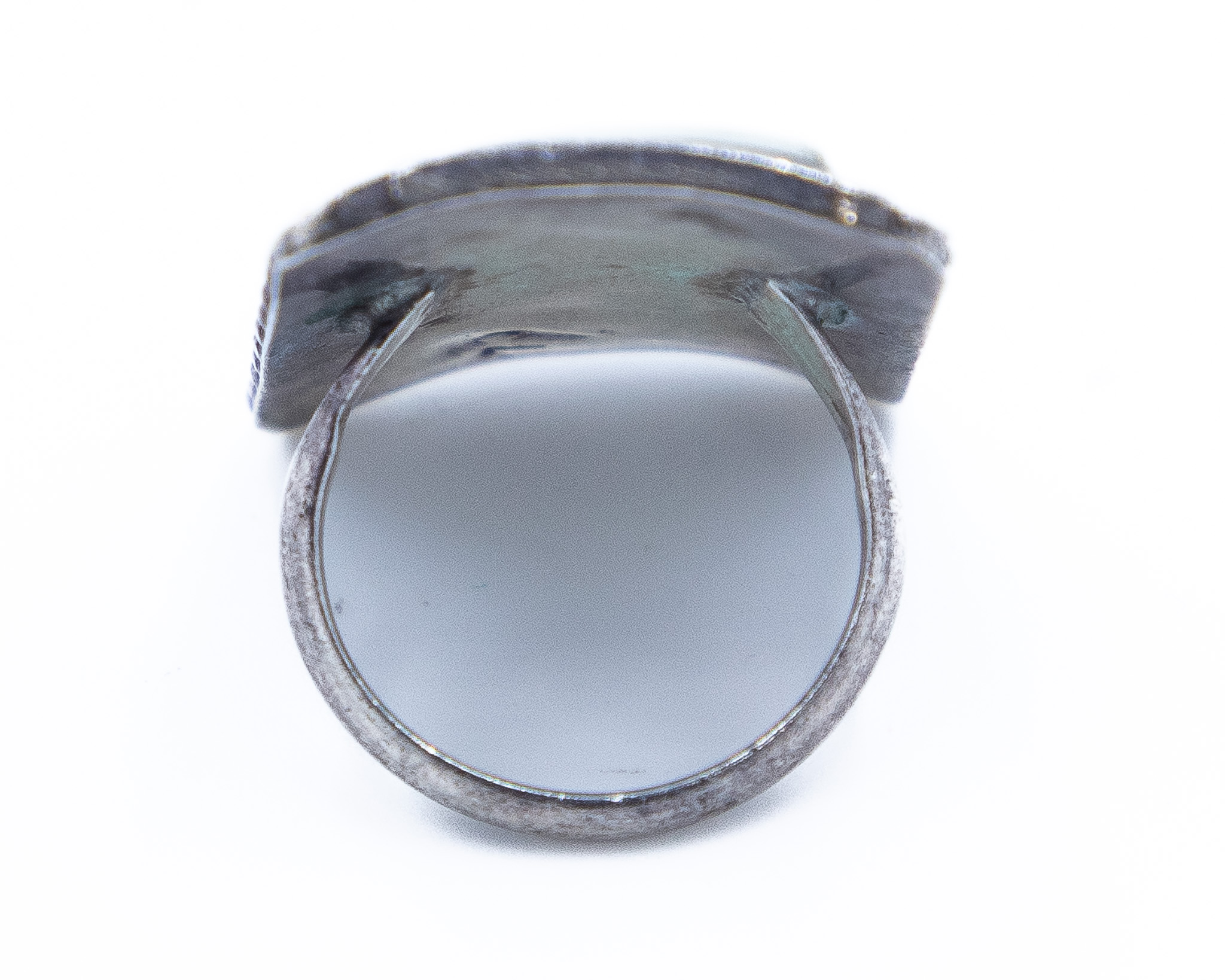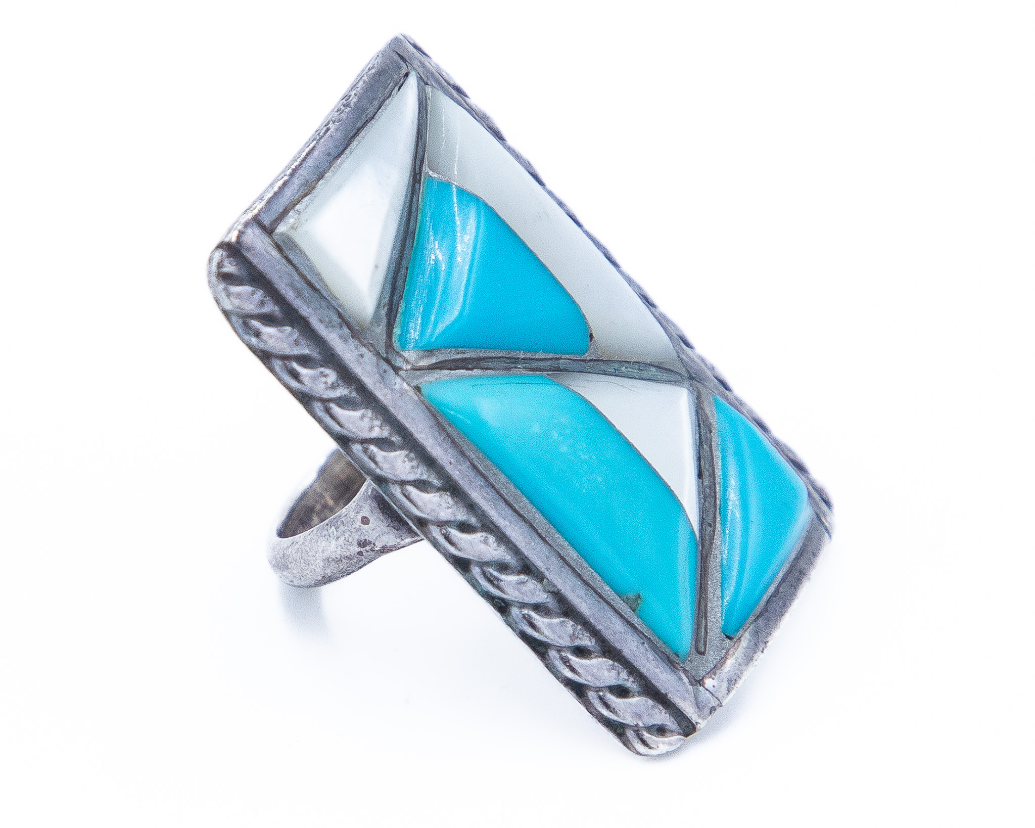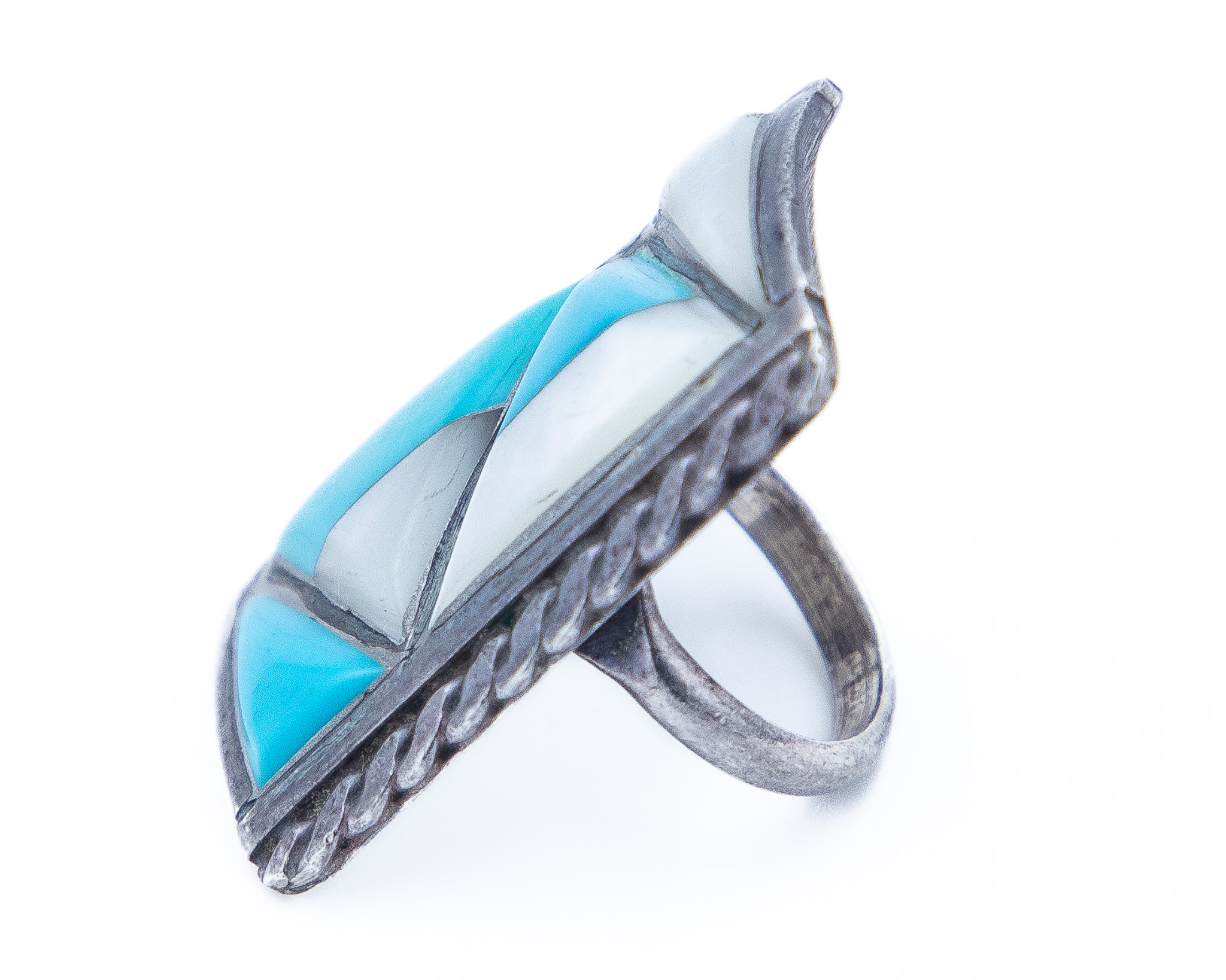 Signed CL Turquoise Sterling Mother of Pearl Ring Sz. 5.75, 9