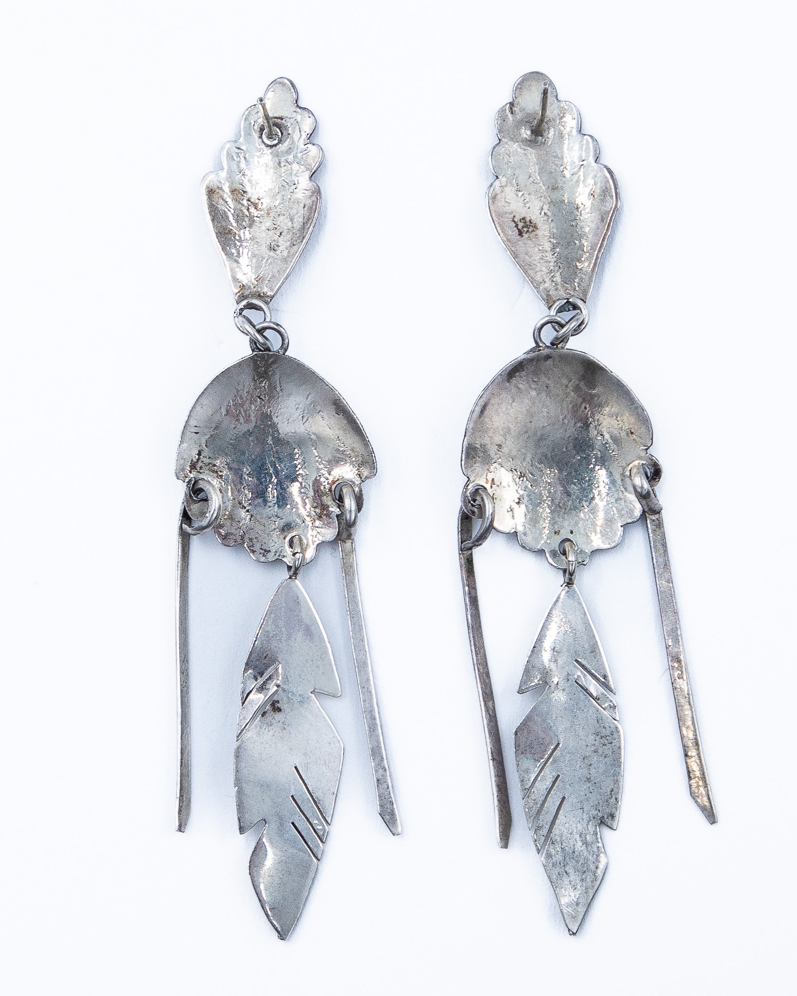 Vintage Turquoise Sterling Feather Navajo Chandelier Earrings 10g