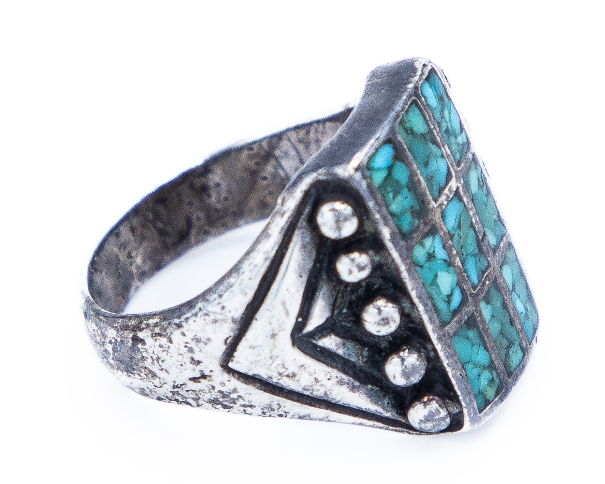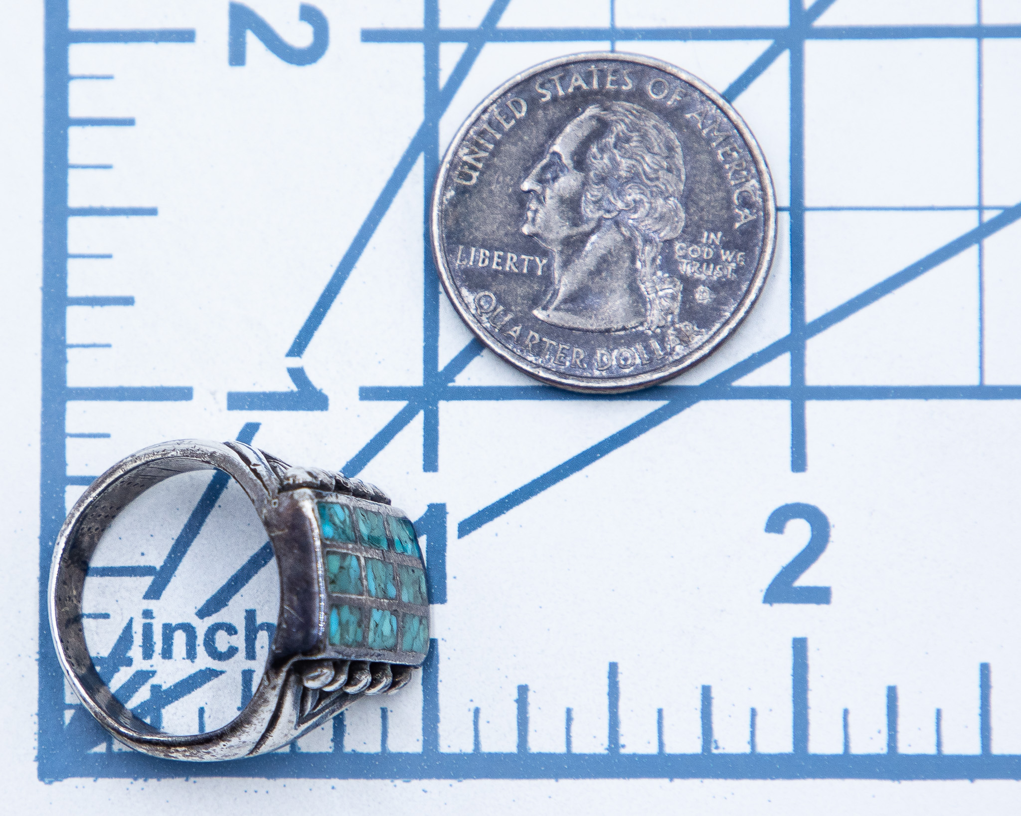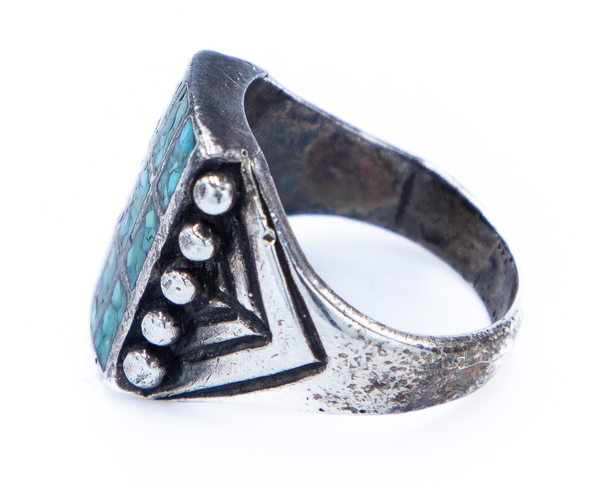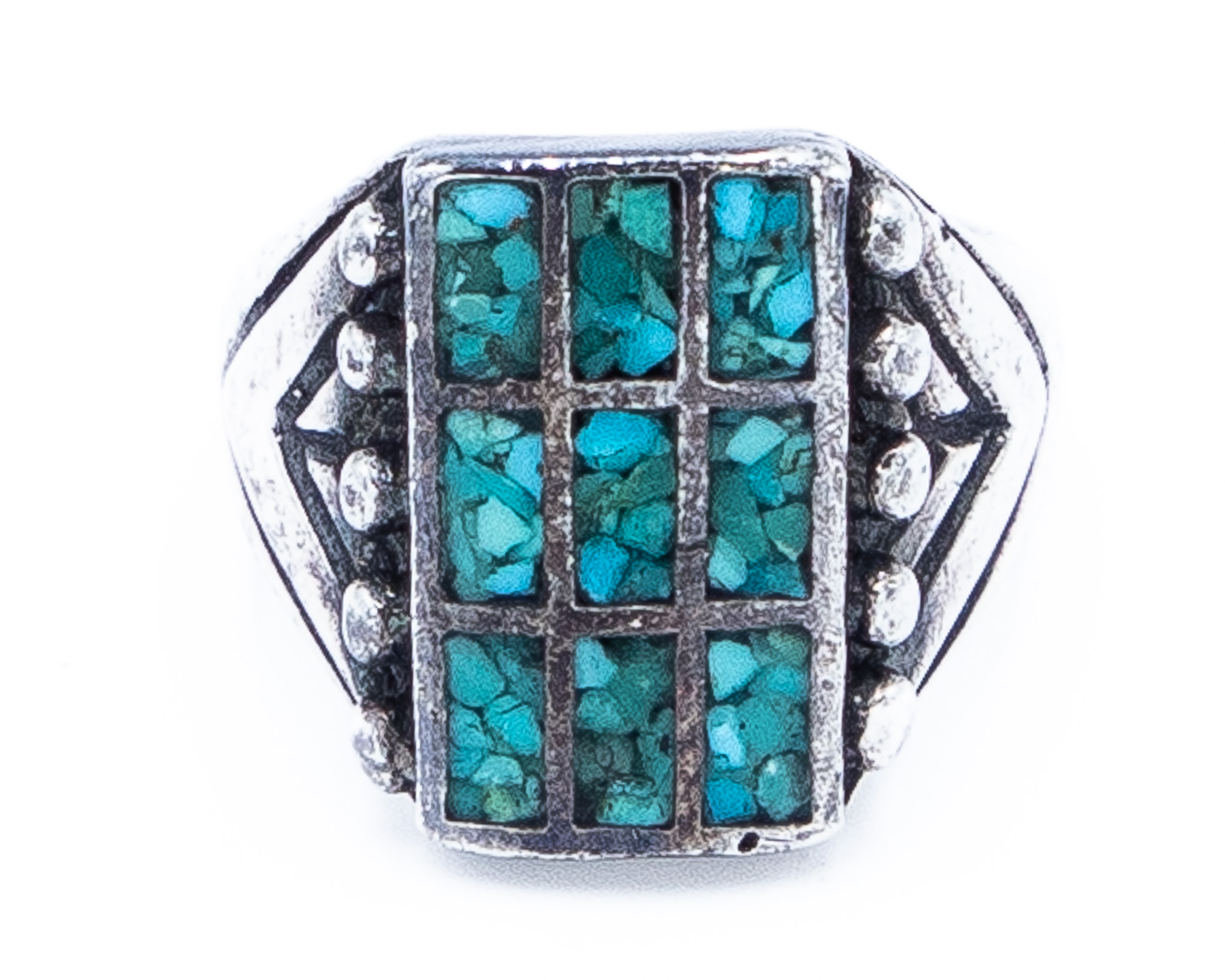 Vintage Navajo Crushed Turquoise Inlay Ring Sz. 8.5, 12g
