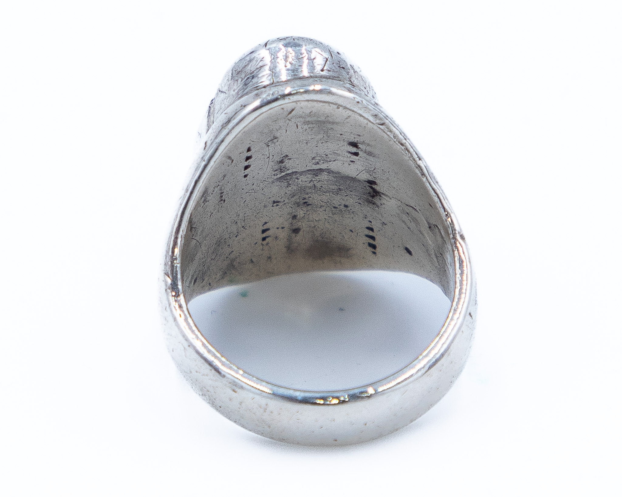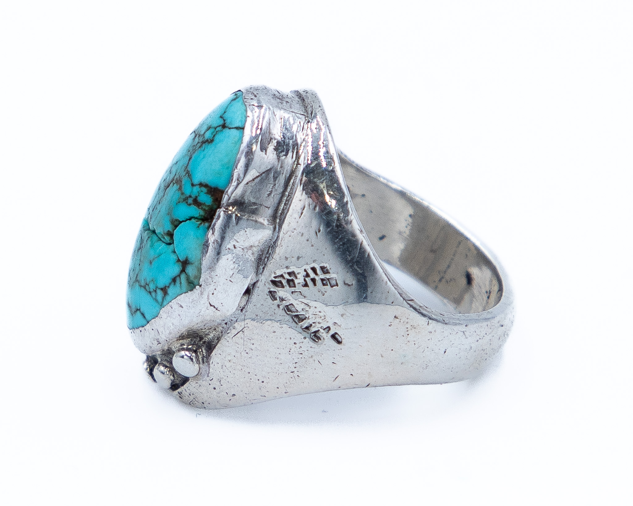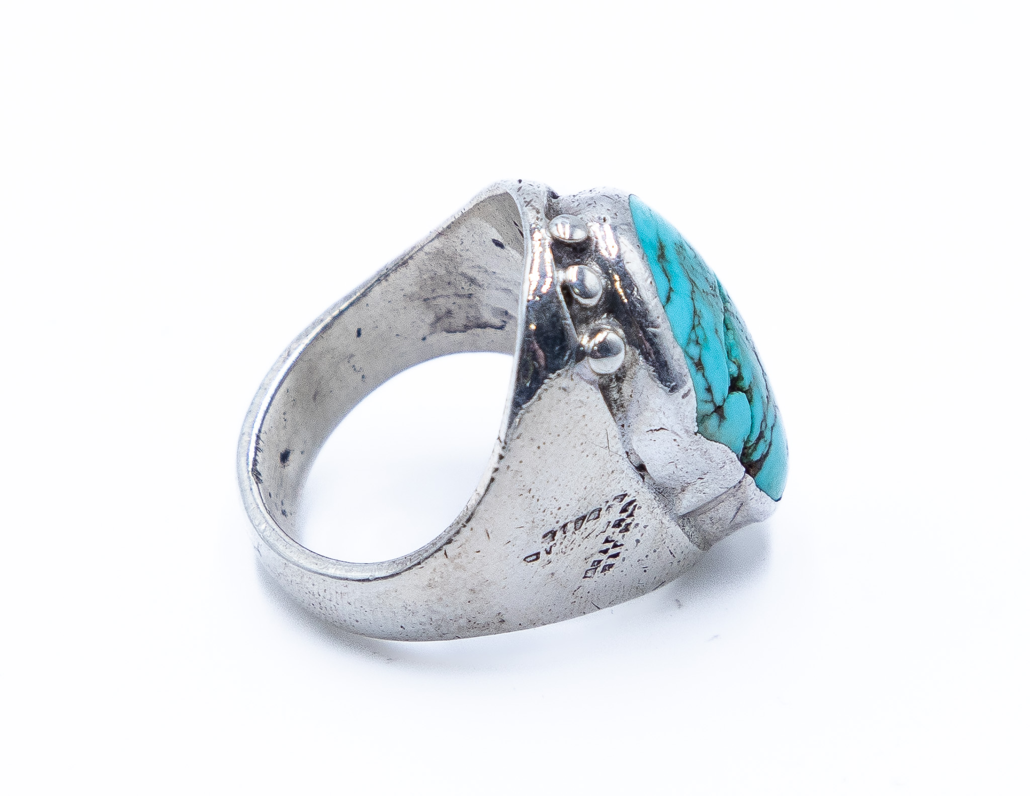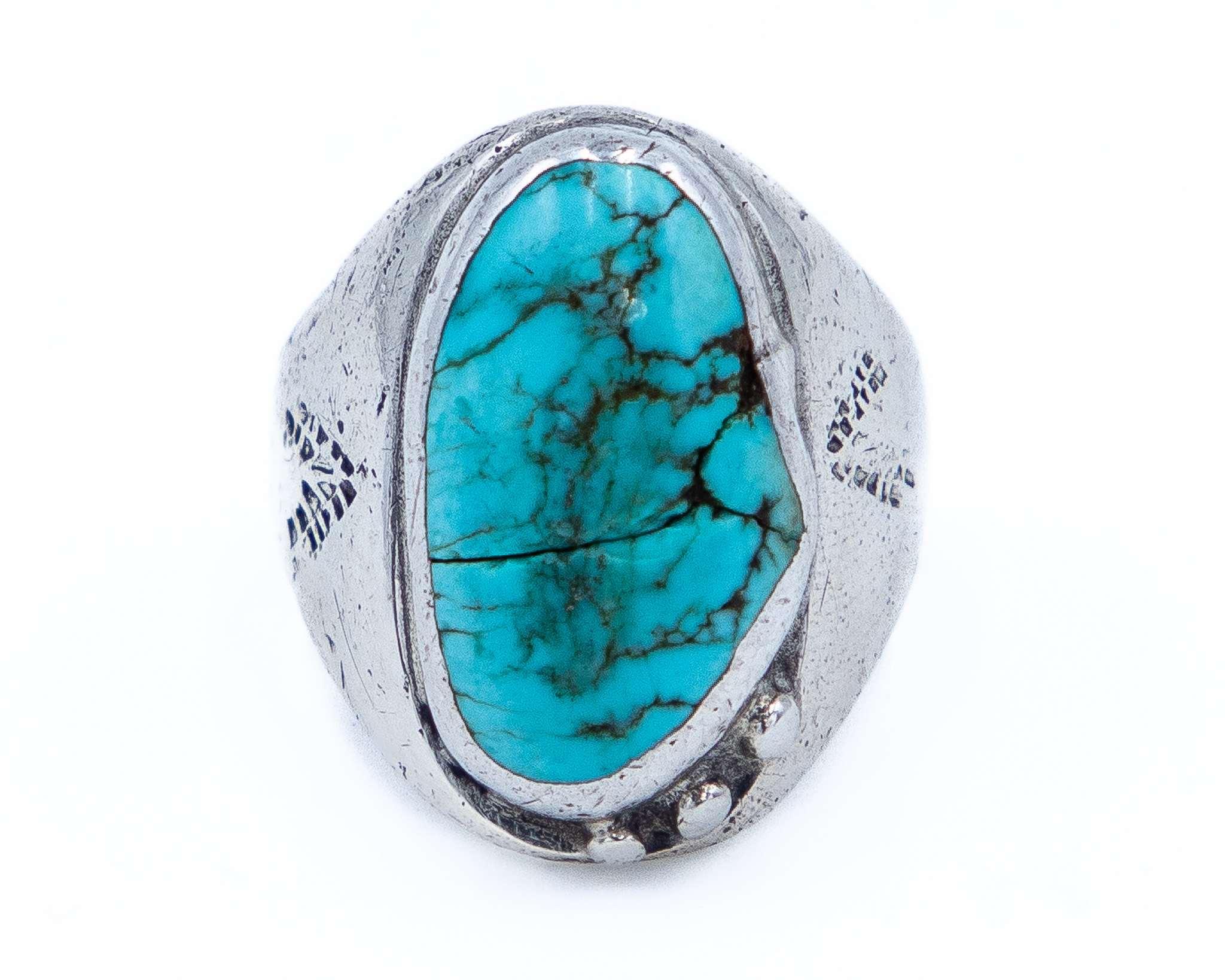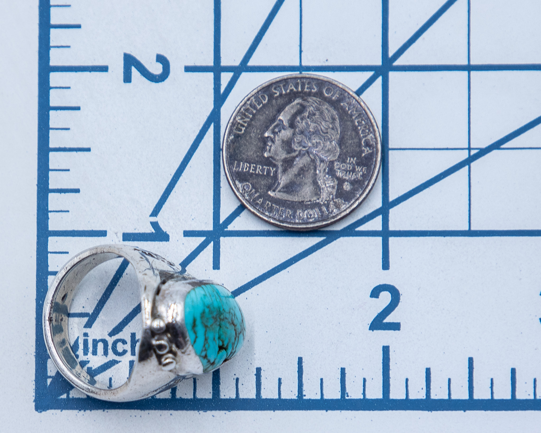 Vintage Navajo Turquoise Sterling Mens Ring Sz. 10, 21g-Crack on bottom, shown in photo-Cleaned, but old