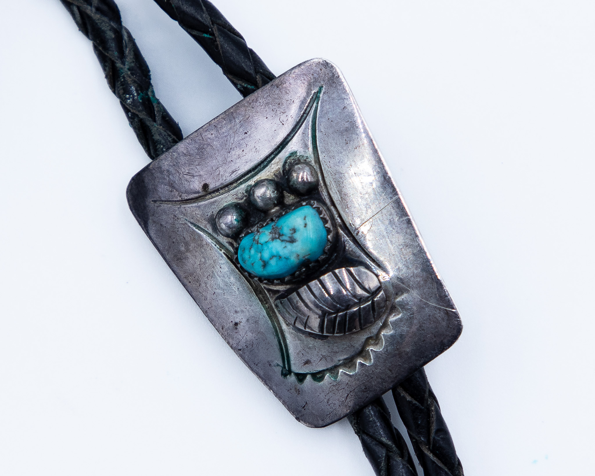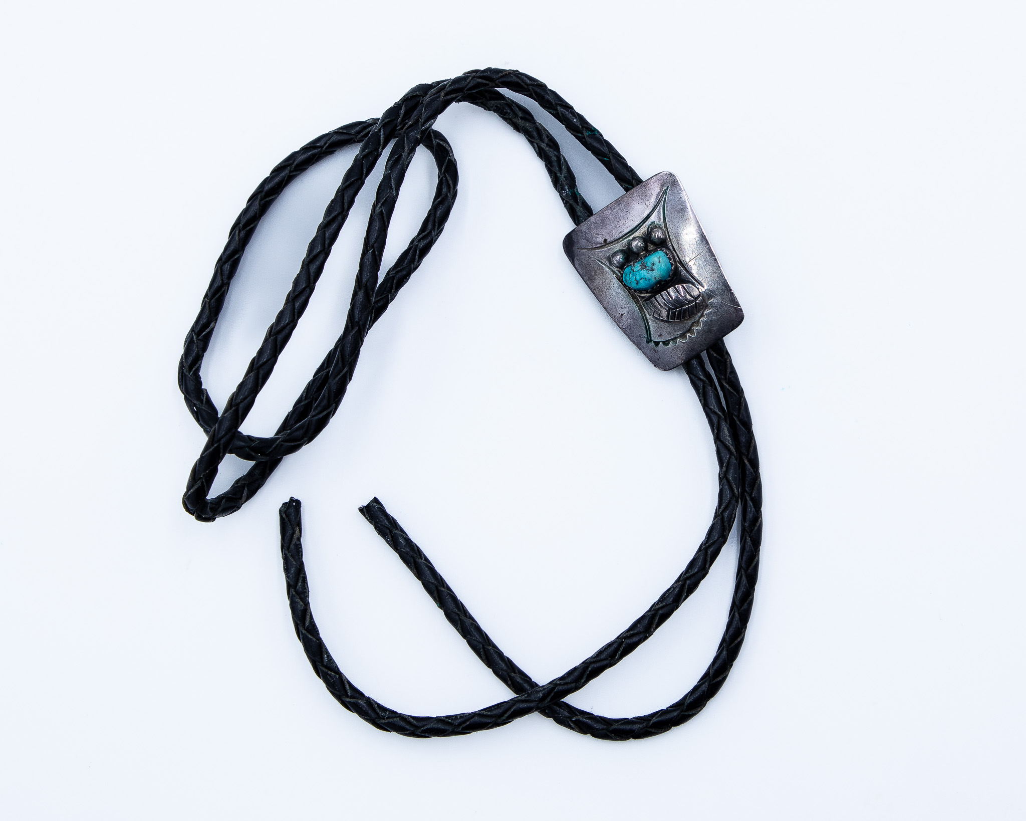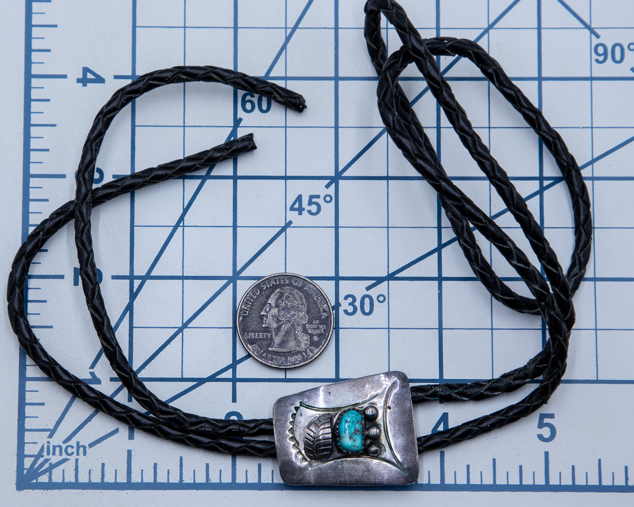 Vintage Navajo Sterling Turquoise Bolo Tie, is 20g with cord