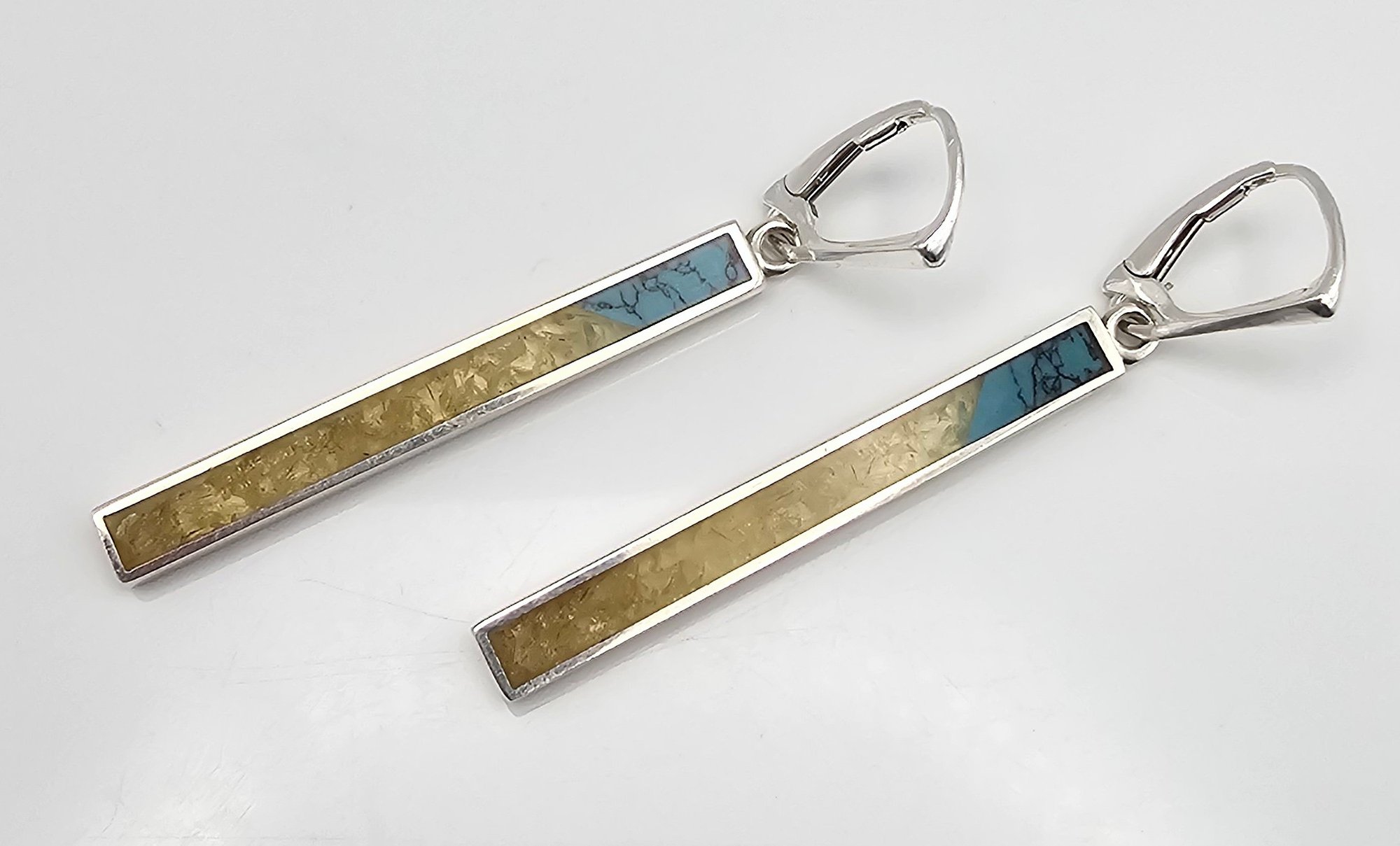 New Great High Quality Poland Amber Turquoise Amber Sterling Silver Drop Dangle bar earrings 8.6 g