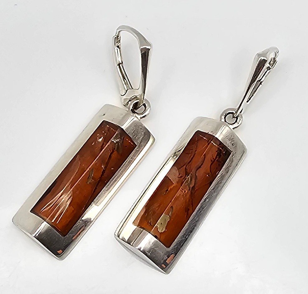New Great High Quality Poland Amber Sterling Silver Pyramid Shape Dangle Earrings 9.6 G