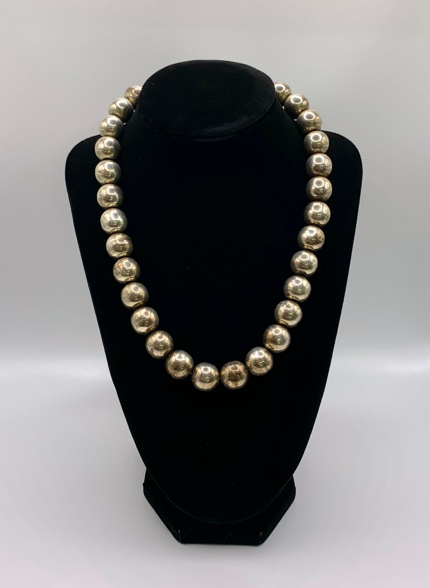Sterling Silver Beaded Necklace 107.4g- Mexico 925 TH-29 stamp