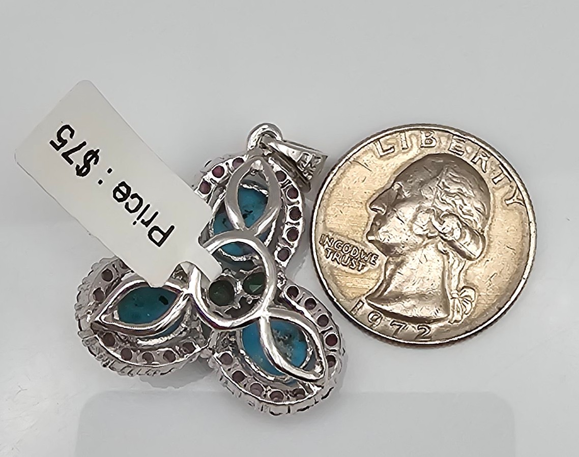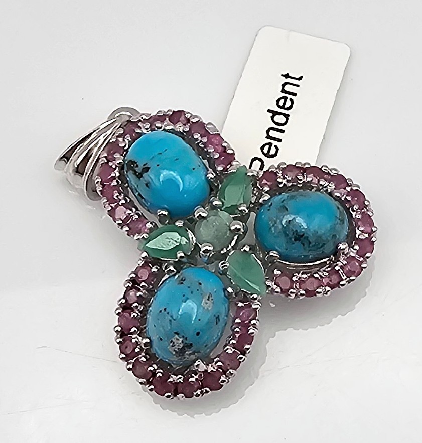 NWT Genuine Turquoise Emerald Ruby Sterling Silver Pendant 8.3 g